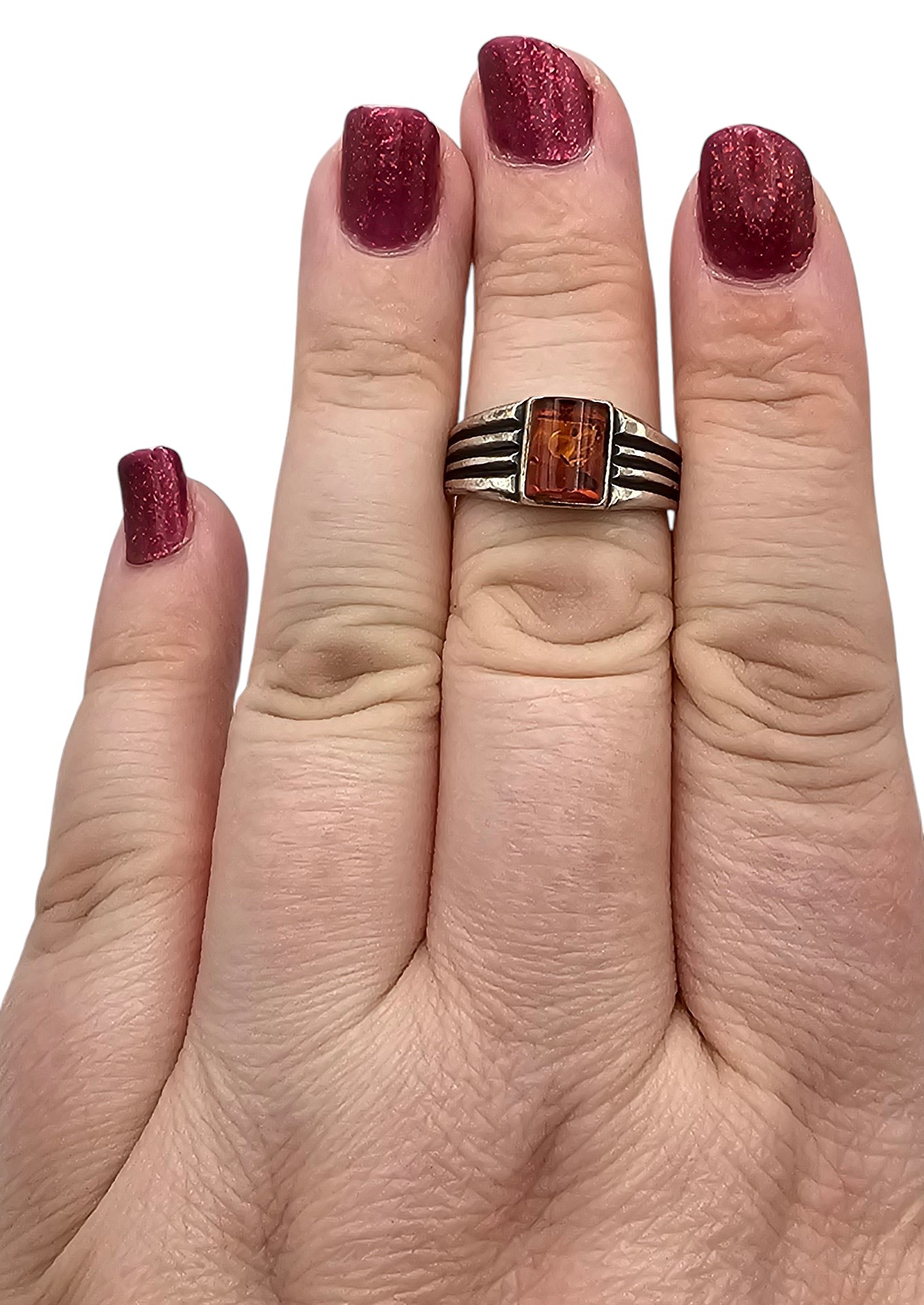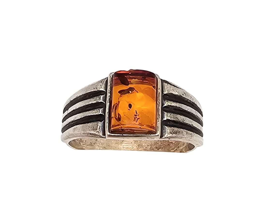 Amber Sterling Silver Ring Size 7.5 3.8 G