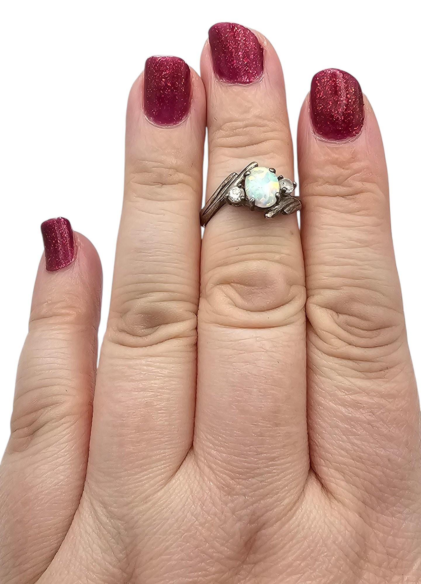 NV opal Sterling Silver Cocktail Ring Size 5.5 2.1 G as is bent band