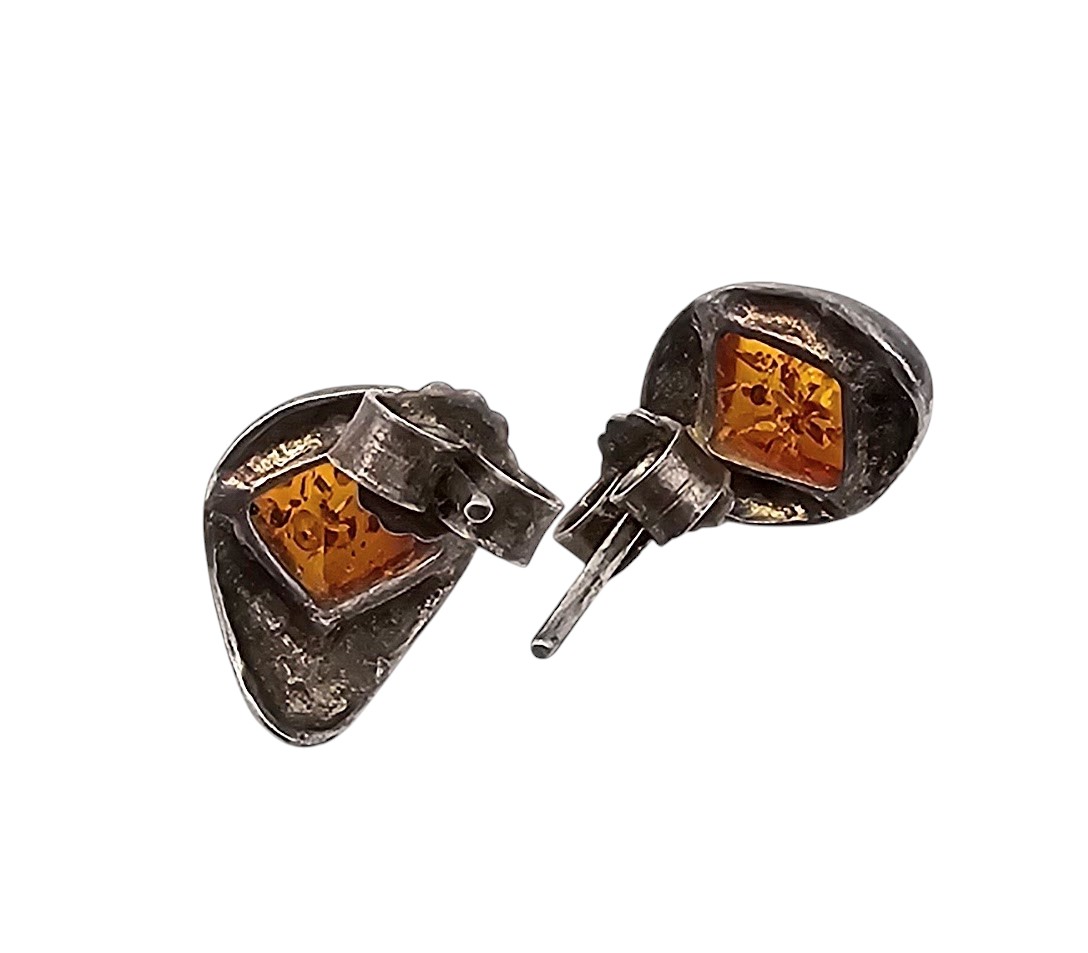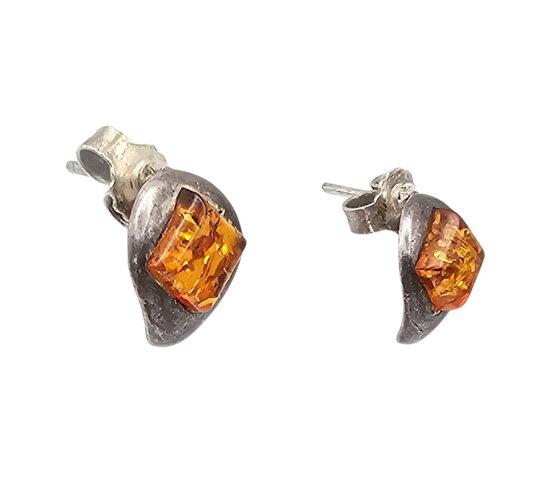 Amber Sterling Silver Earrings 2.3 G