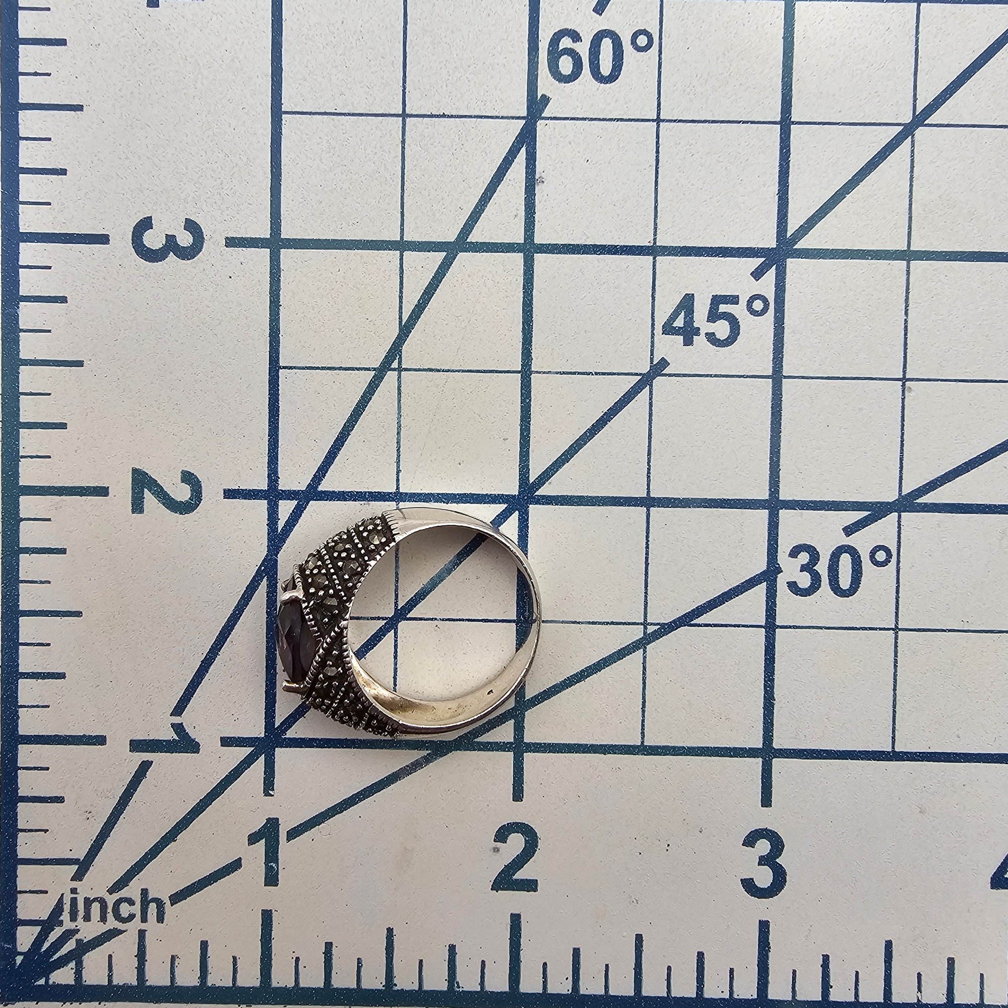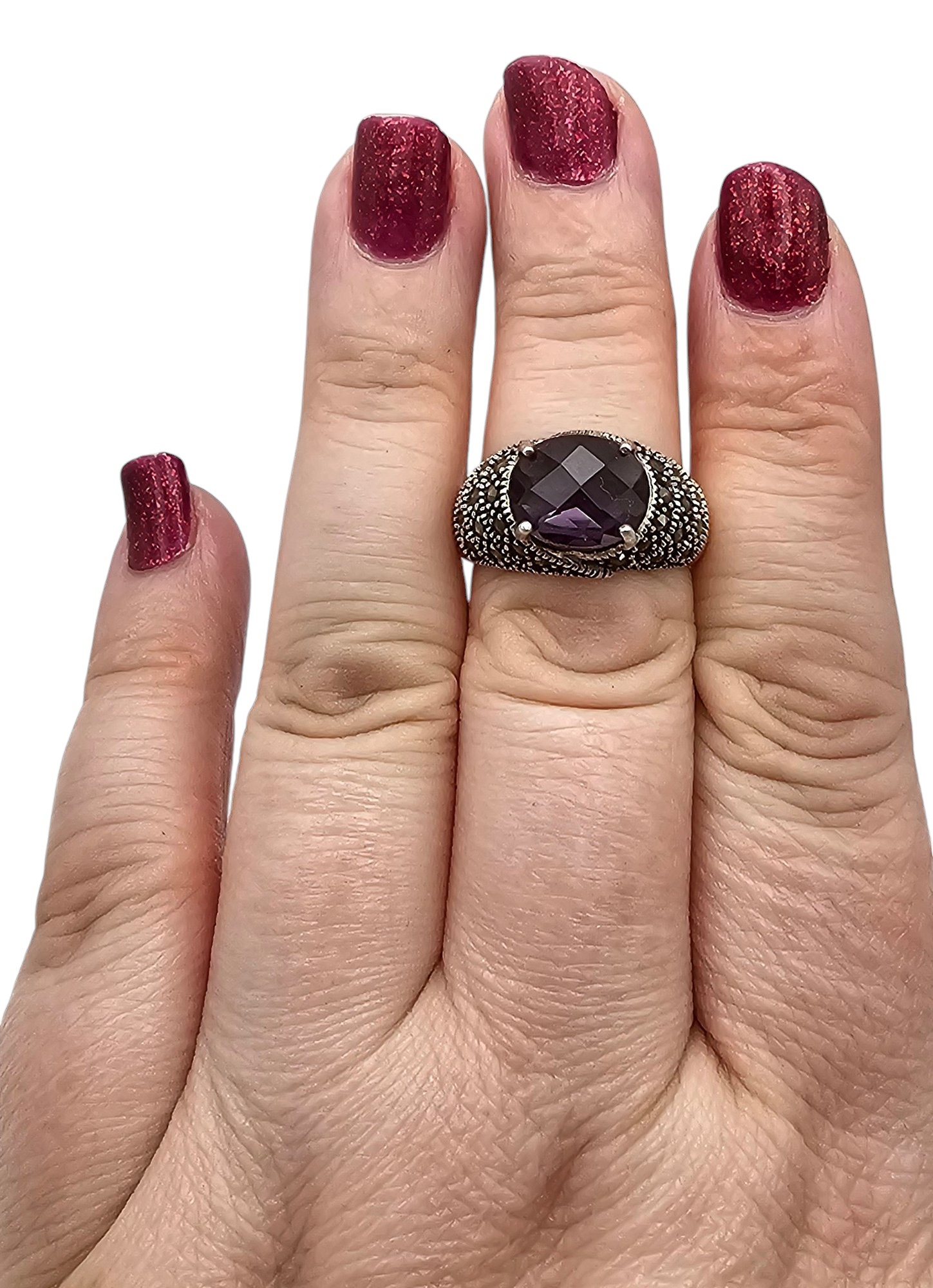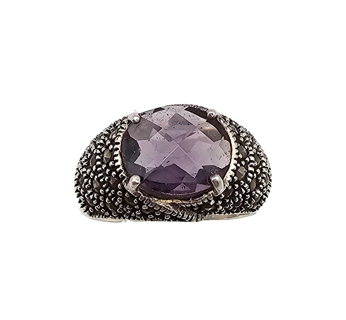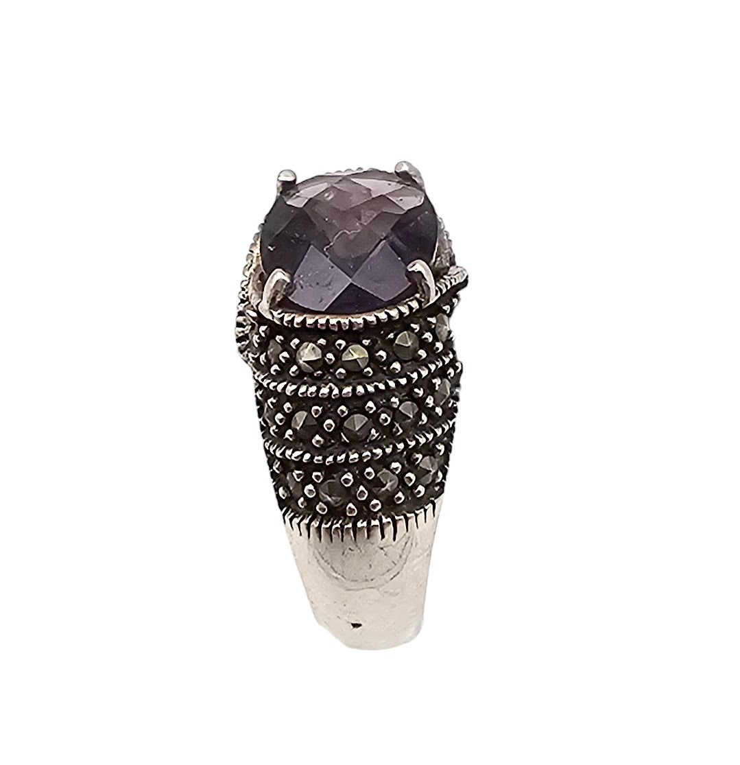 Amethyst Marcasite Sterling Silver Cocktail Ring Size 7.75 6 G