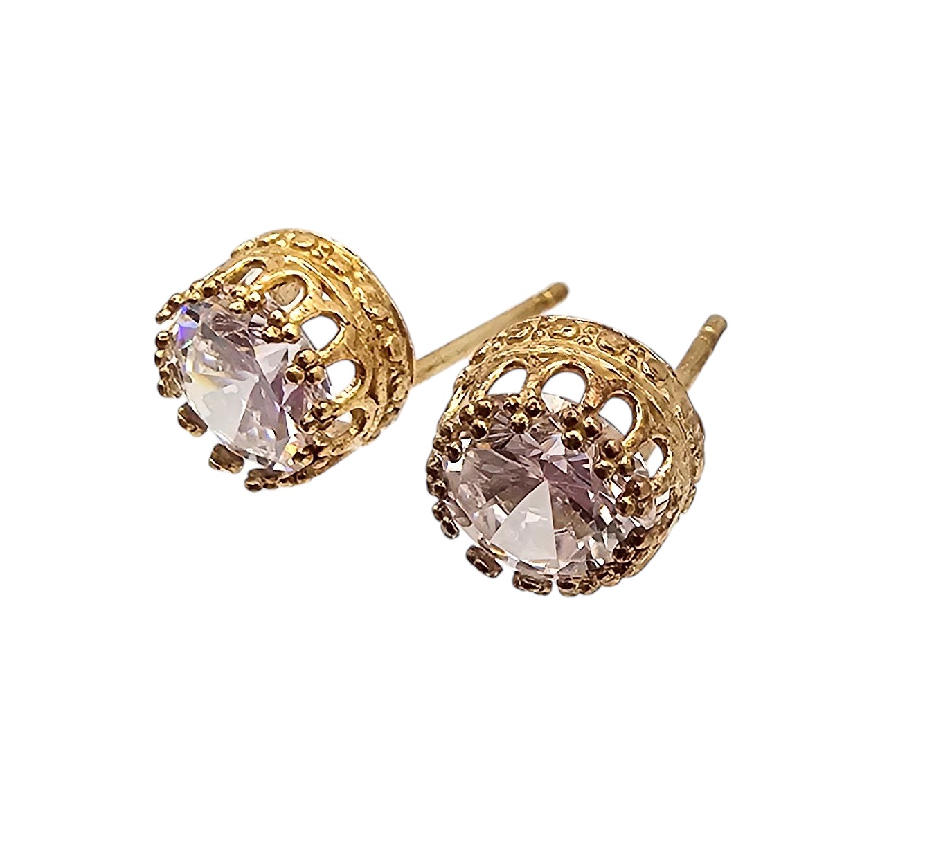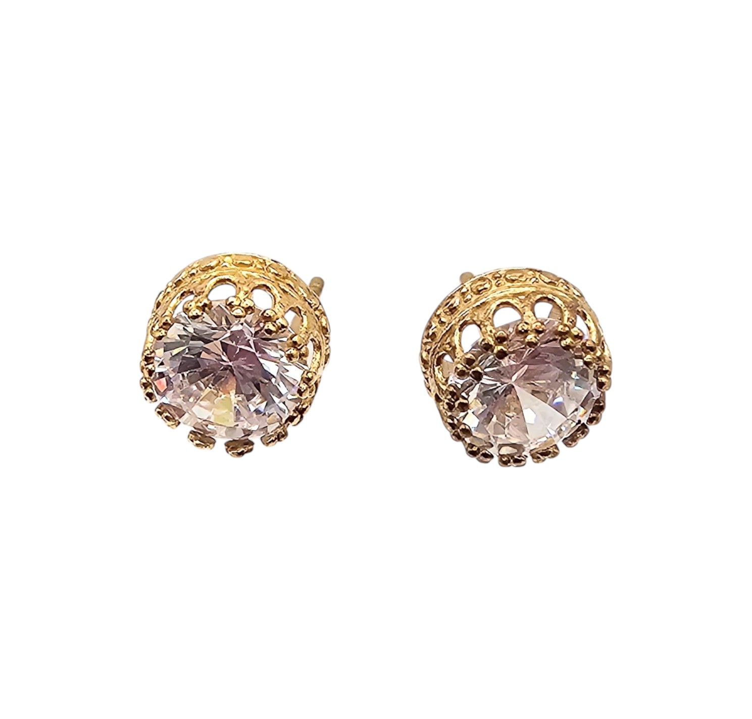 Clear Stone 10K Gold Earrings 1.3 G