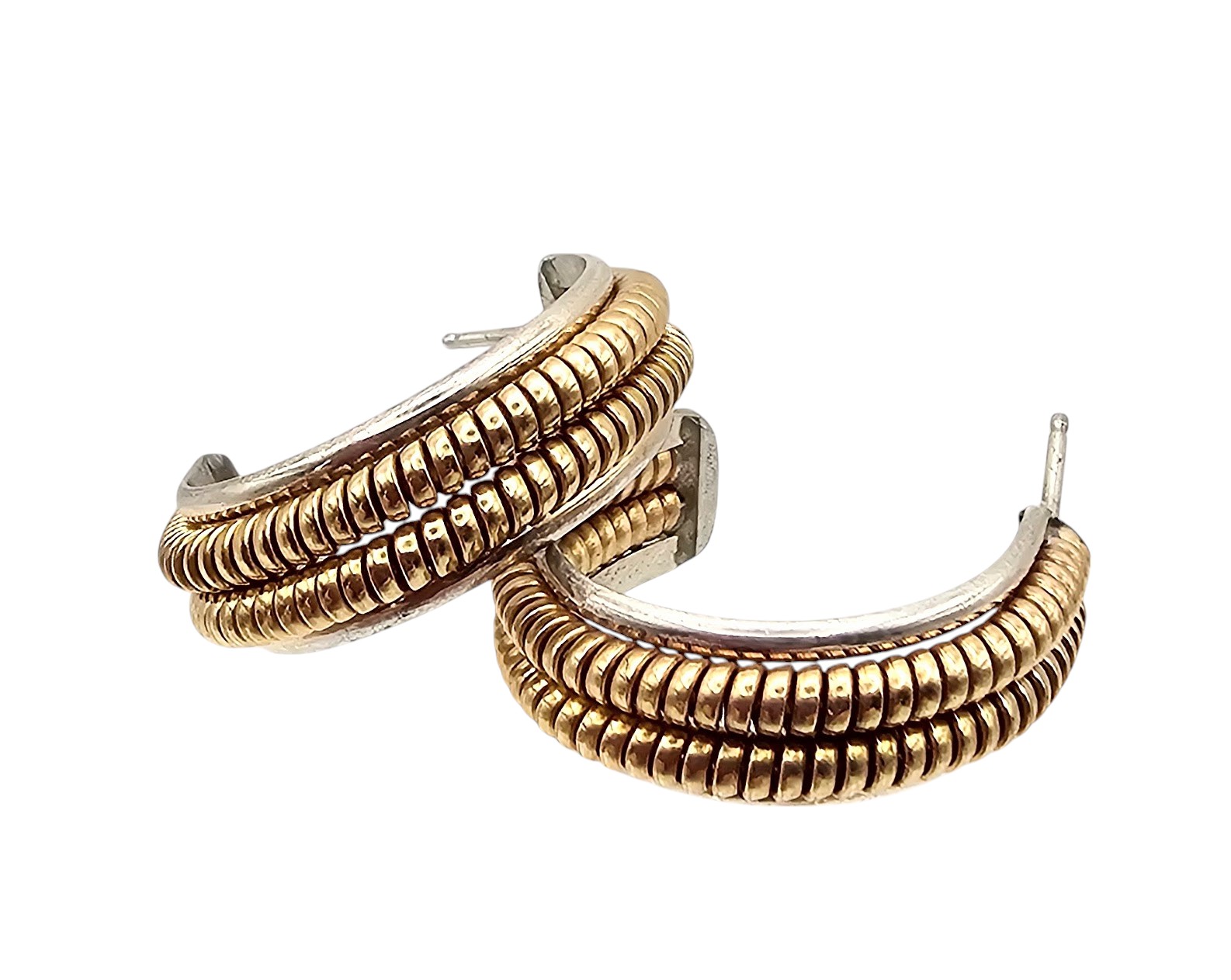 Sterling Silver Two-Tone coil Hoop earrings 8 G