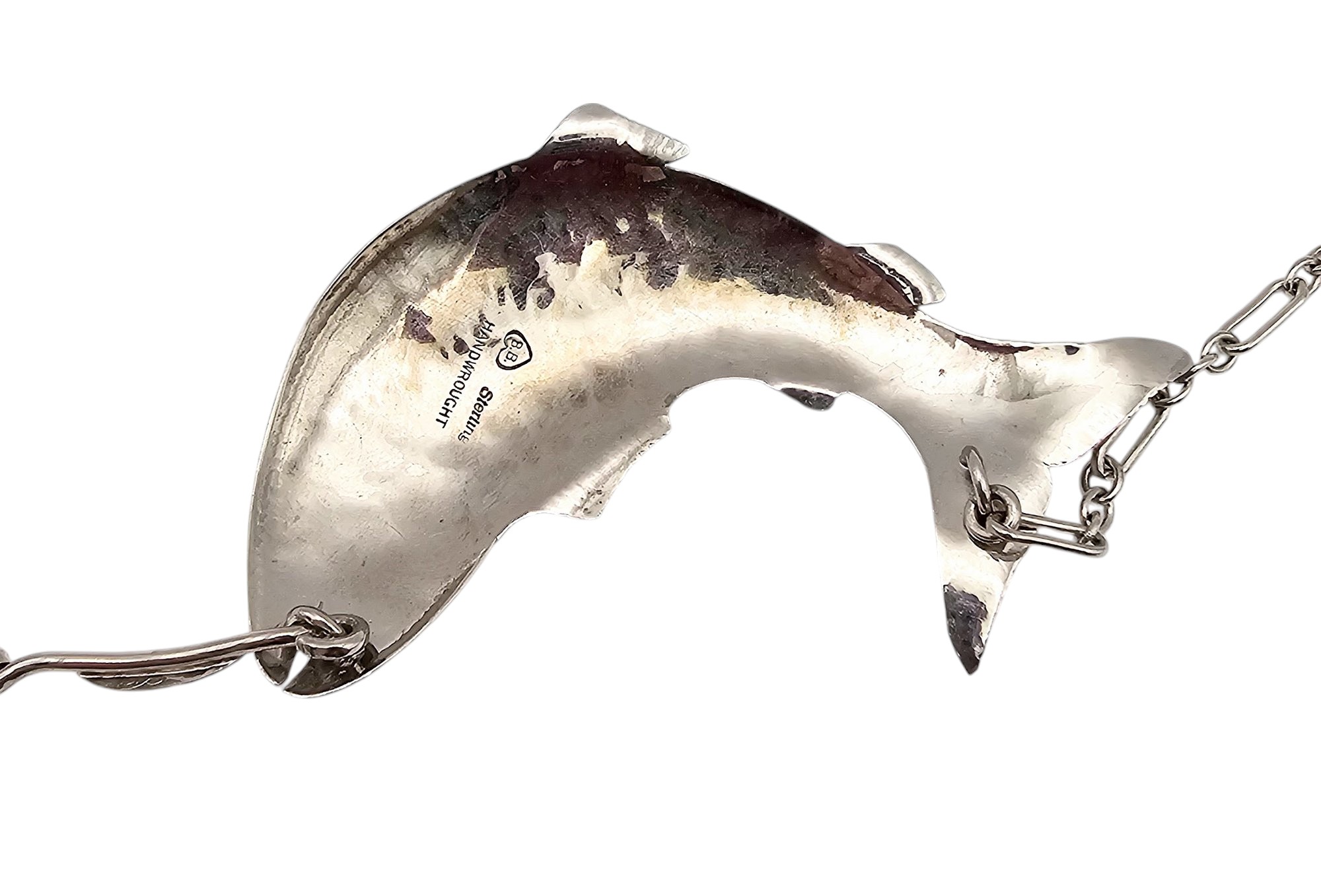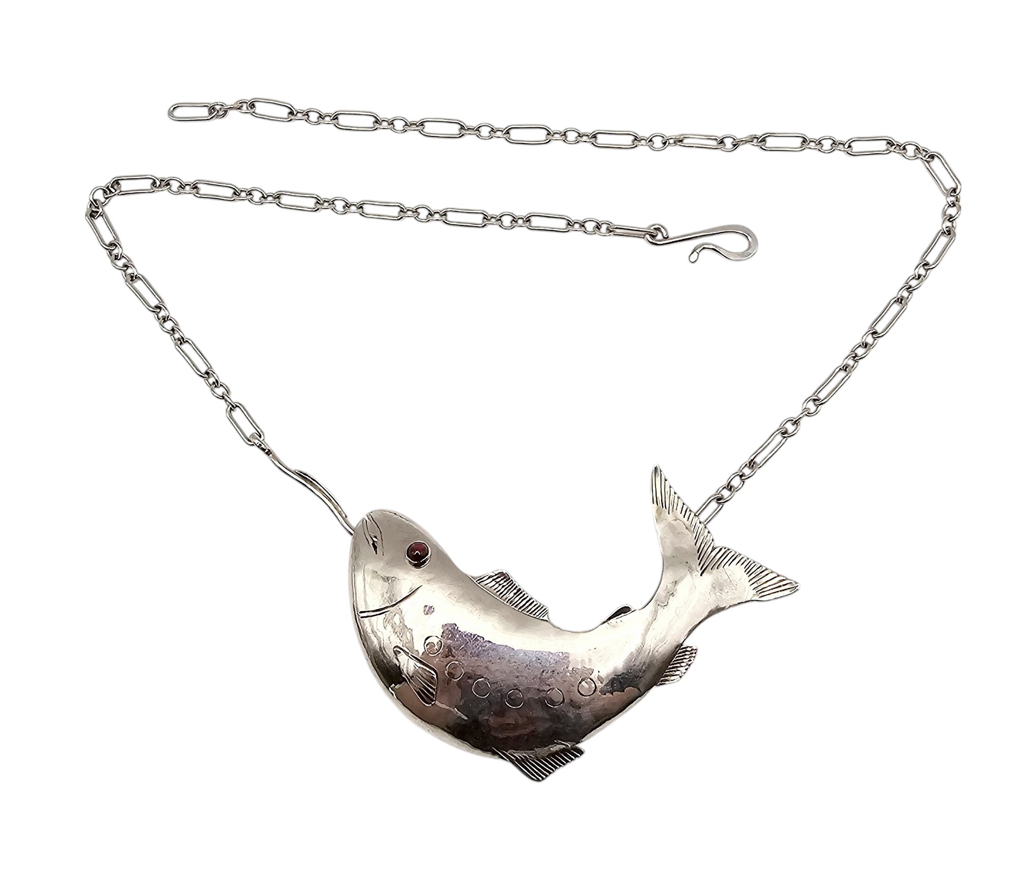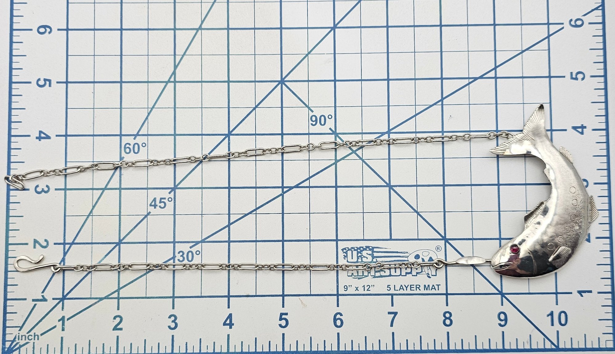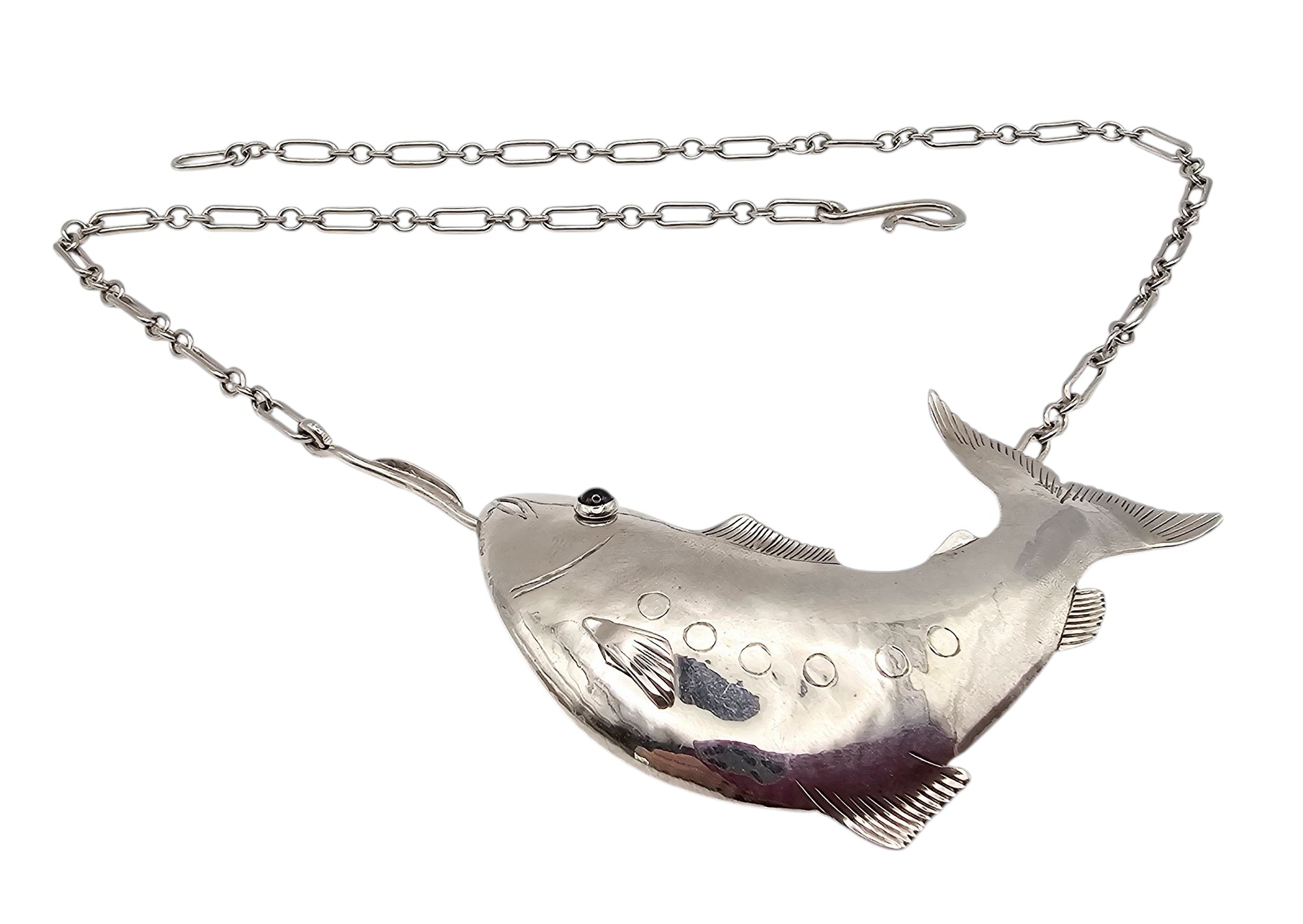 Signed BB Glass Sterling Silver Hooked Fish Necklace 23 G