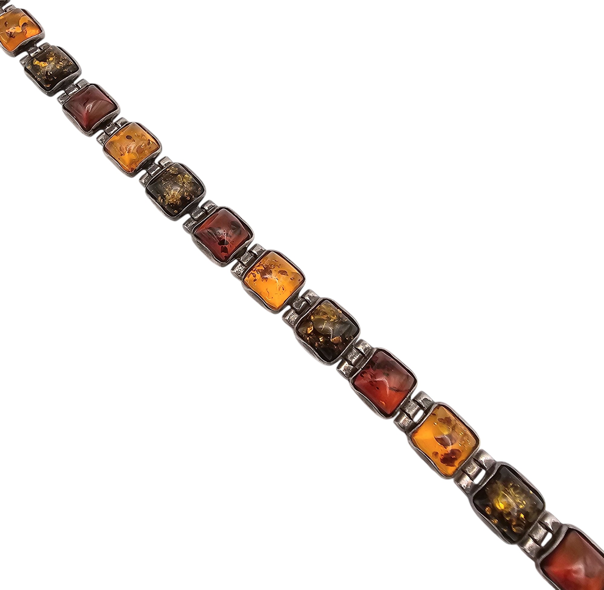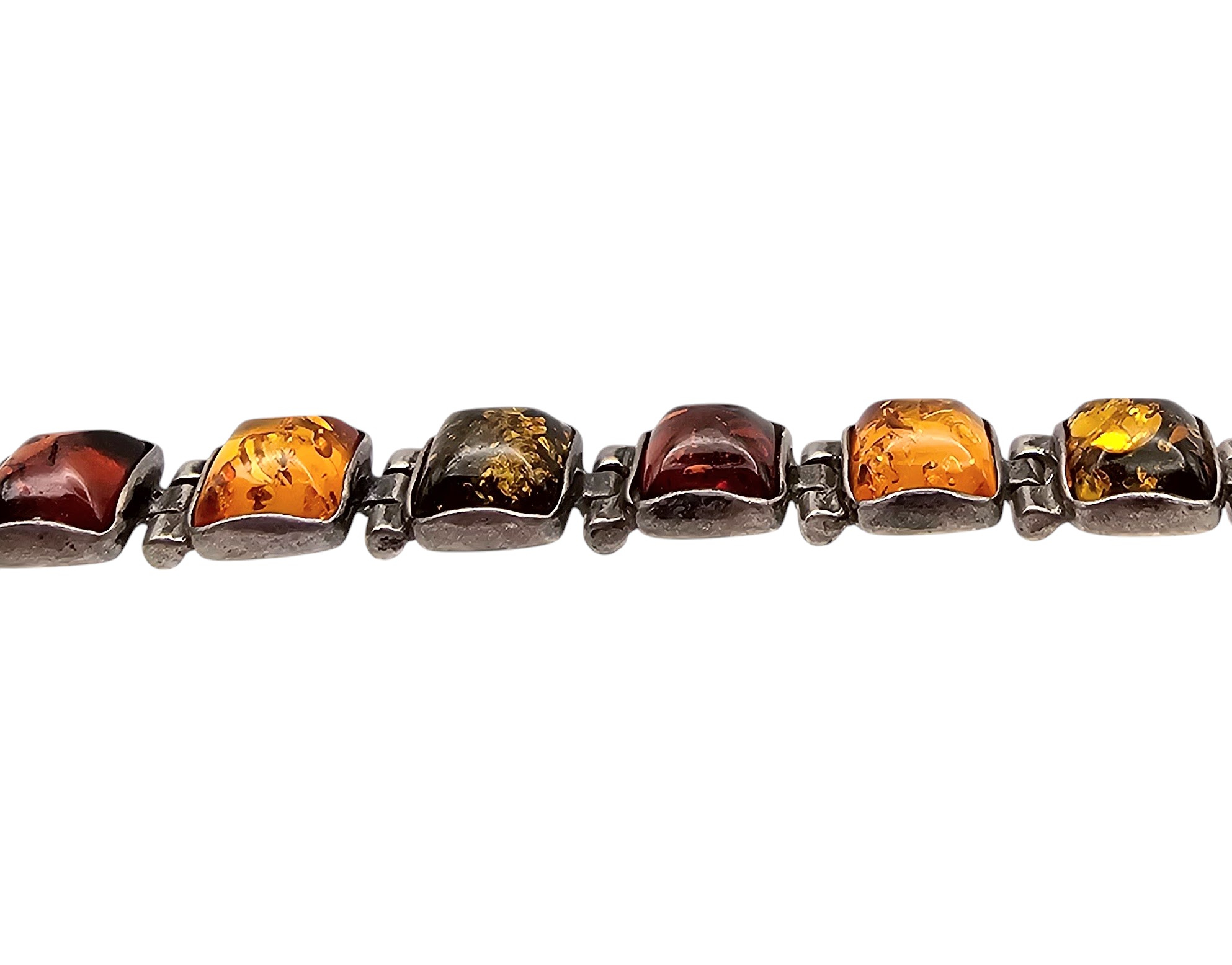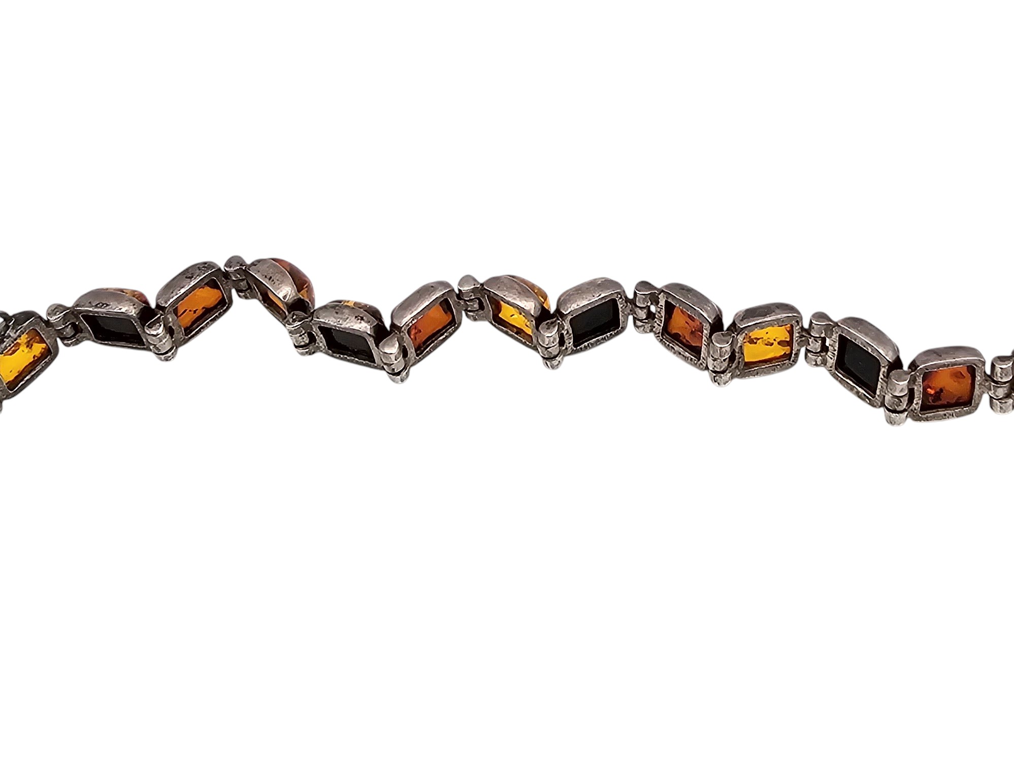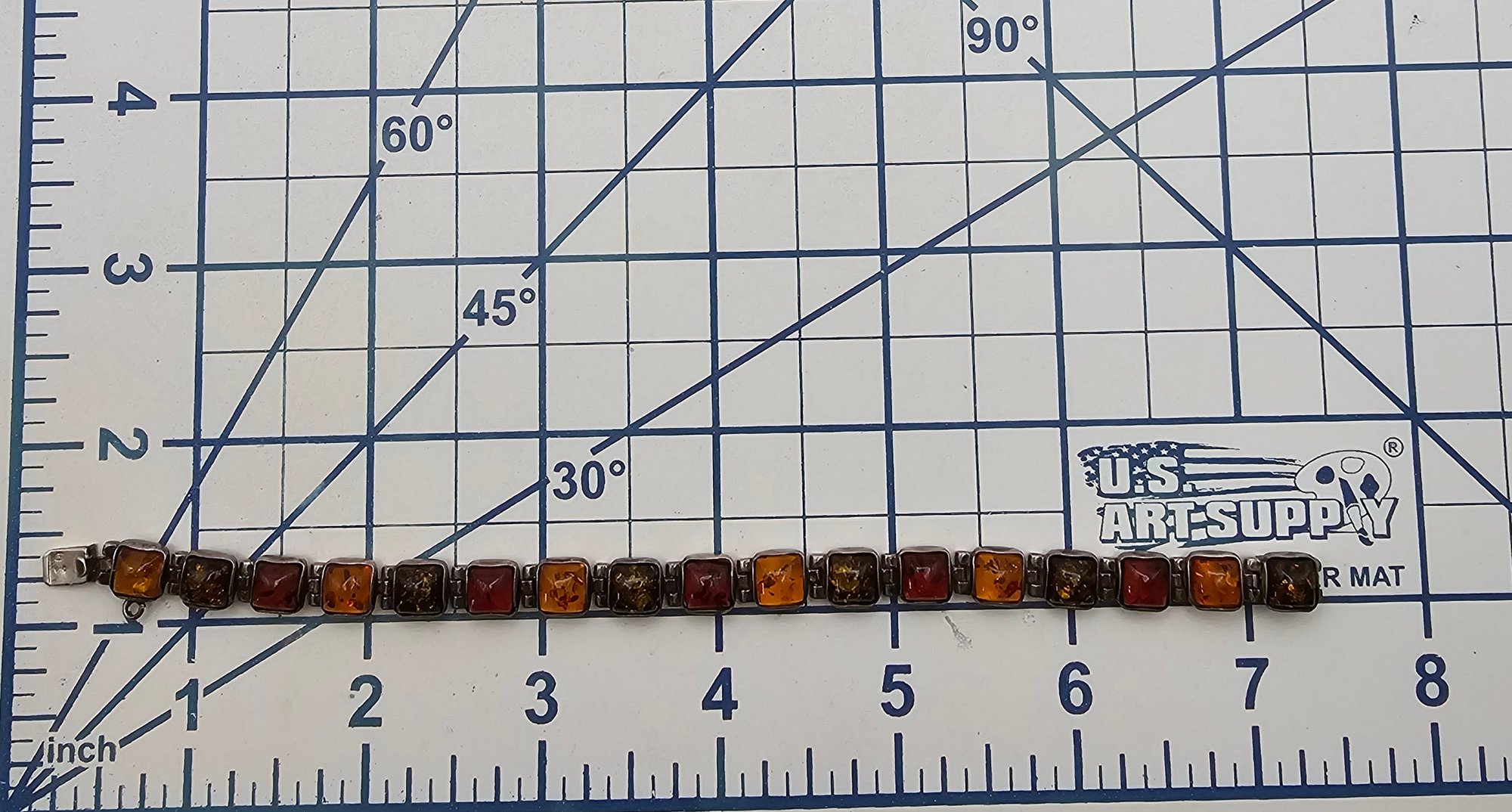 V-8 Amber Sterling Silver Bracelet 12.9 G