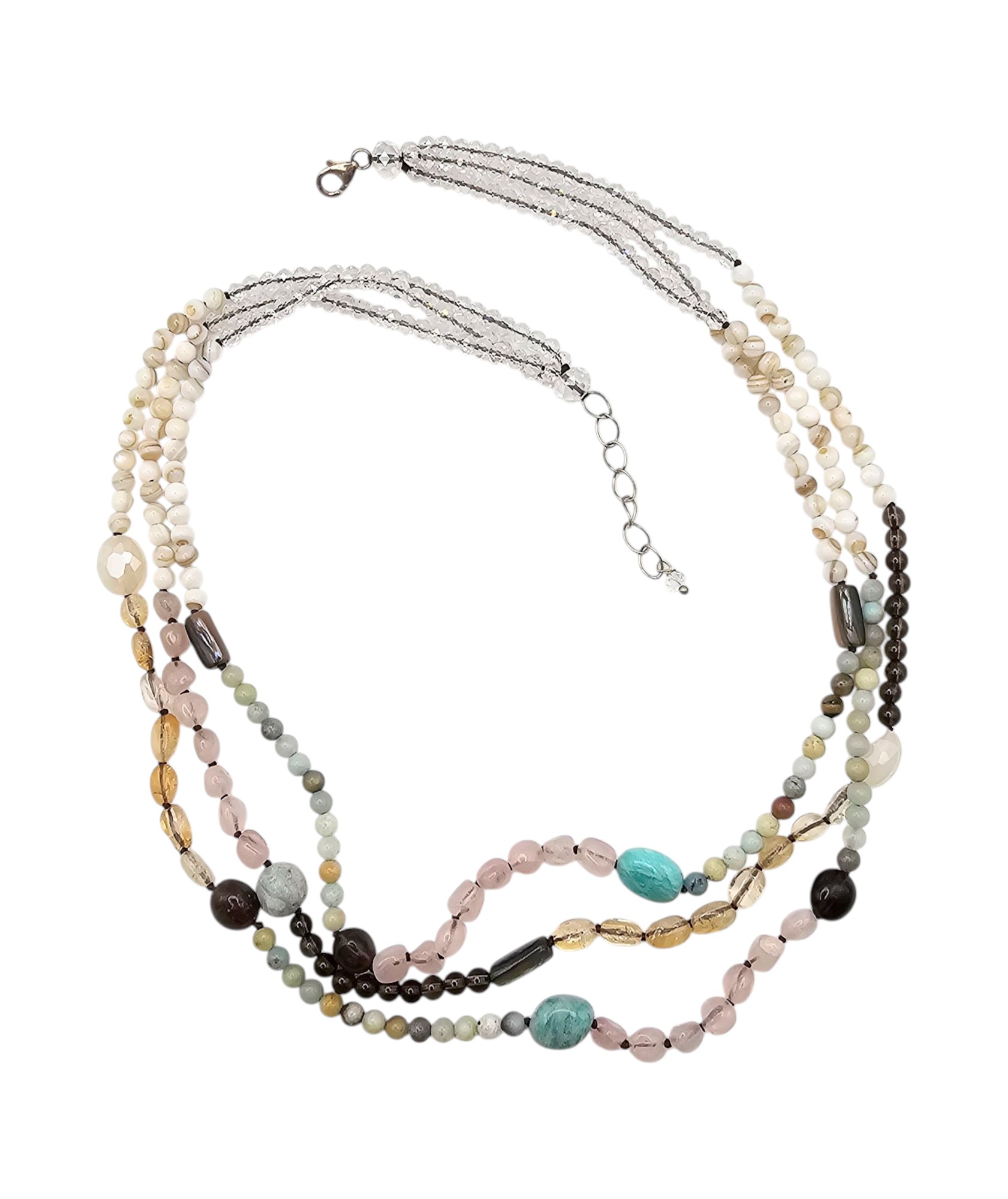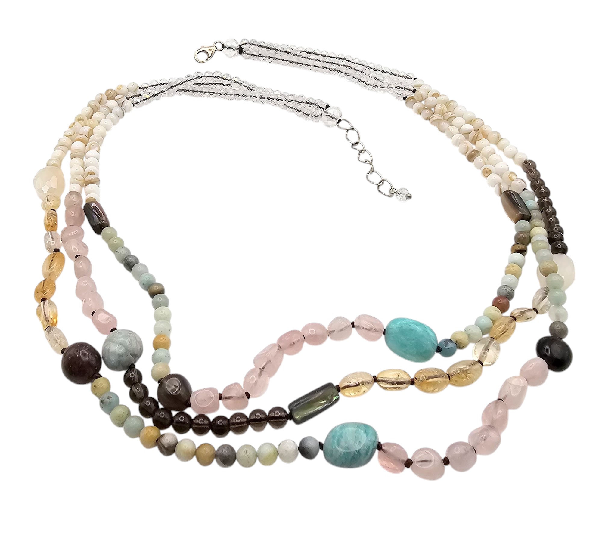 Multi Stone Sterling Silver 3 Strand Necklace 50.6 G