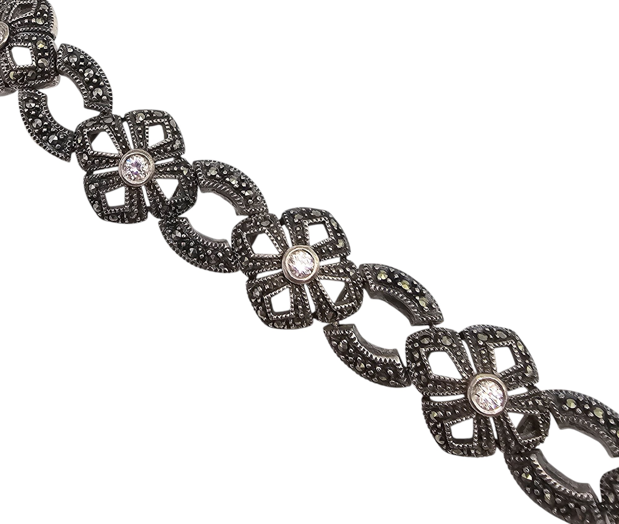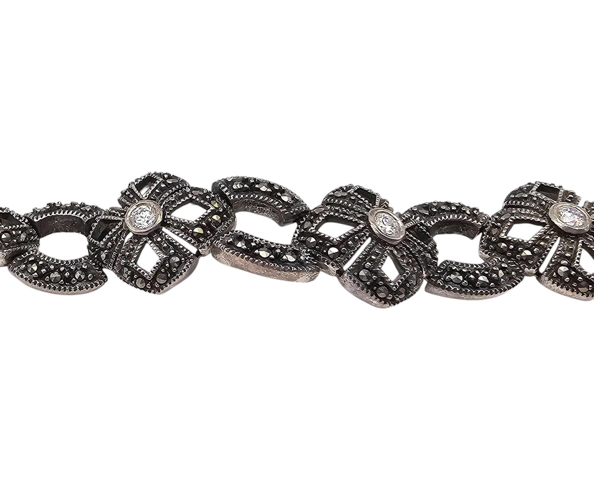 Judith Jack Marcasite Rhinestone Sterling Silver Bracelet 31.6 G
