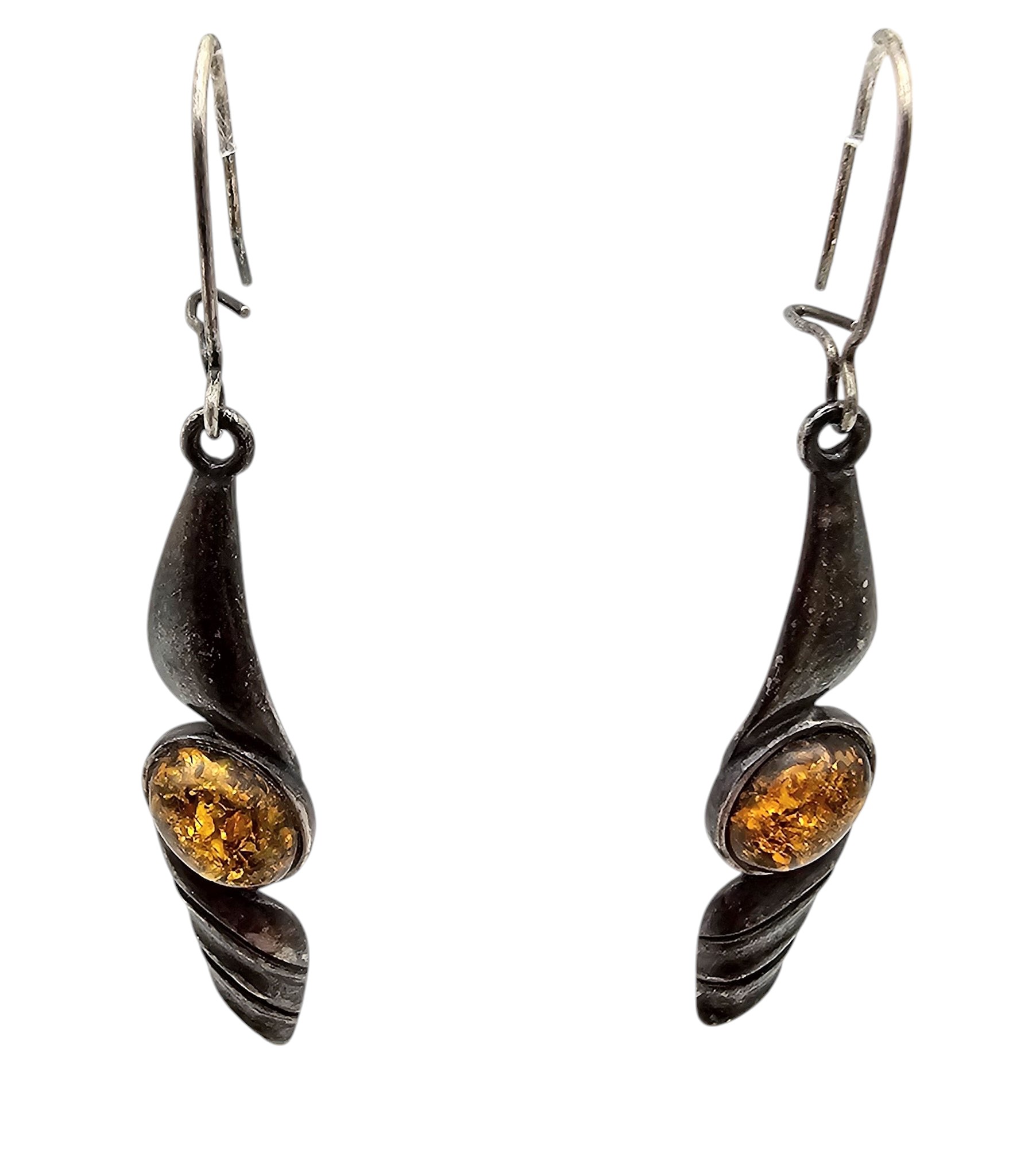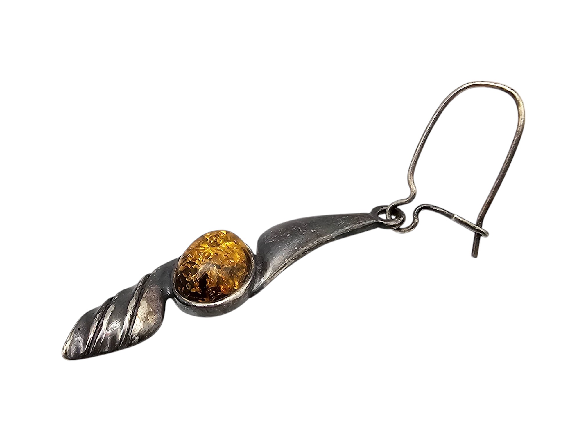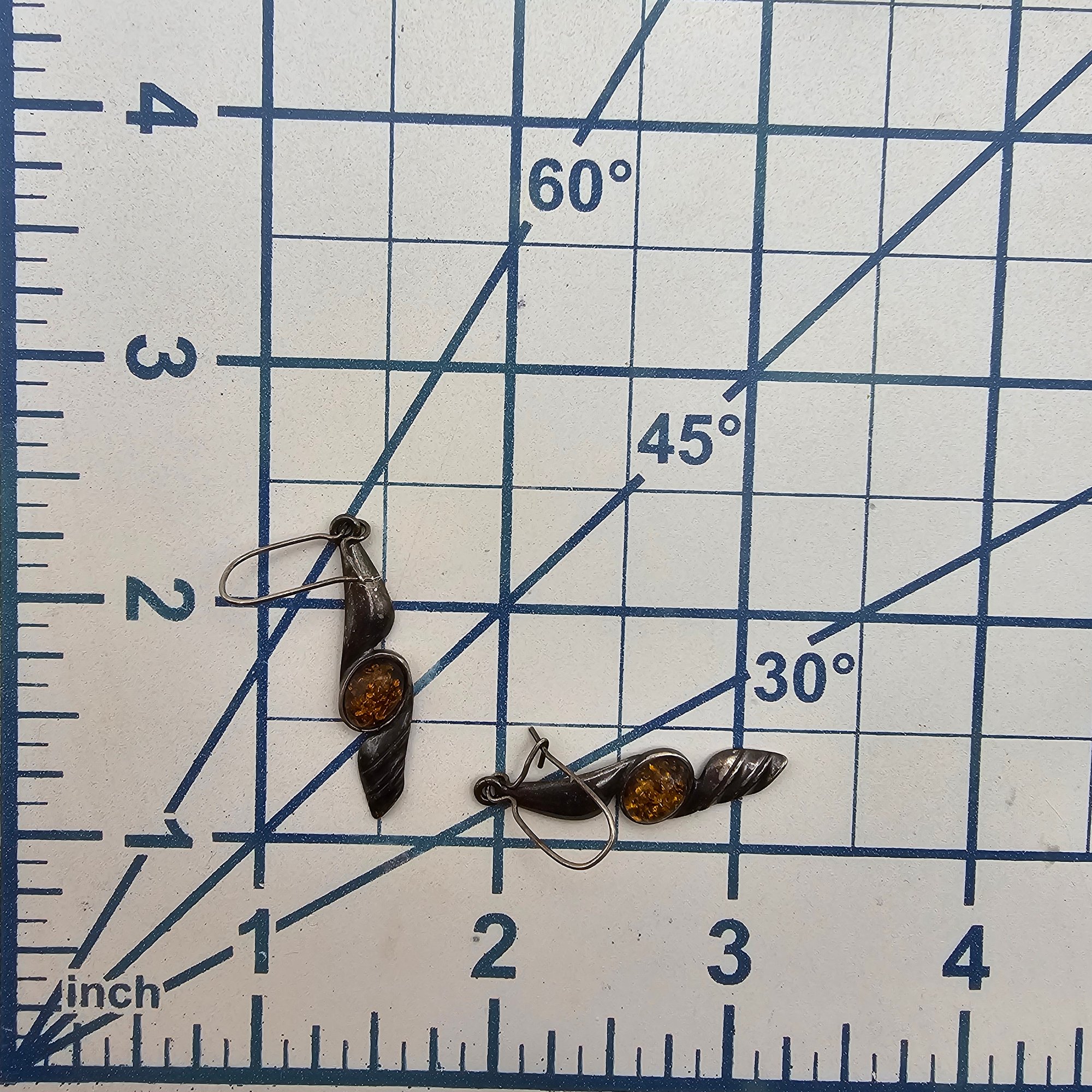 14K Gold Sterling Silver Amber Drop Dangle Earrings 2.6 G