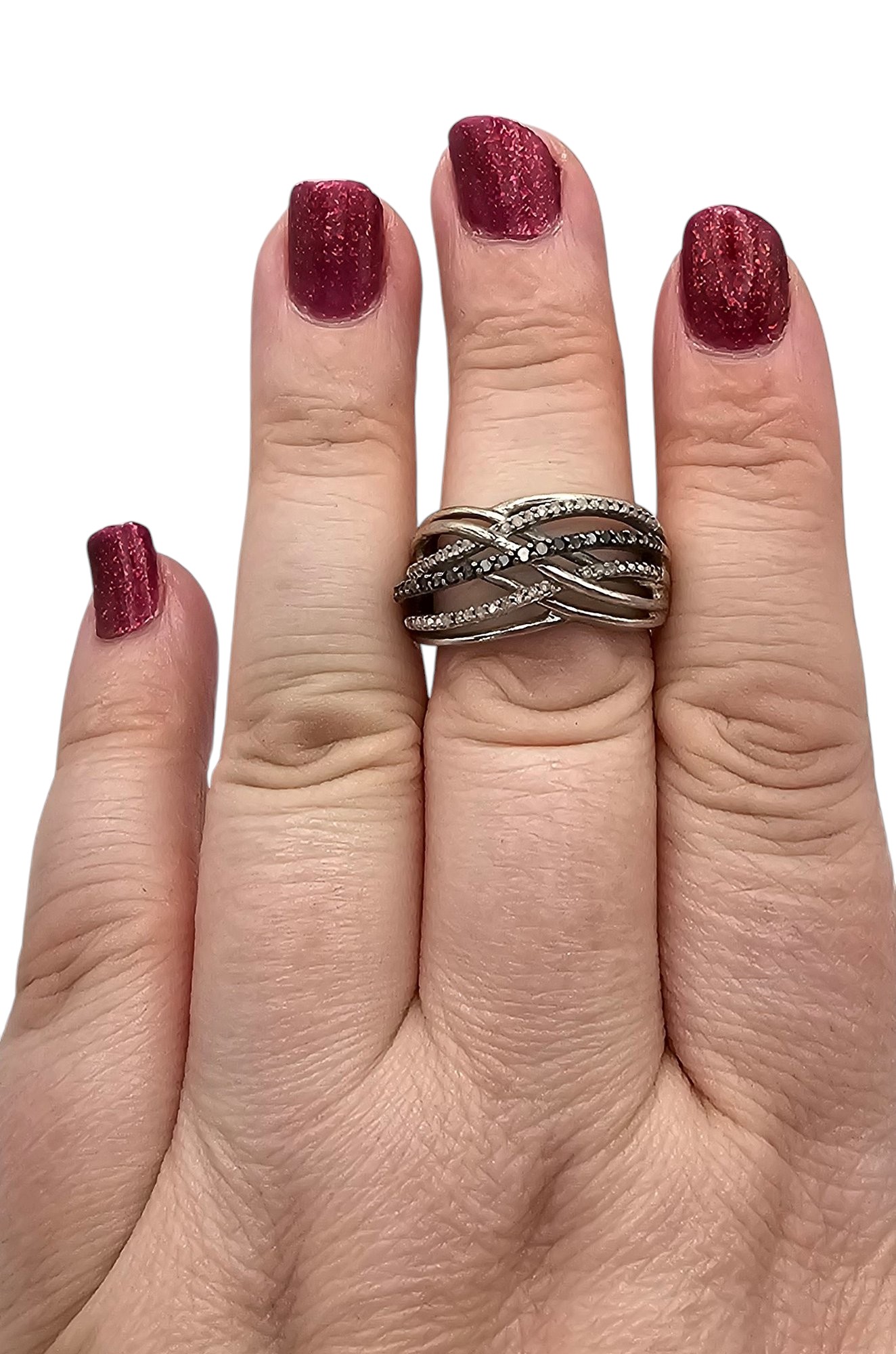 BS Diamond Sterling Silver Cocktail Ring Size 7.75 5.4 G