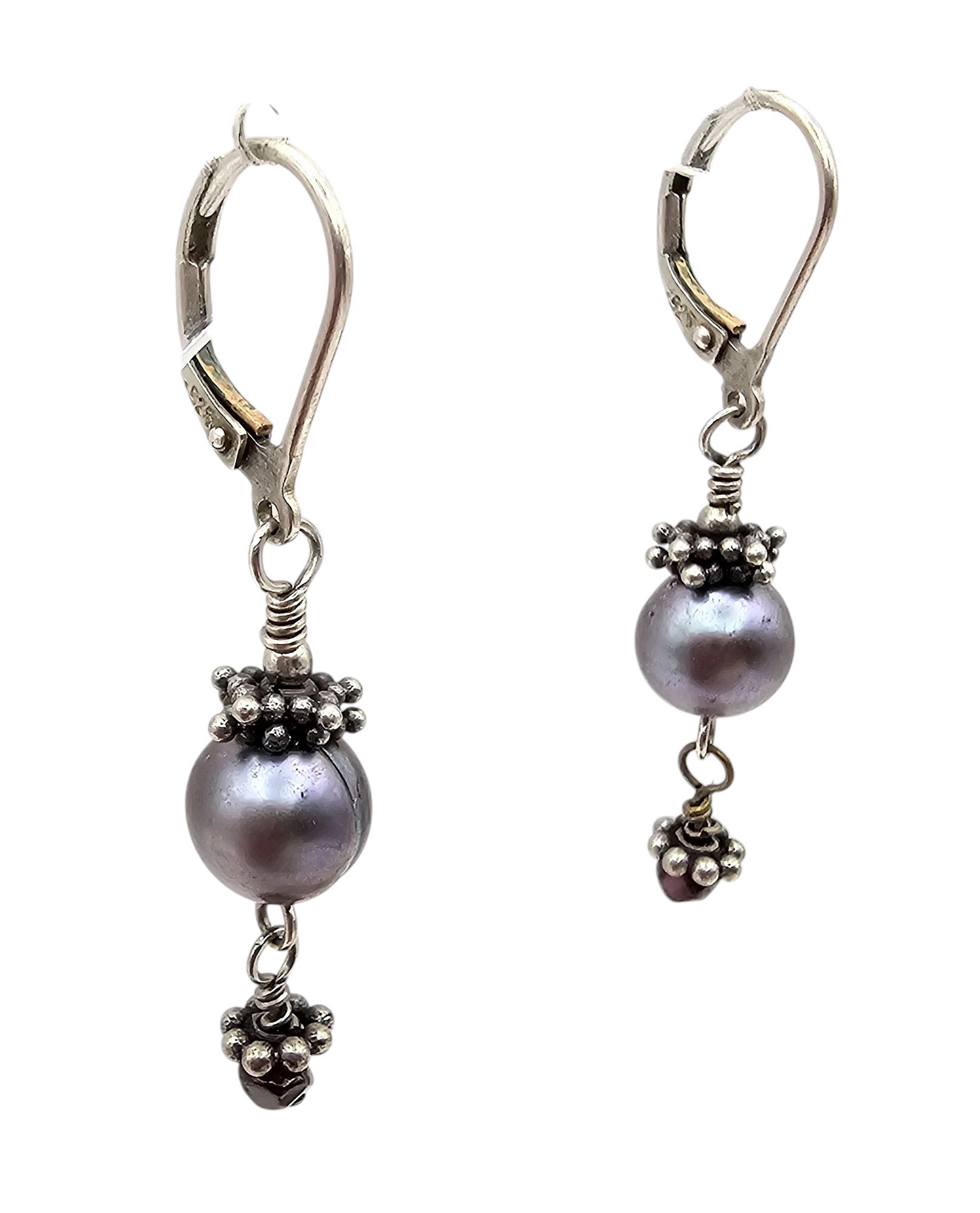 Pearl Sterling Silver Drop Dangle Earrings 3.4 G