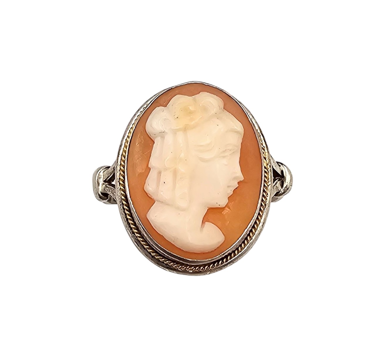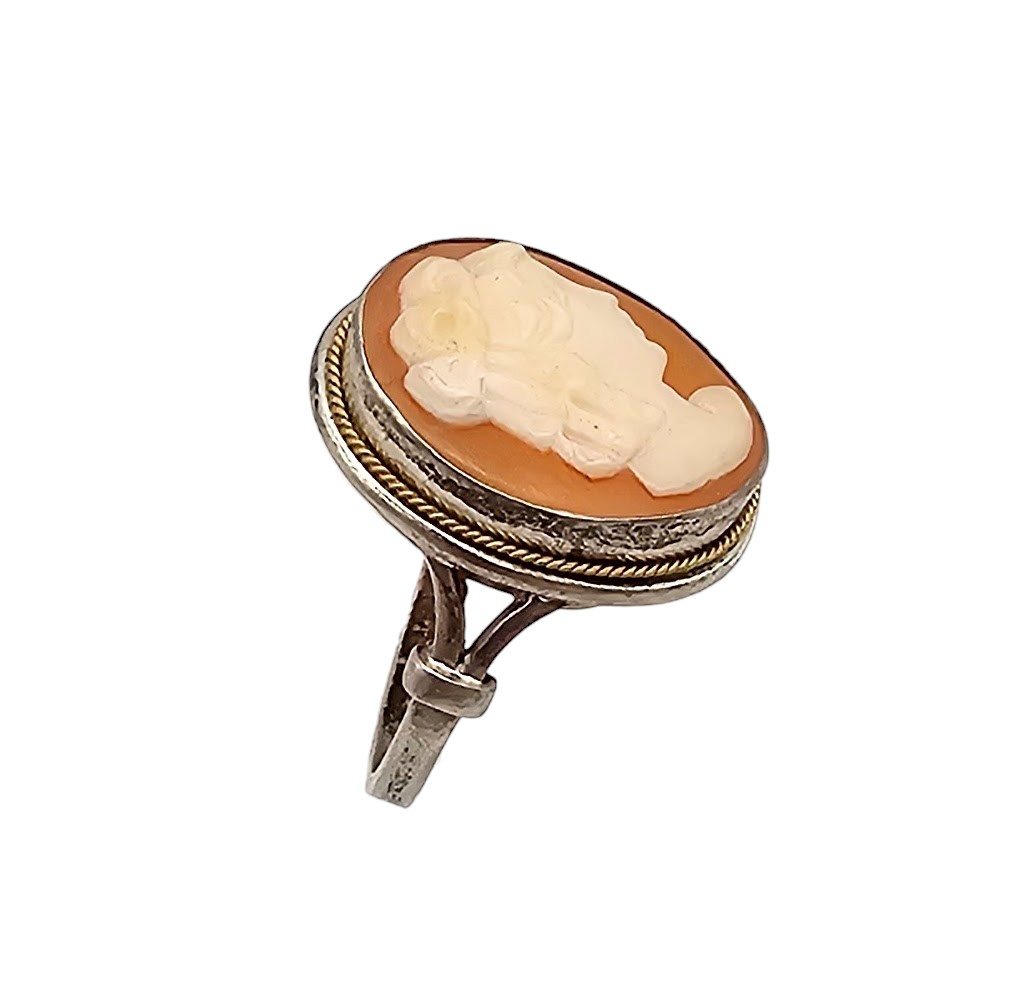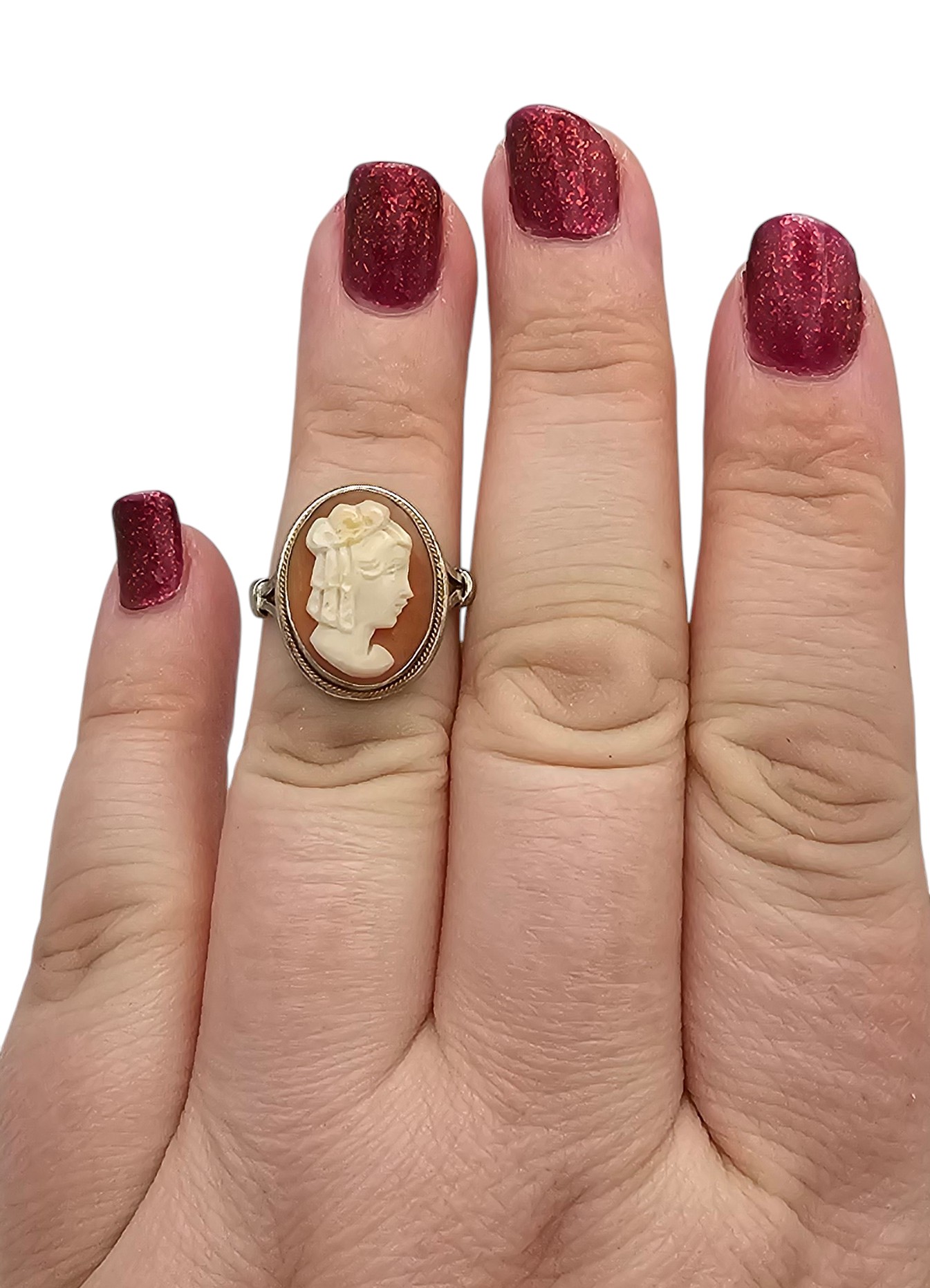 Shell Carved Cameo Sterling Silver Ring Size 6.25 3 G