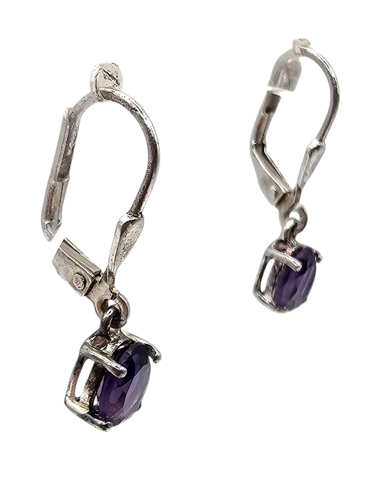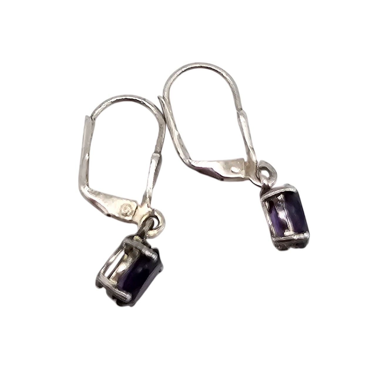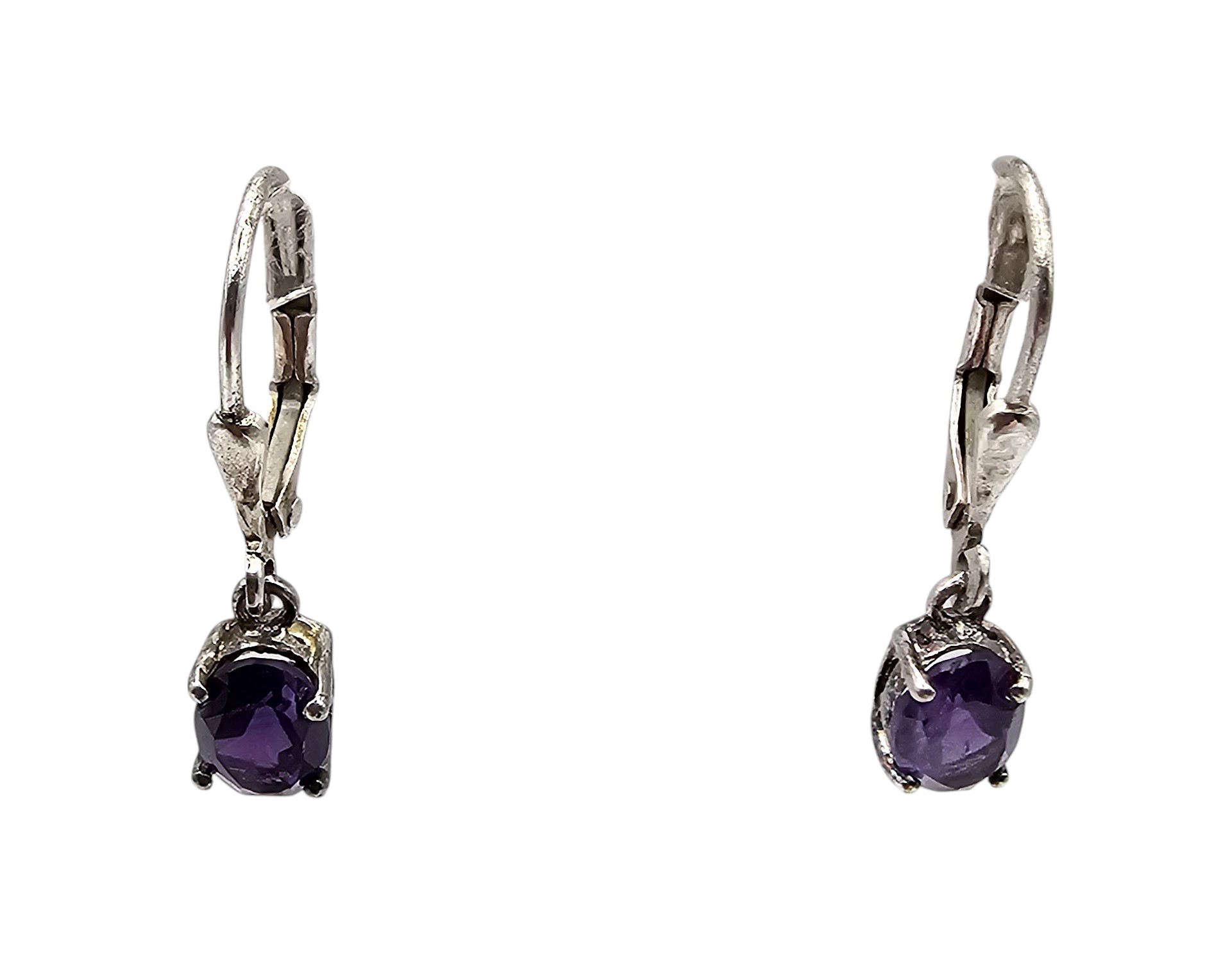 STS Amethyst Sterling Silver Drop Dangle Earrings 1.6 G