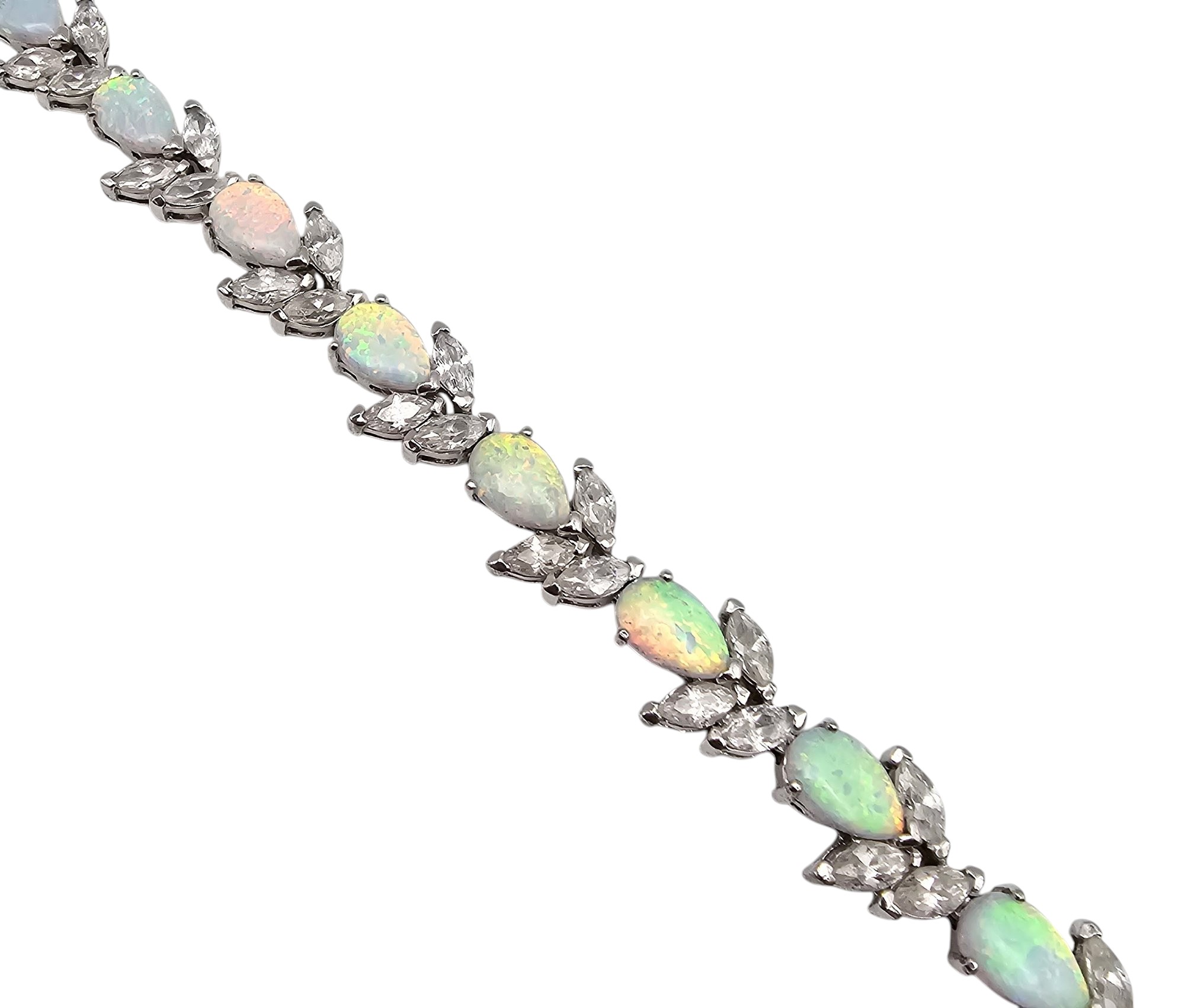 Opal rhinestone Sterling Silver Tennis Bracelet 20 G