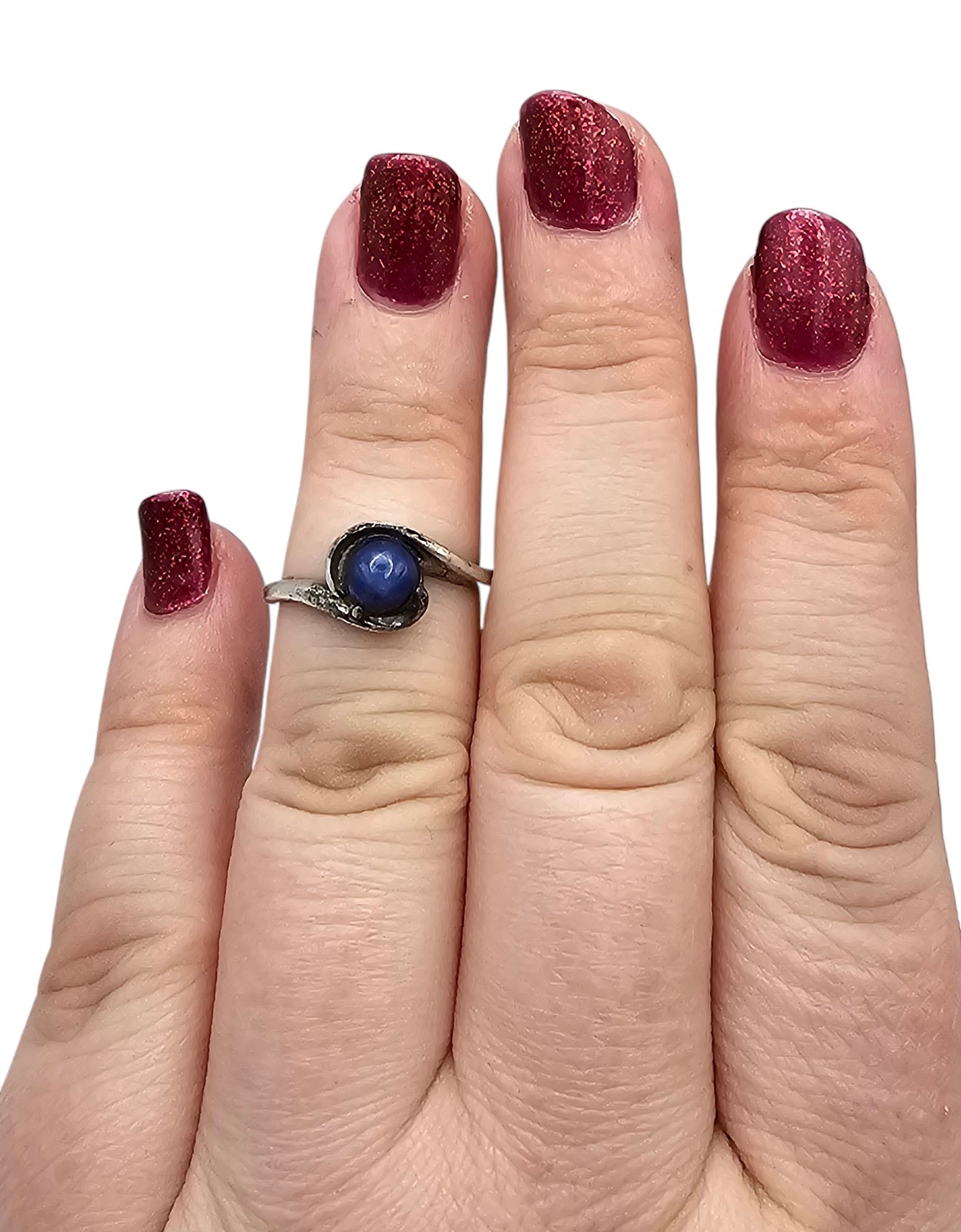 Blue lindi star sapphire Sterling Silver Cocktail Ring Size 6 2.2 G