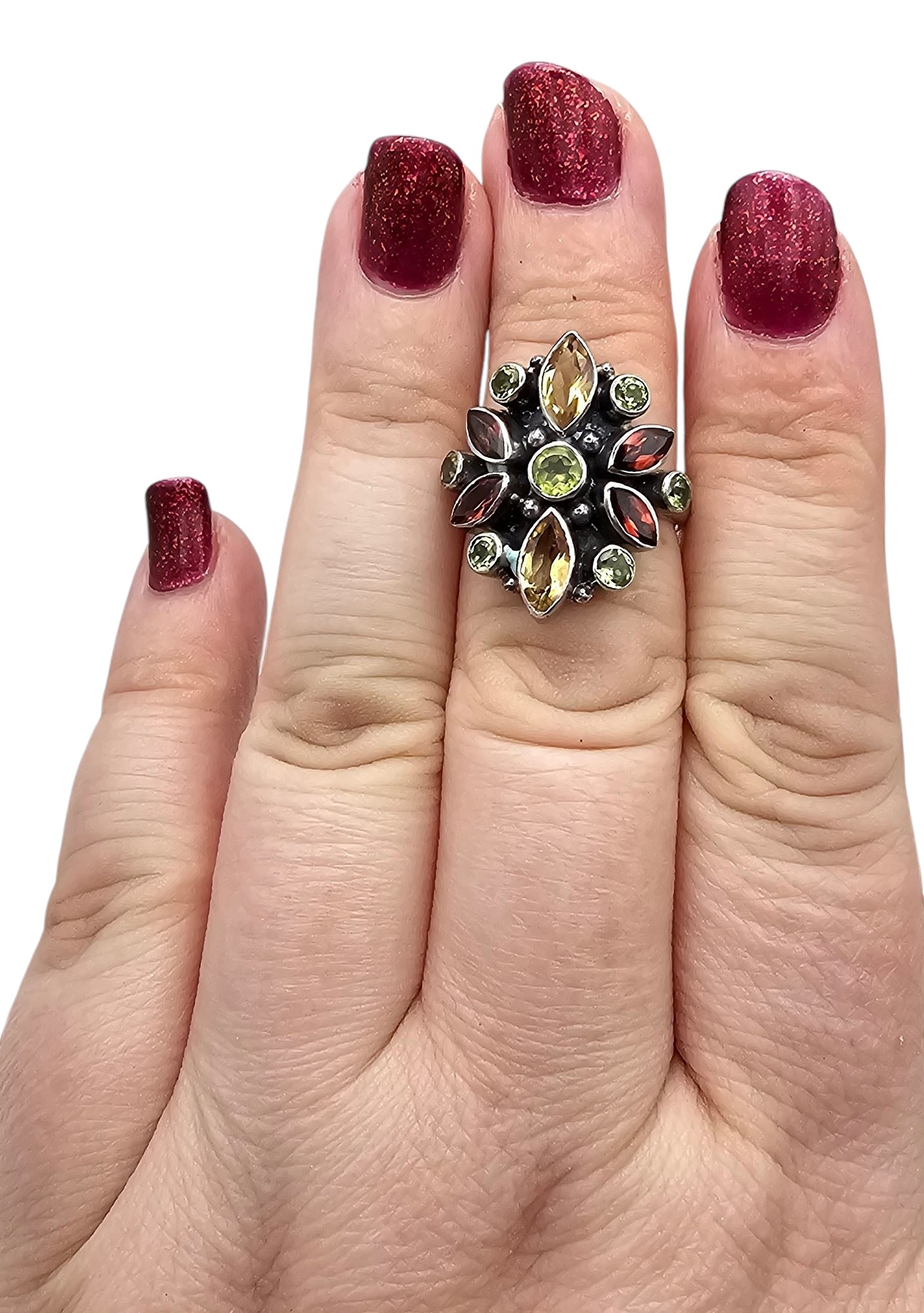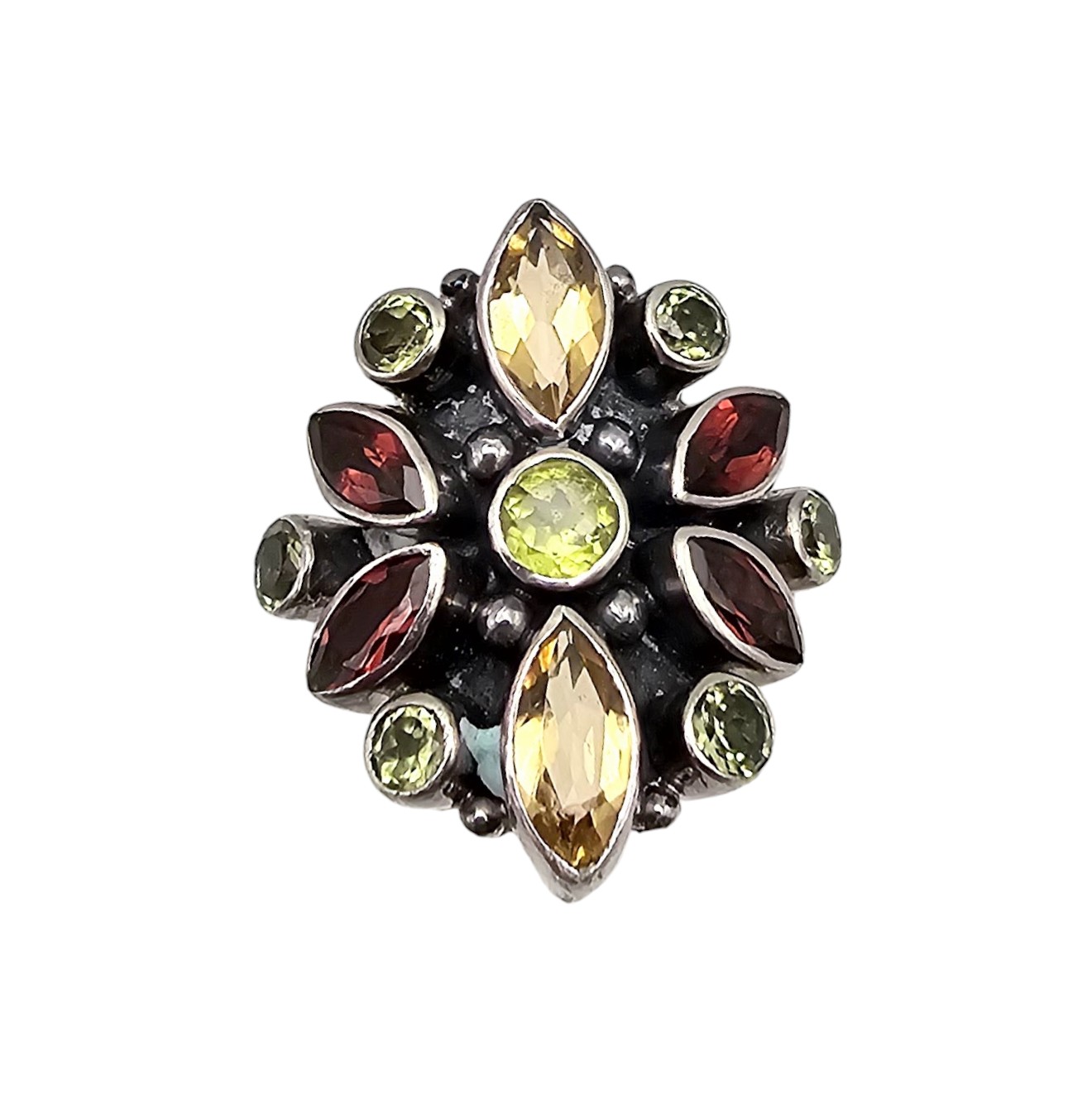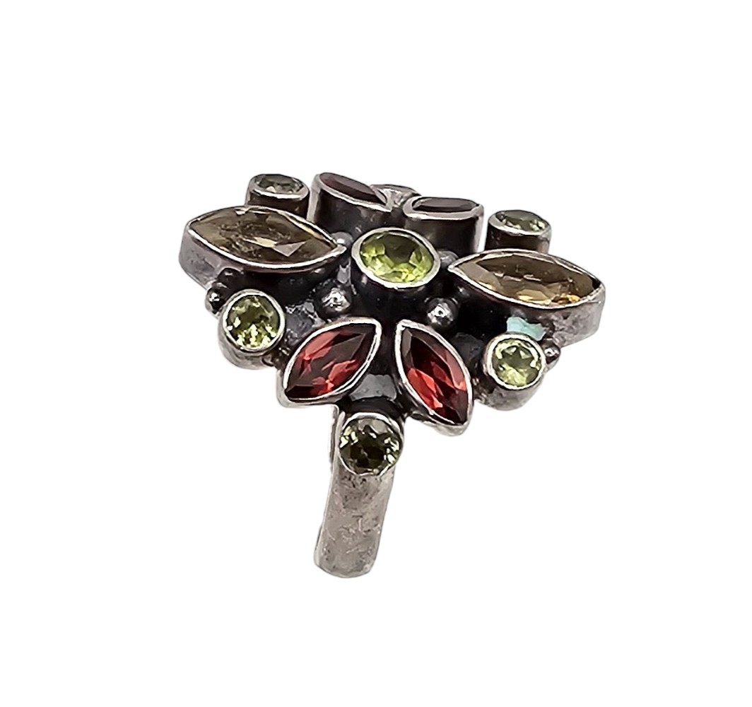 SLS Multi Gemstone Sterling Silver Cocktail Ring Size 6 6.2 G