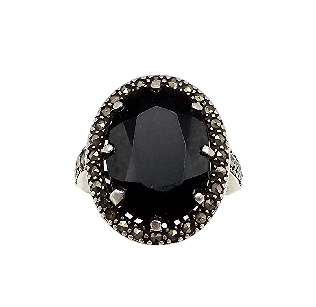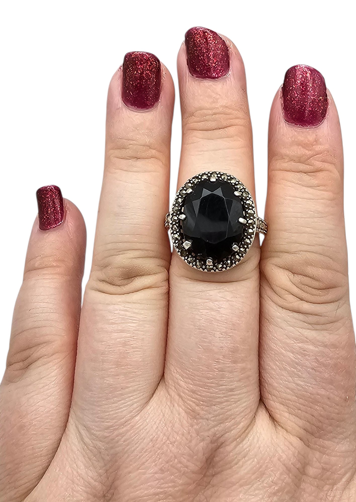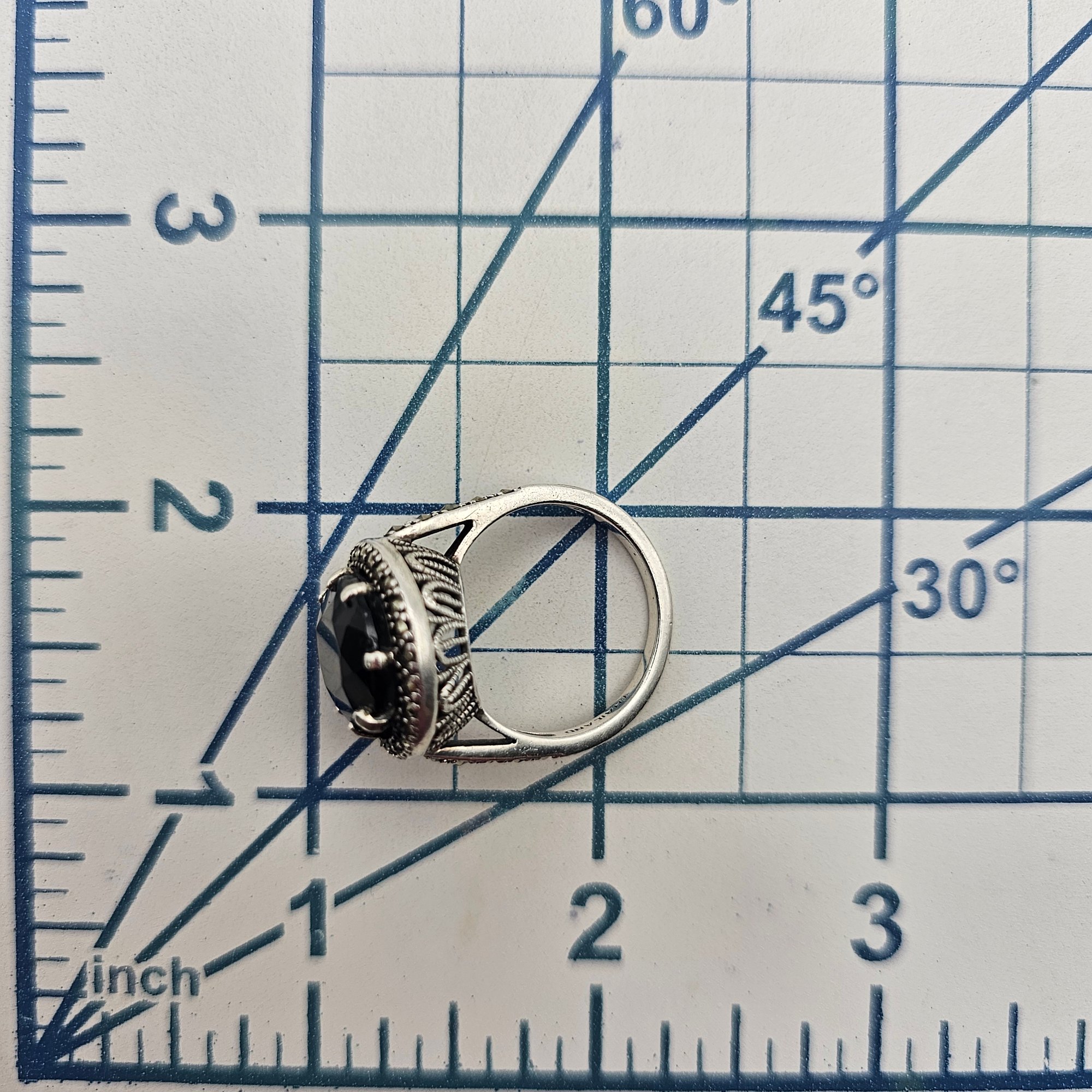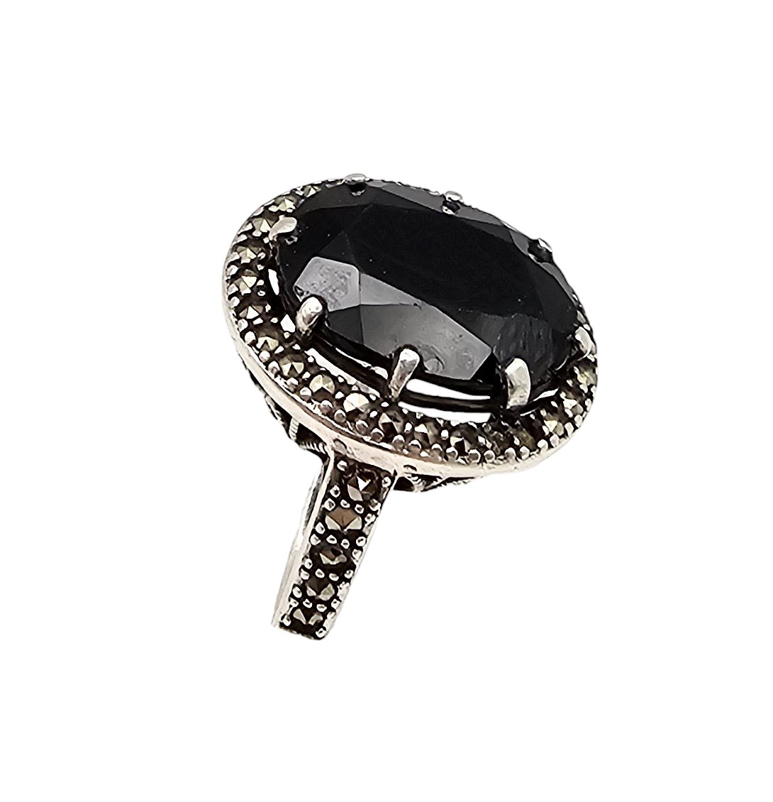 Marcasite Onyx Sterling Silver Ring Size 8.75 7.2 G