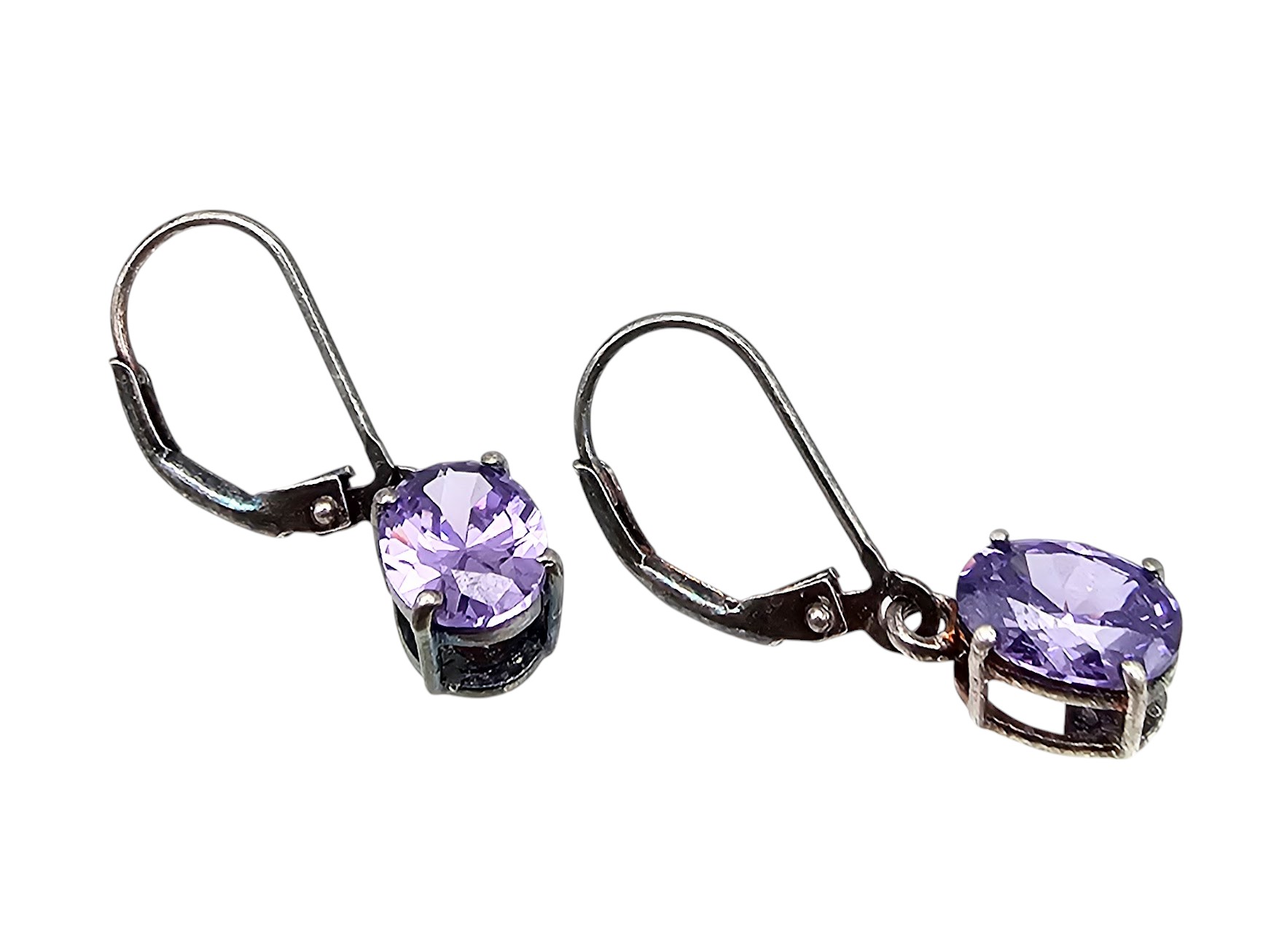 STS Amethyst Sterling silver Drop Dangle Earrings 2.2 G