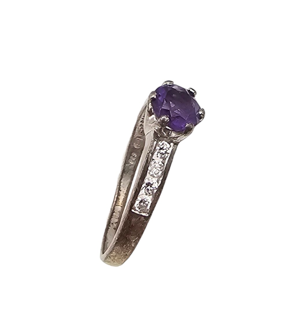 Signed Amethyst Sterling Silver Cocktail Ring Size 5.75 2.2 G