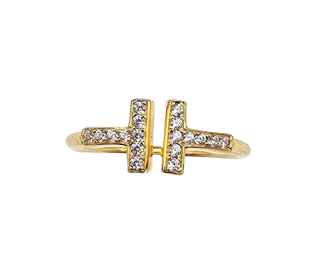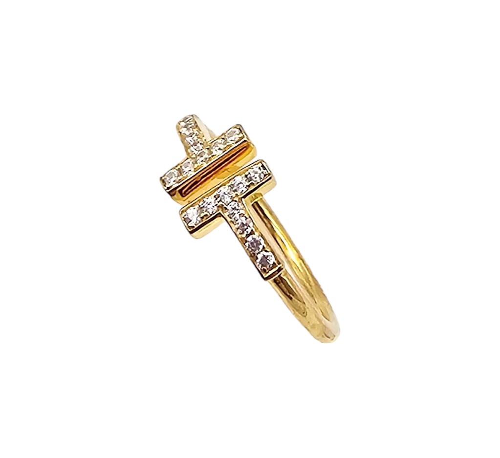 Tiffany & Co Diamond 18K Gold Sterling Silver Ring Size 5.5 1.7 G