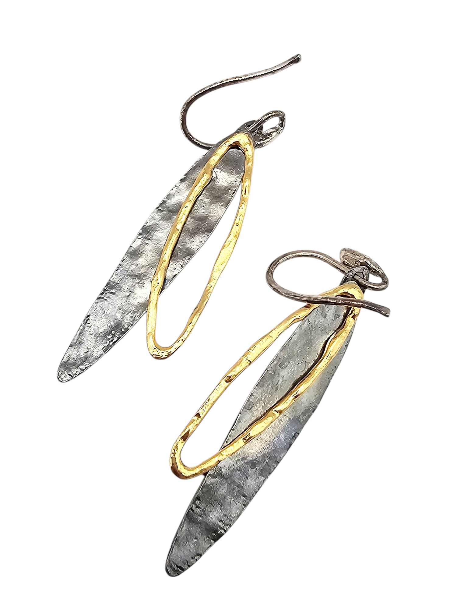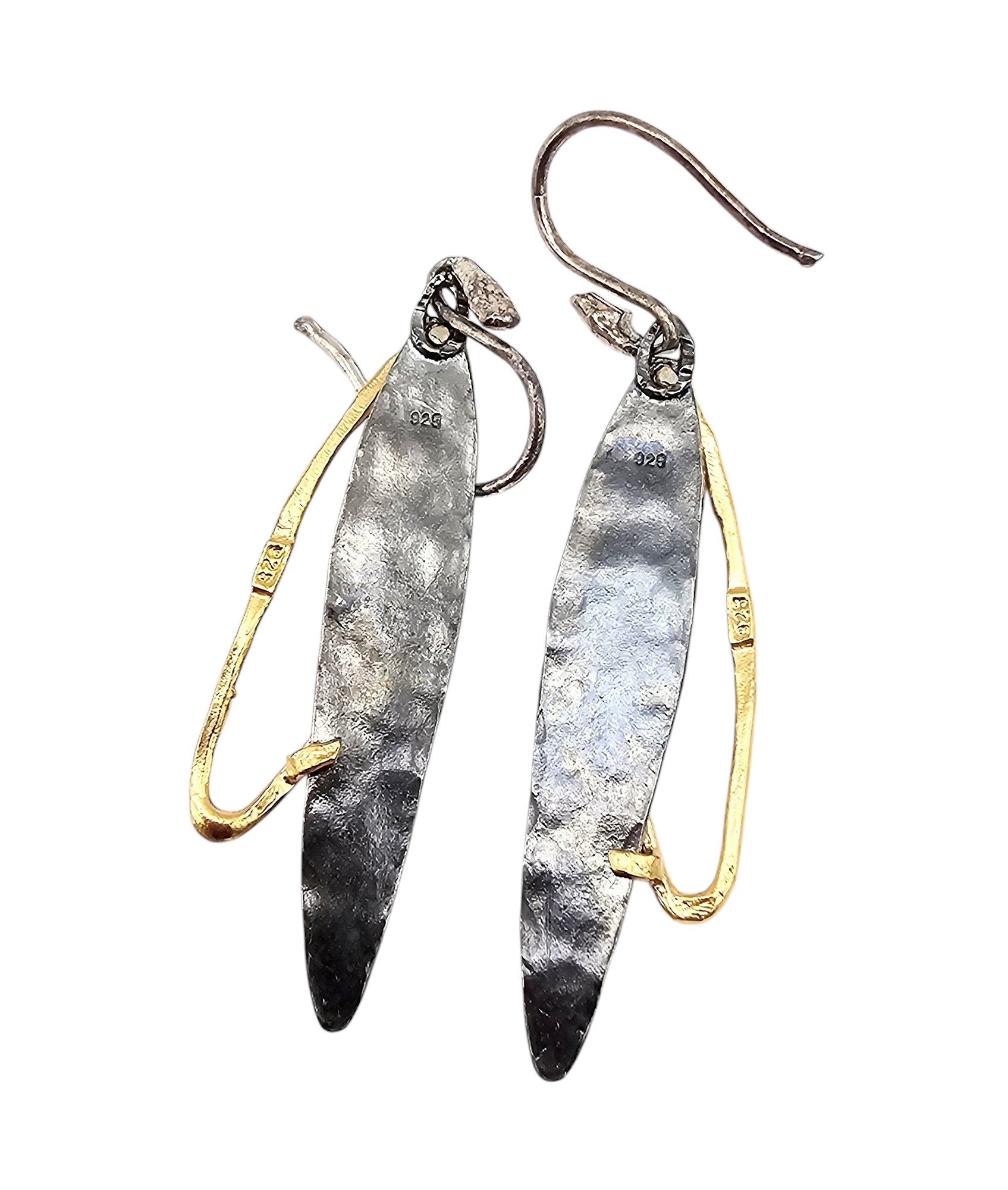 Sterling Silver Two-Tone Drop Dangle Earrings 5.5 G