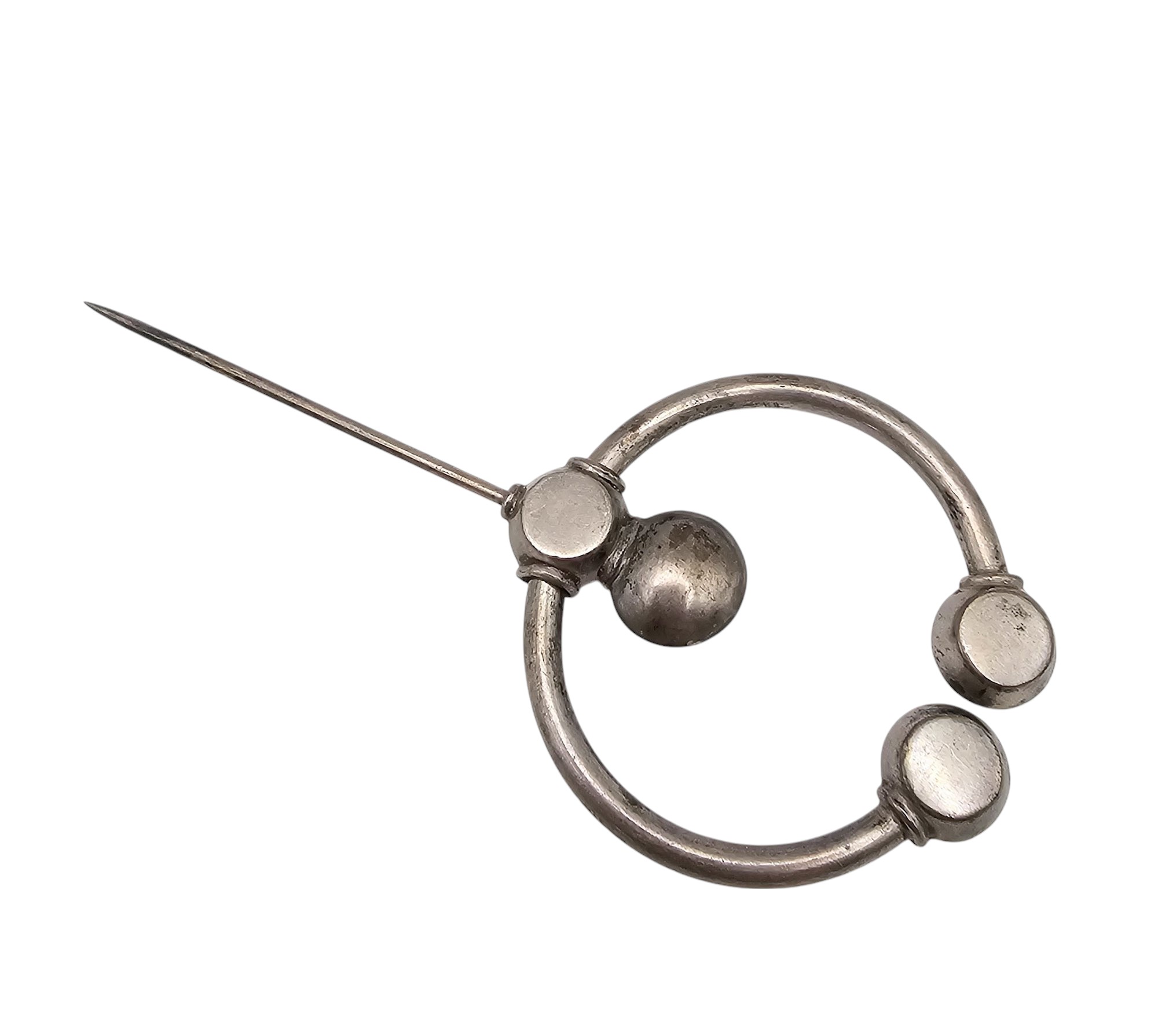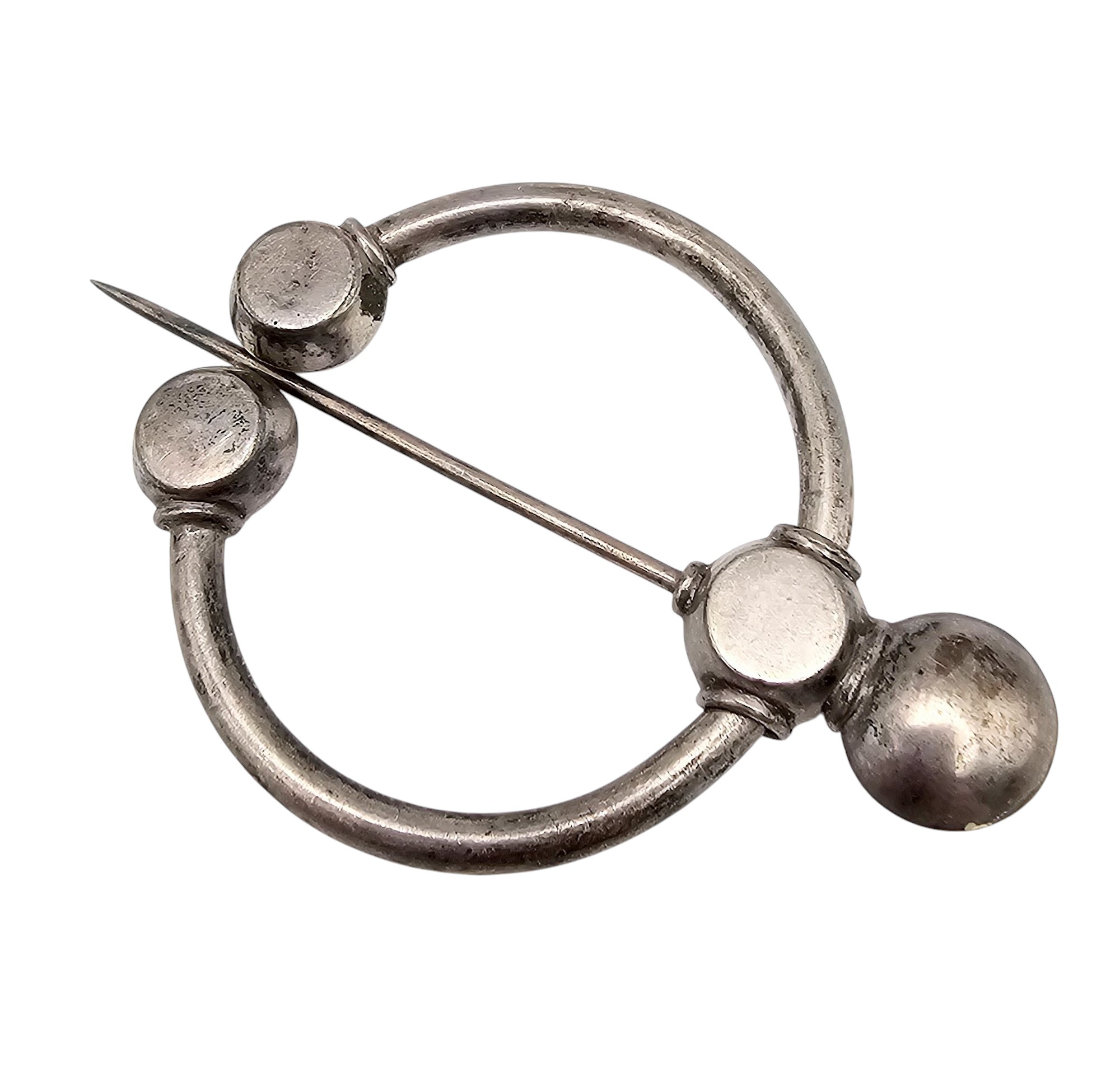 Vintage Scottish Sterling Silver Celtic Penannular Cloak Pin Brooch 13.2 G