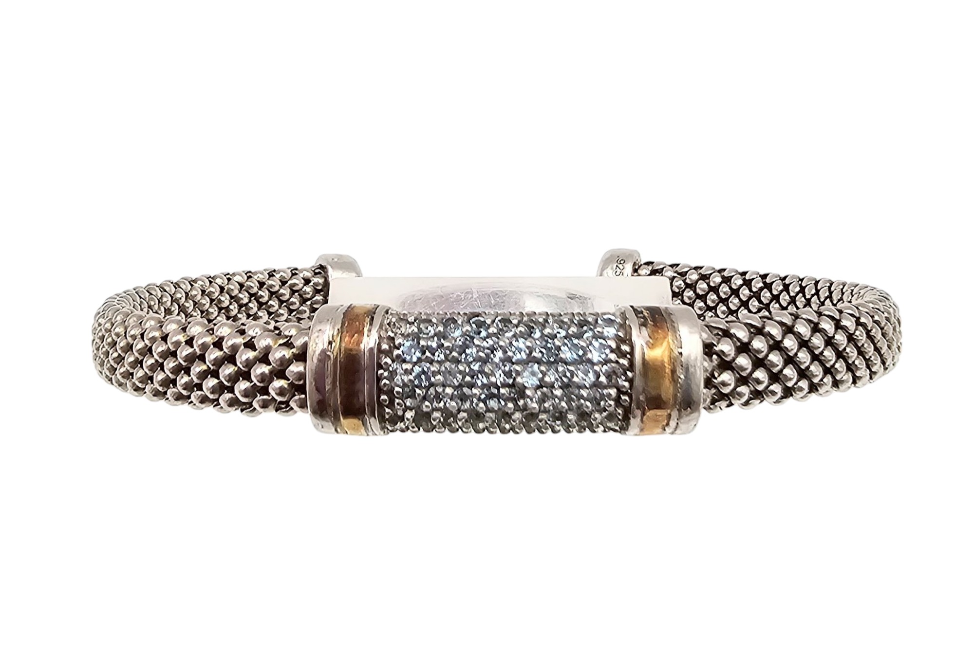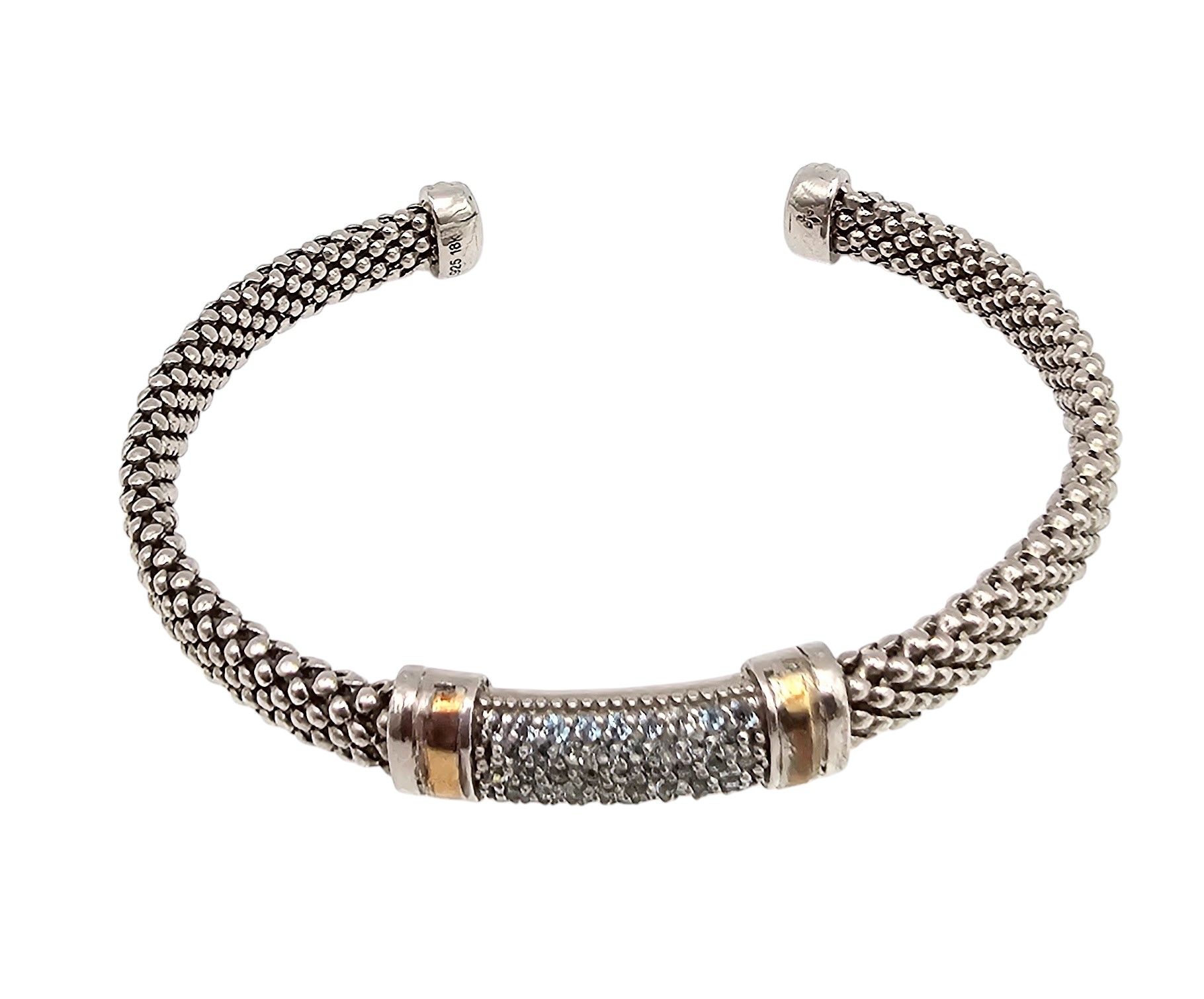 Signed with Flur De Lis Diamond 18K Gold Sterling Silver Cuff Bracelet 14.6 G