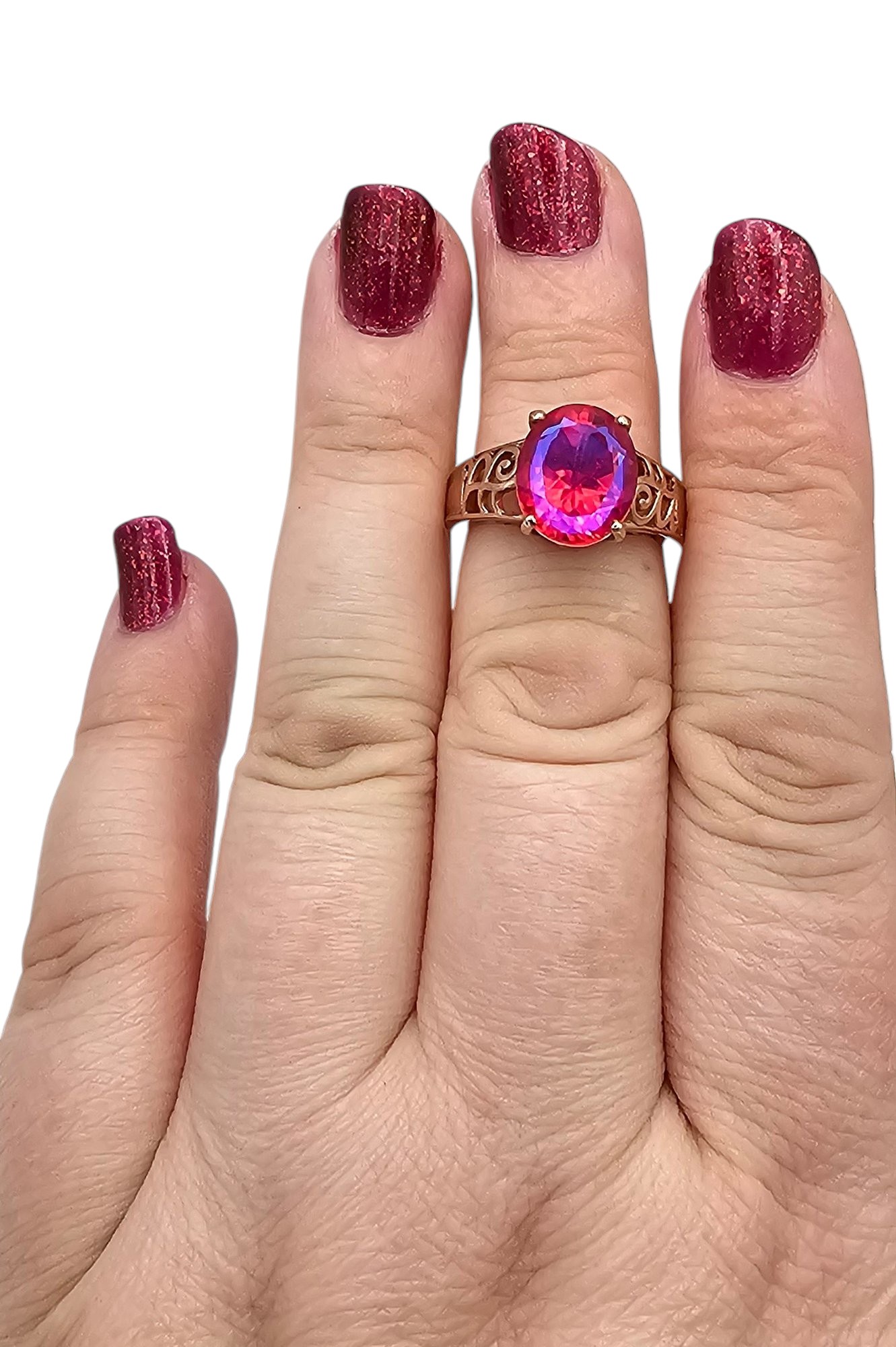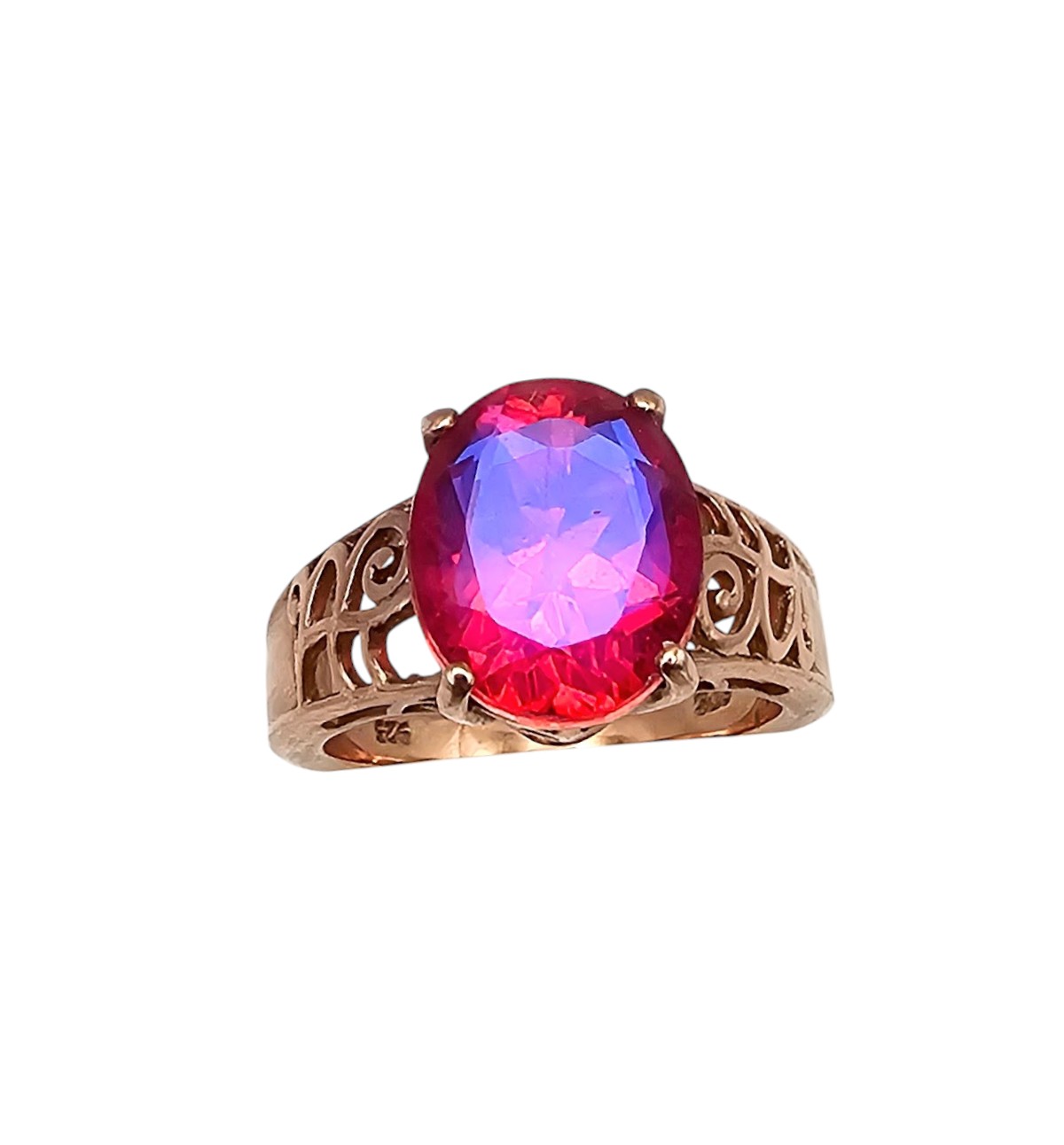 STS Pink Tourmaline Gold Over Sterling Silver Cocktail Ring Size 6.5 5.6 G