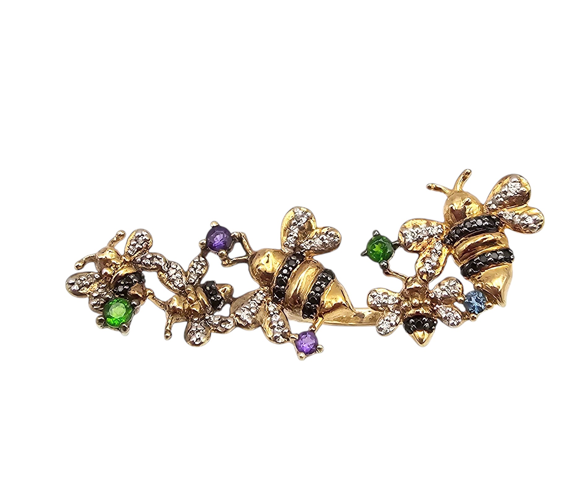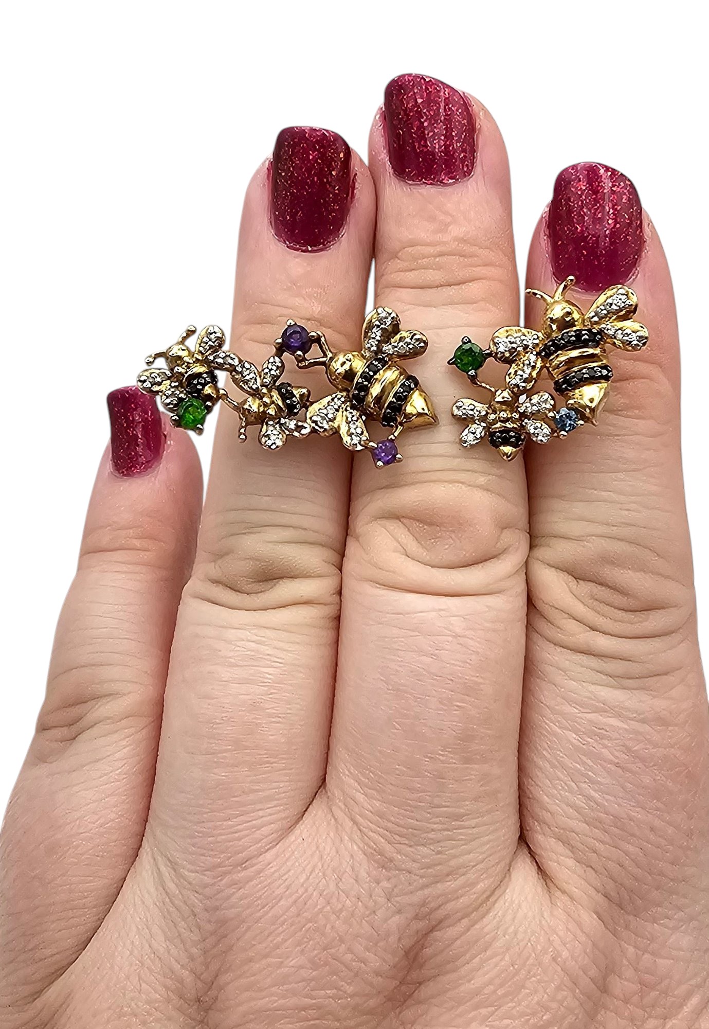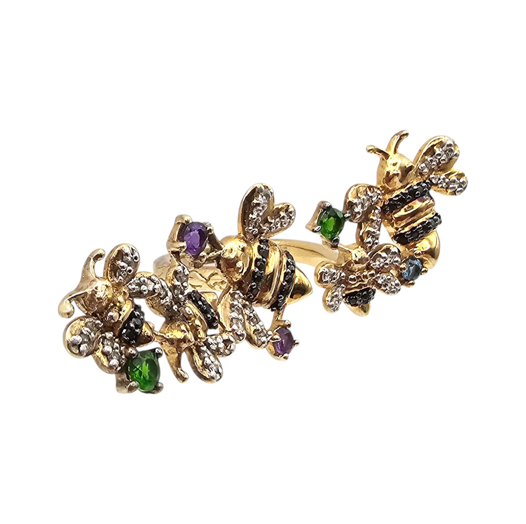 STS Multi Gemstone Gold Over Sterling Silver Bee Ring Size 5.25 7.7 G