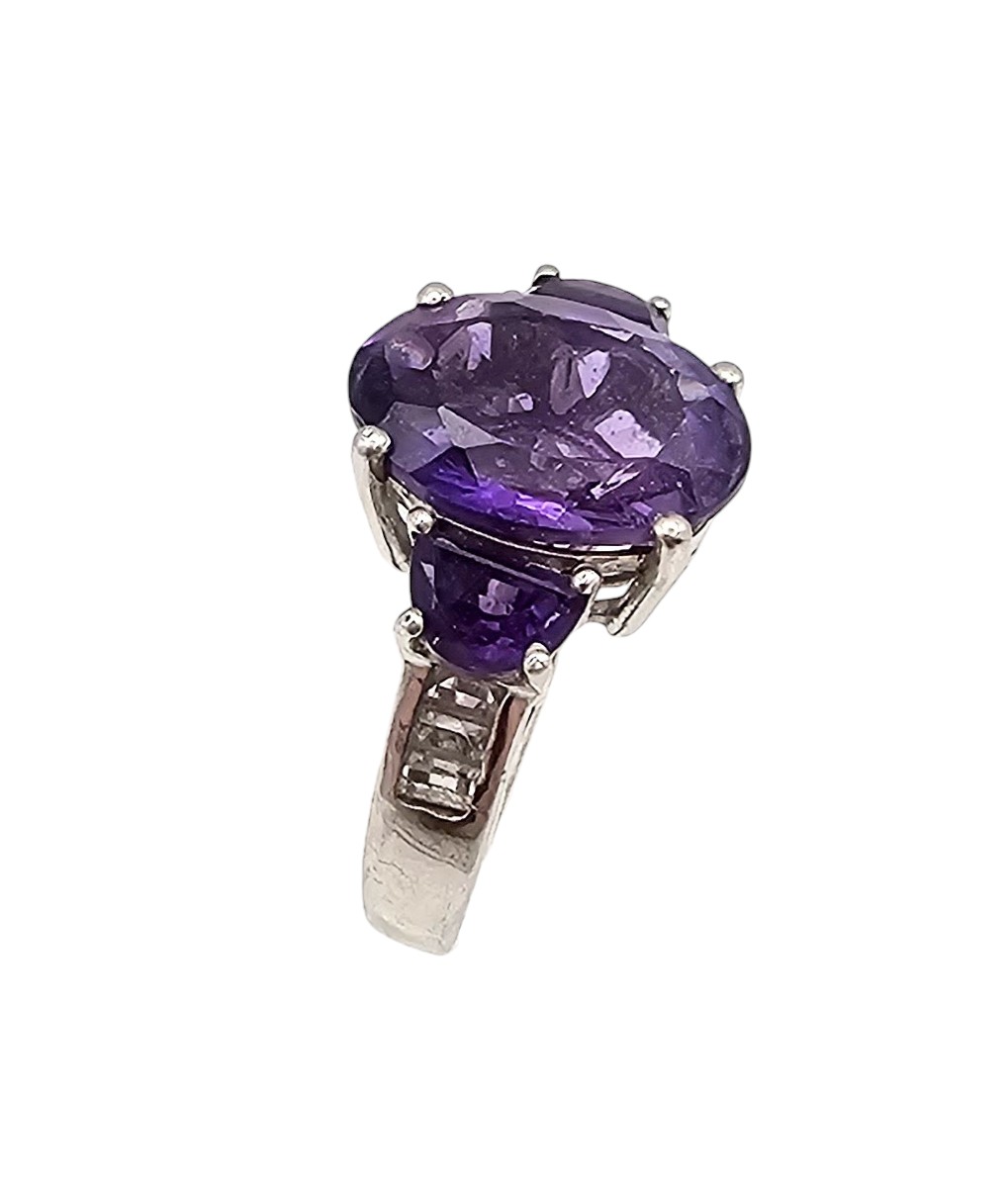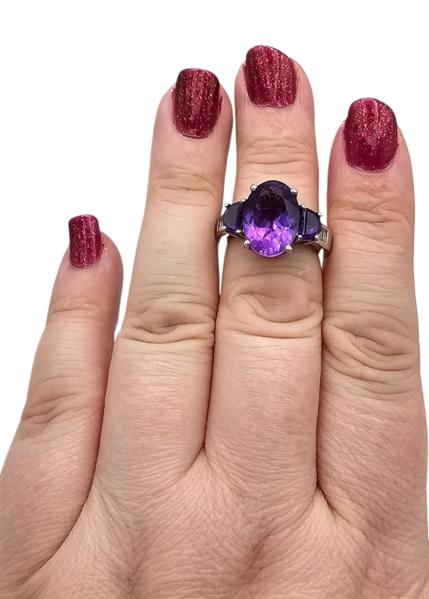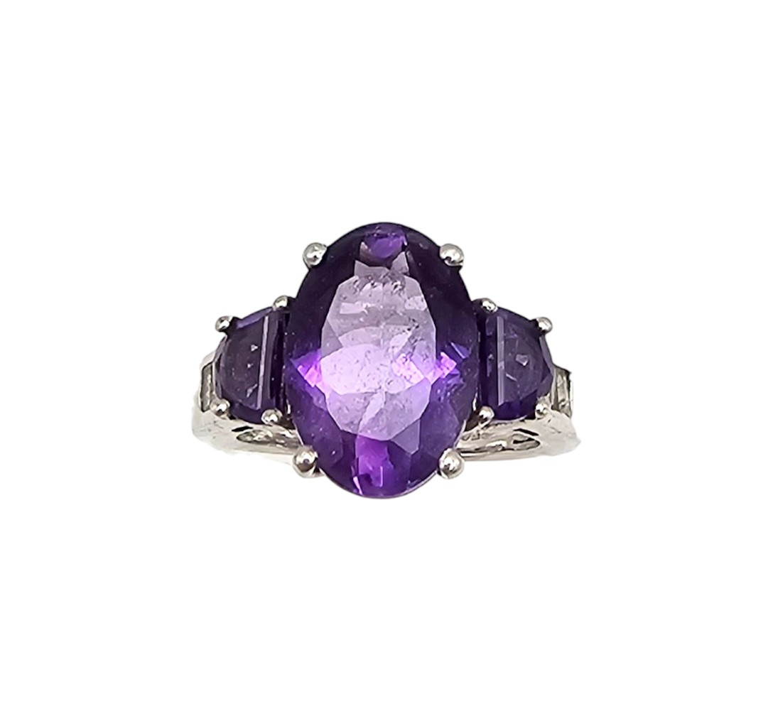 STS Amethyst Sterling Silver Cocktail Ring Size 6.75 5.5 G