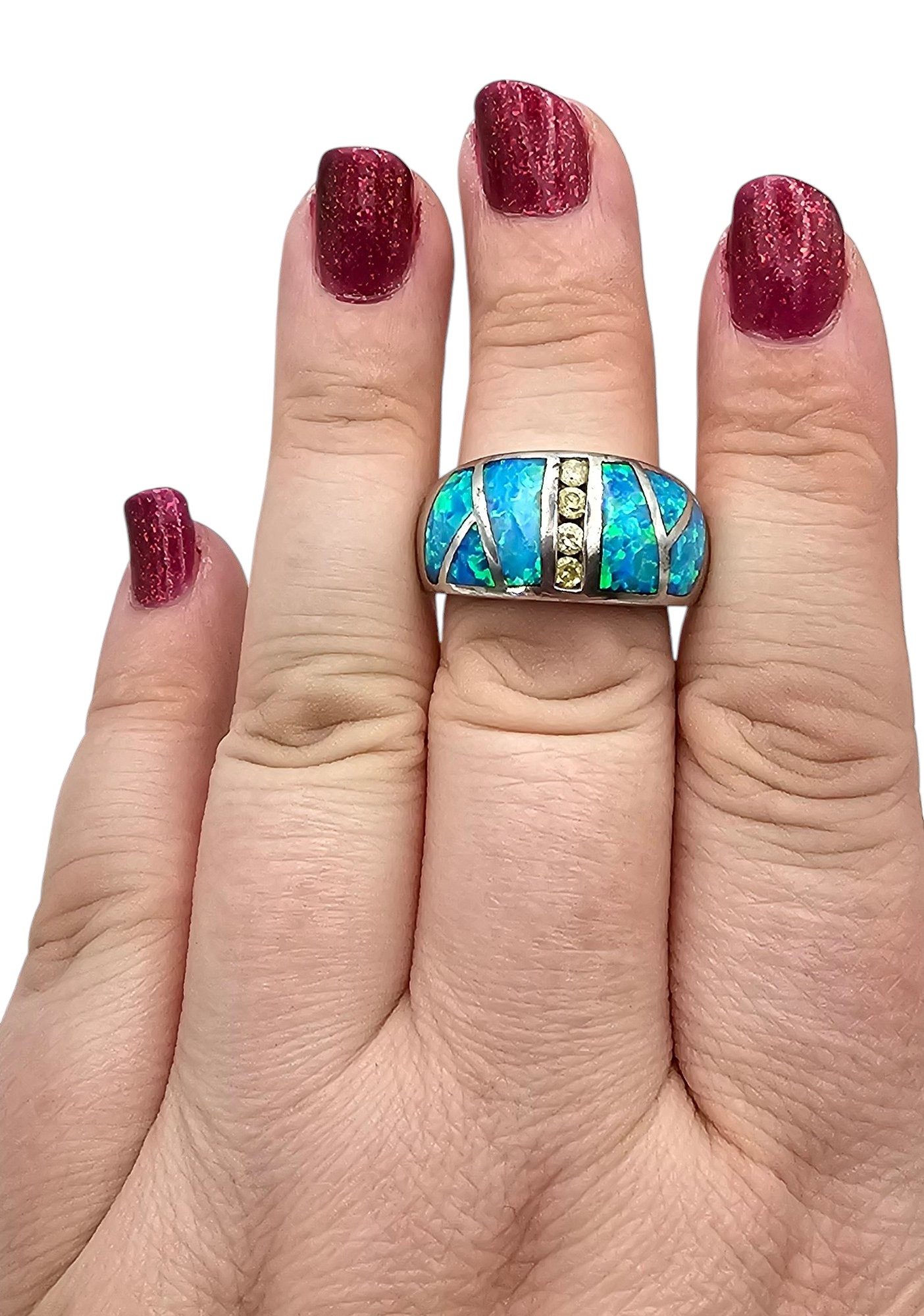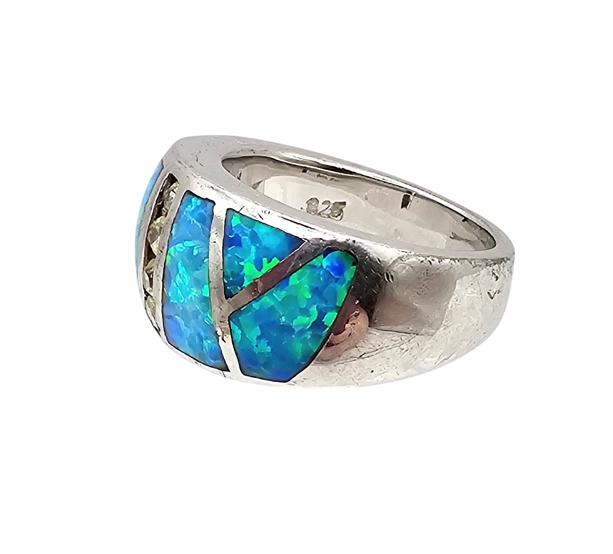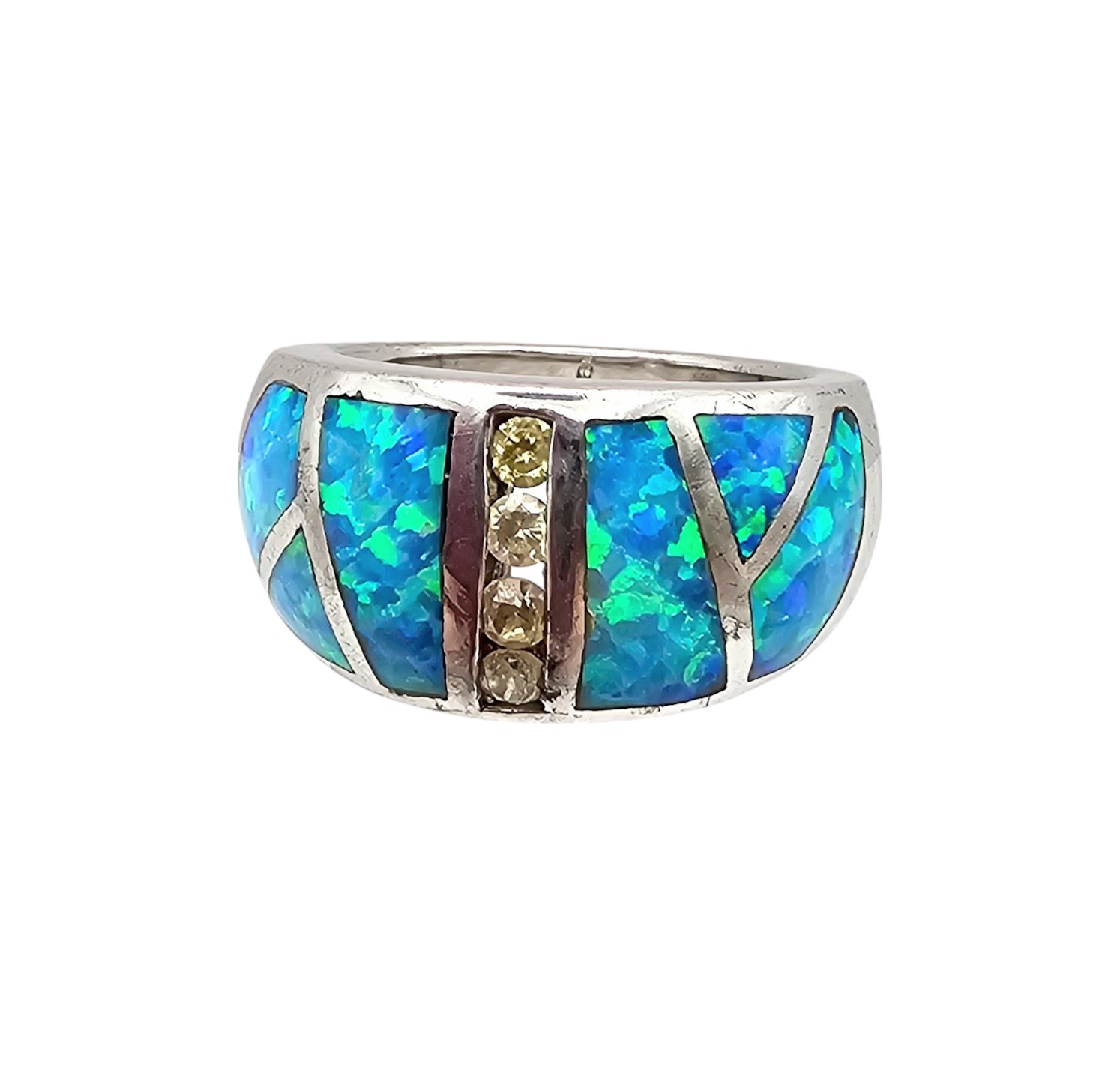 Opal Clear Stone Sterling Silver Ring Size 7.5 13.5 G