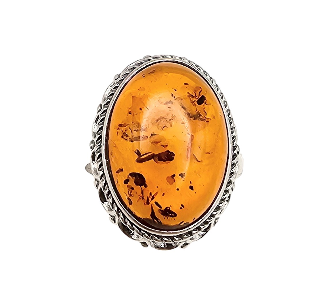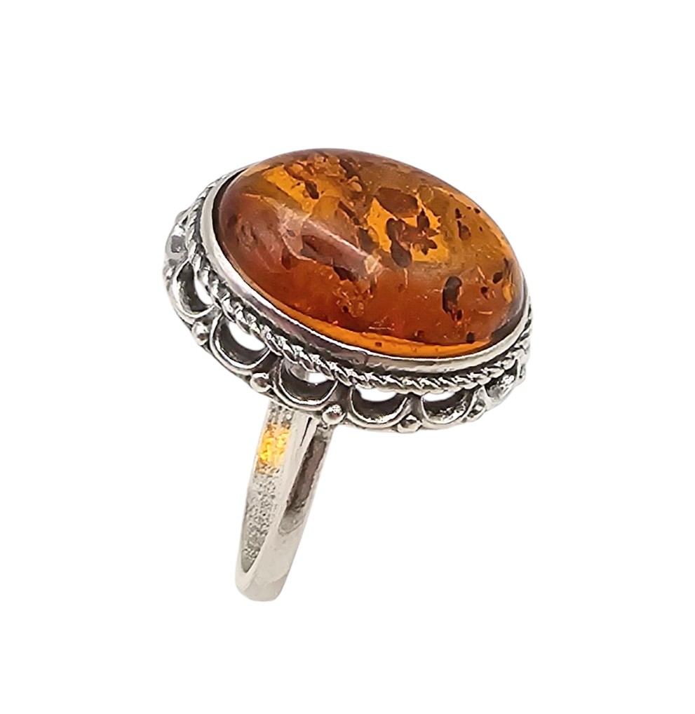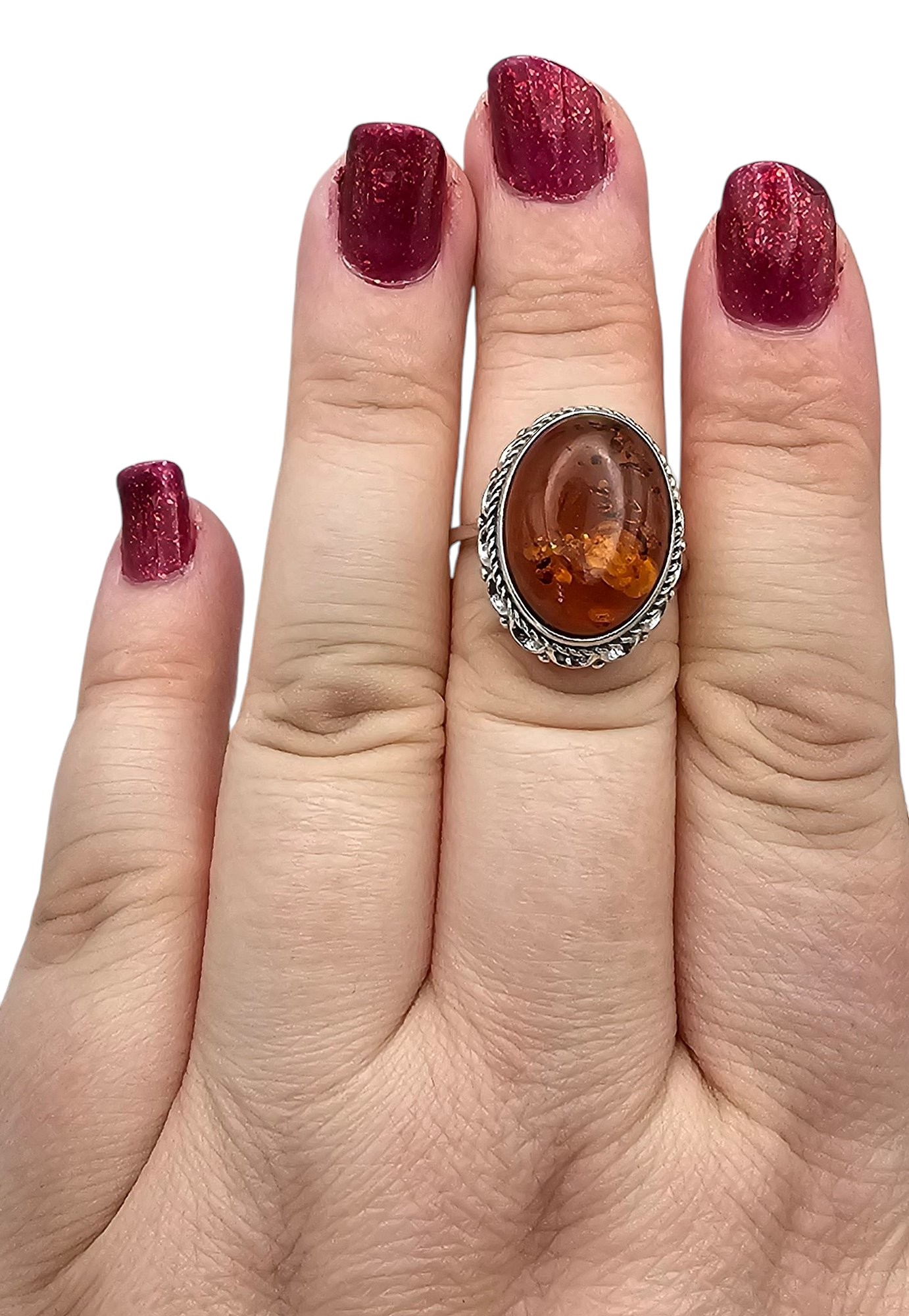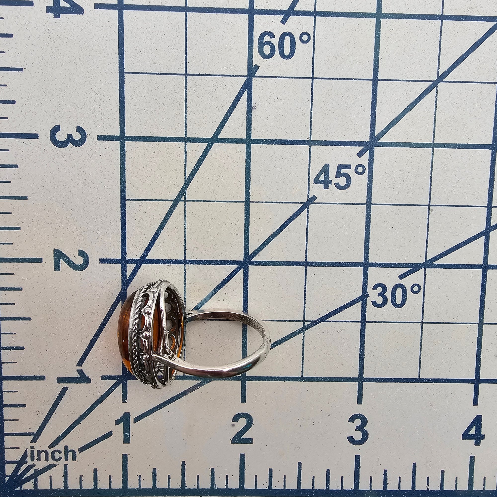 New Amber Sterling Silver Ring Size 7.5 5 G