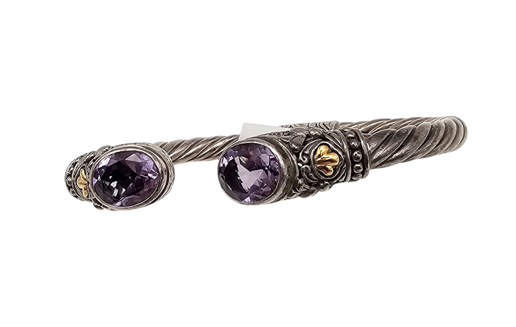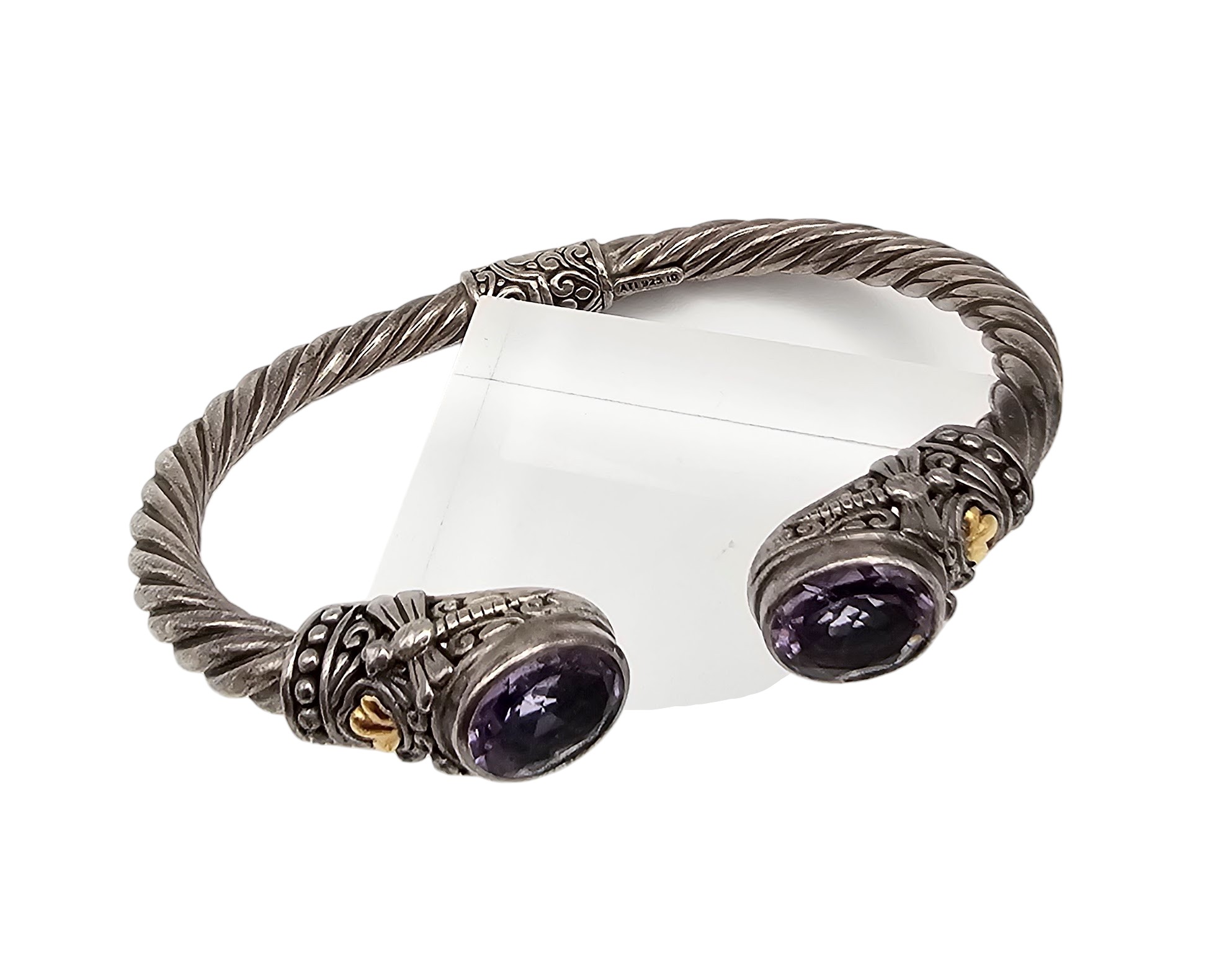 ATI Amethyst 18K Gold Sterling Silver Hinge Cuff Bracelet 22 G