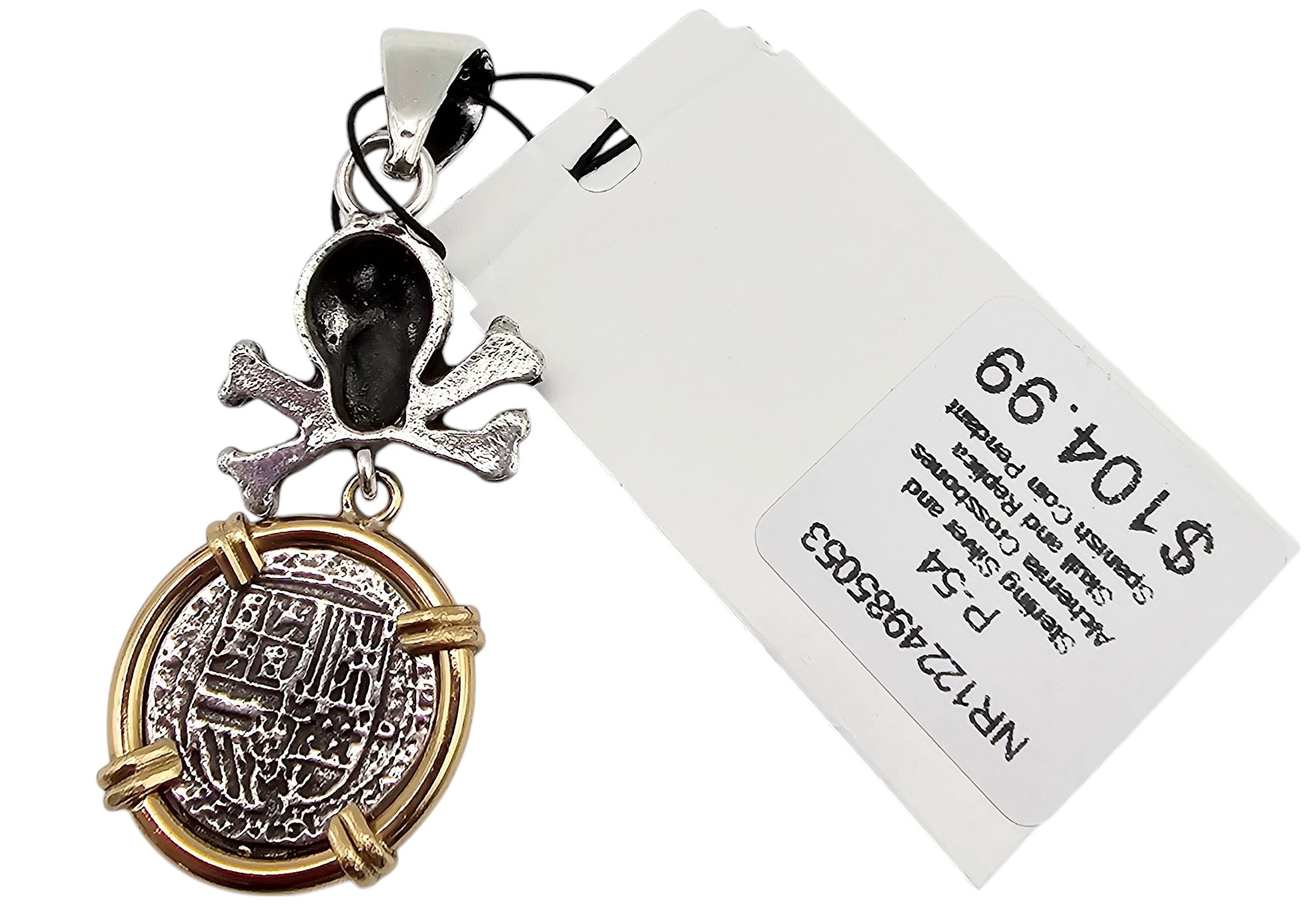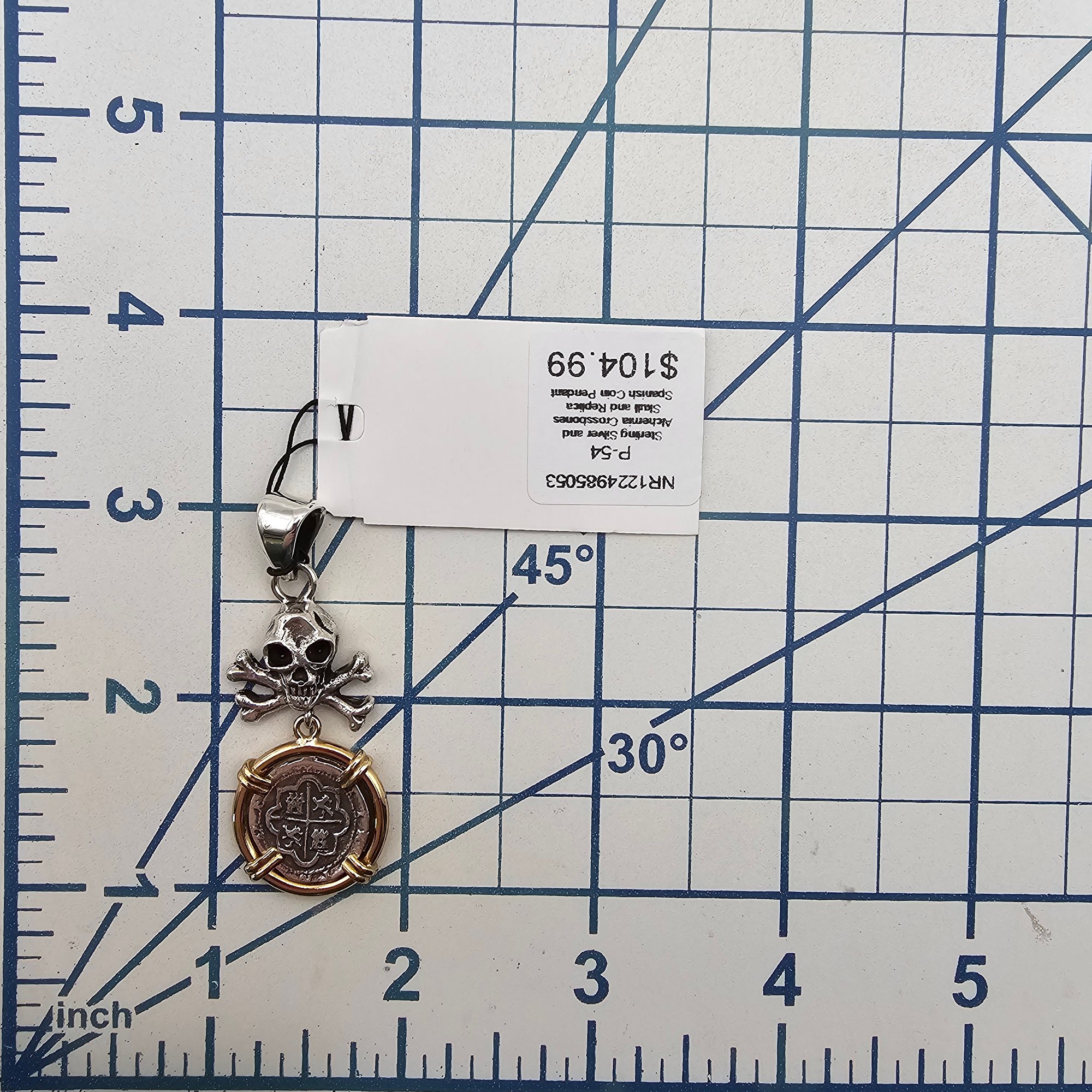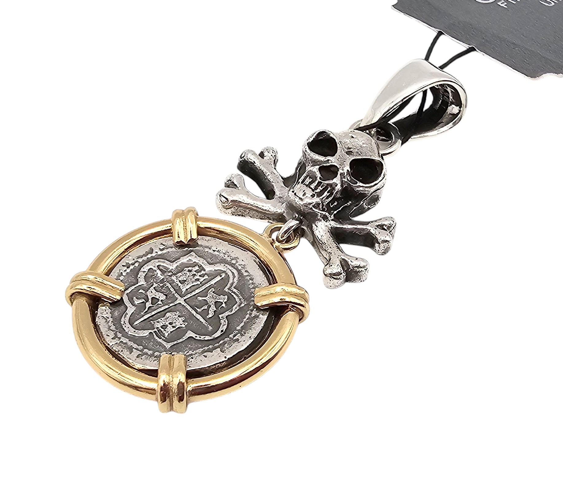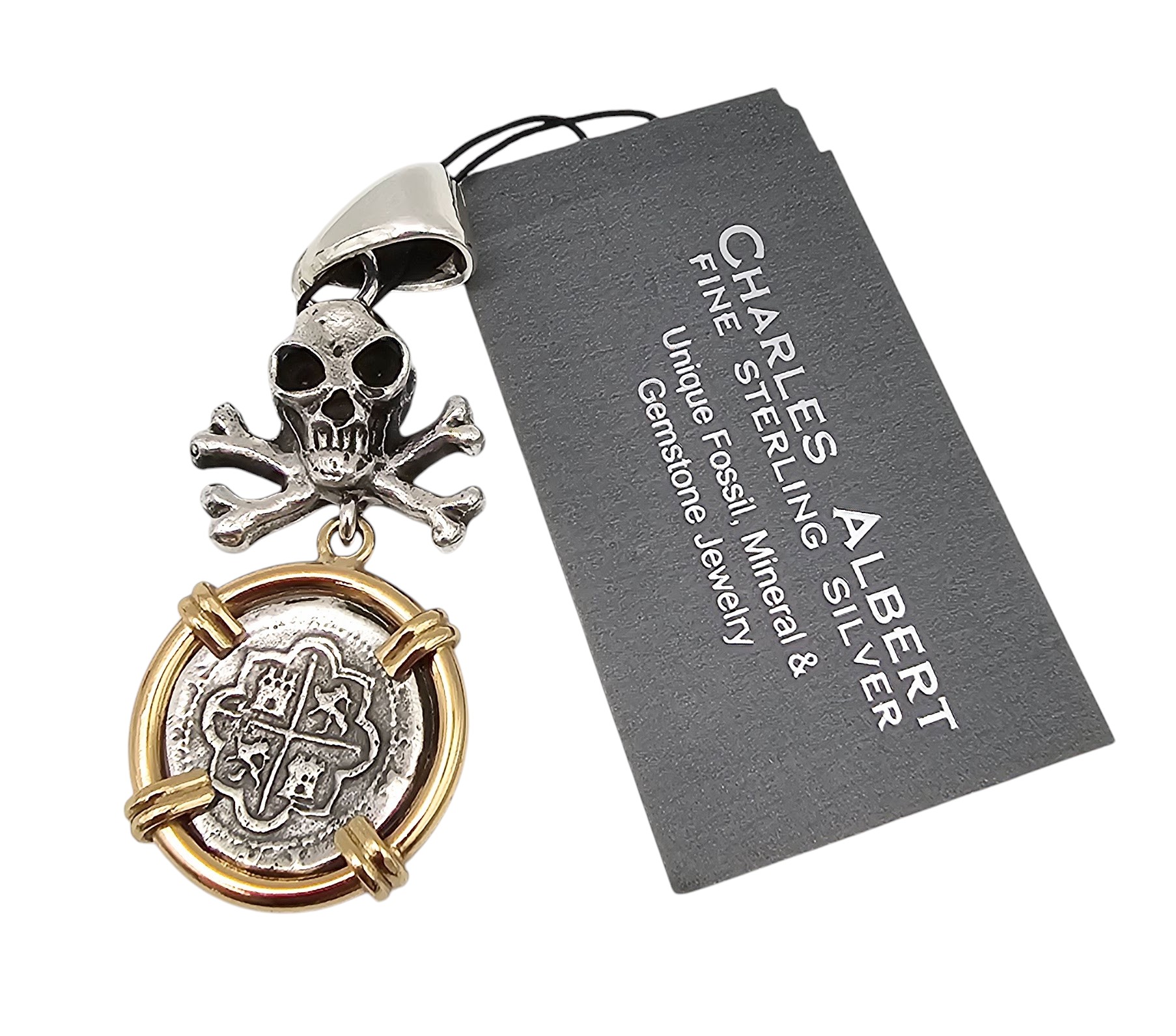 Charles Albert NWT Sterling Silver Alchemia Skull and Cros Bones replica Soanish Coin Pirate Pendant 9.6 G