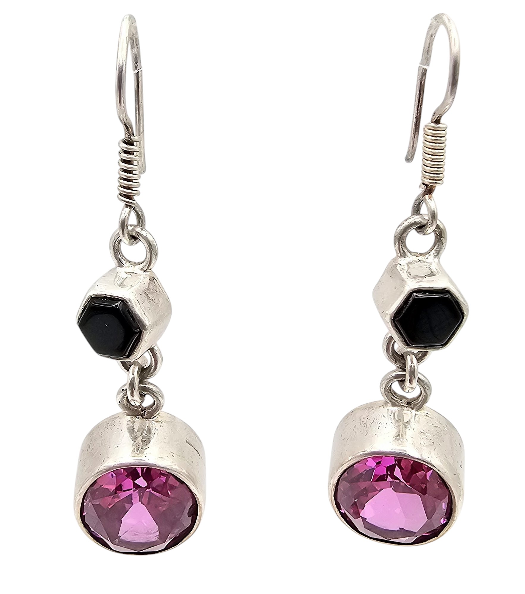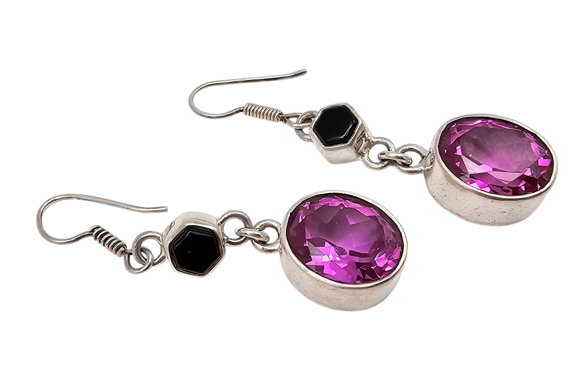 Charles Albert NWT onyx Synthetic Ruby Sterling Silver Drop Dangle Earrings 14.3 G
