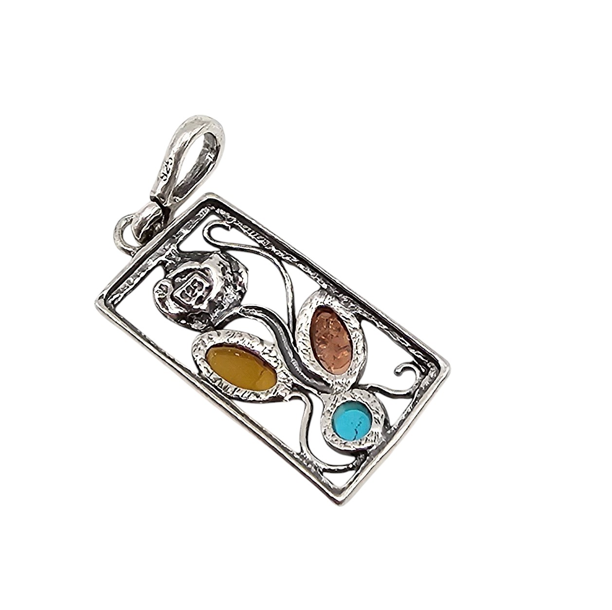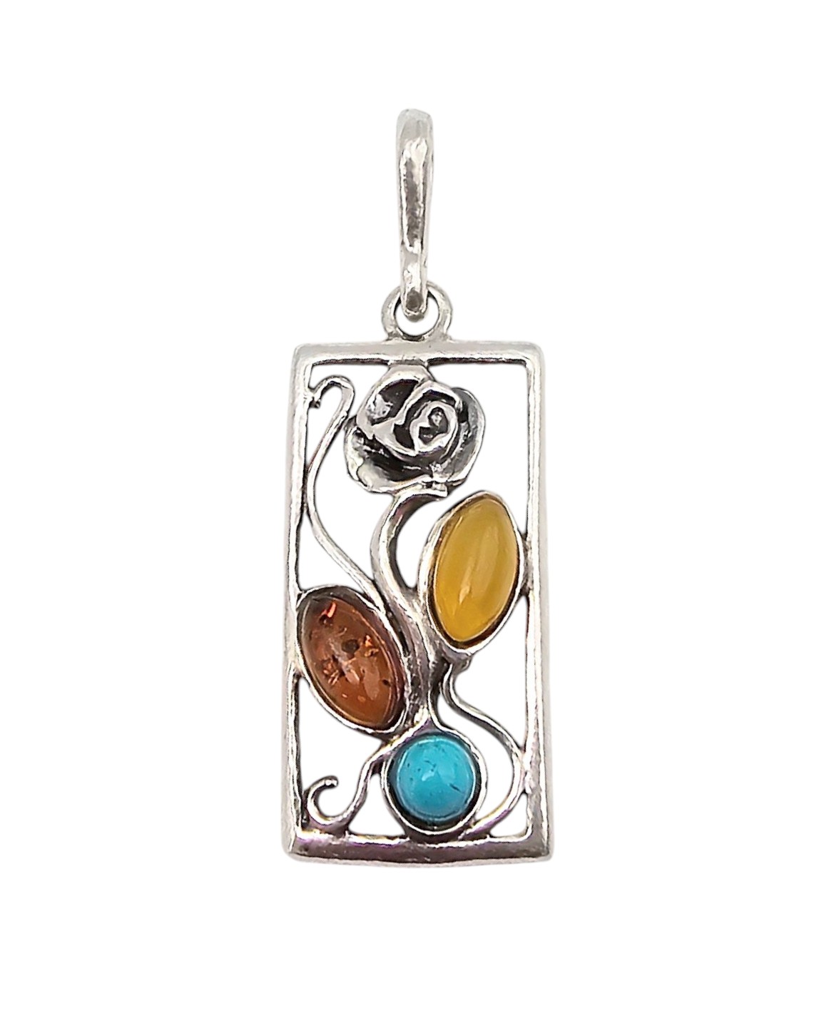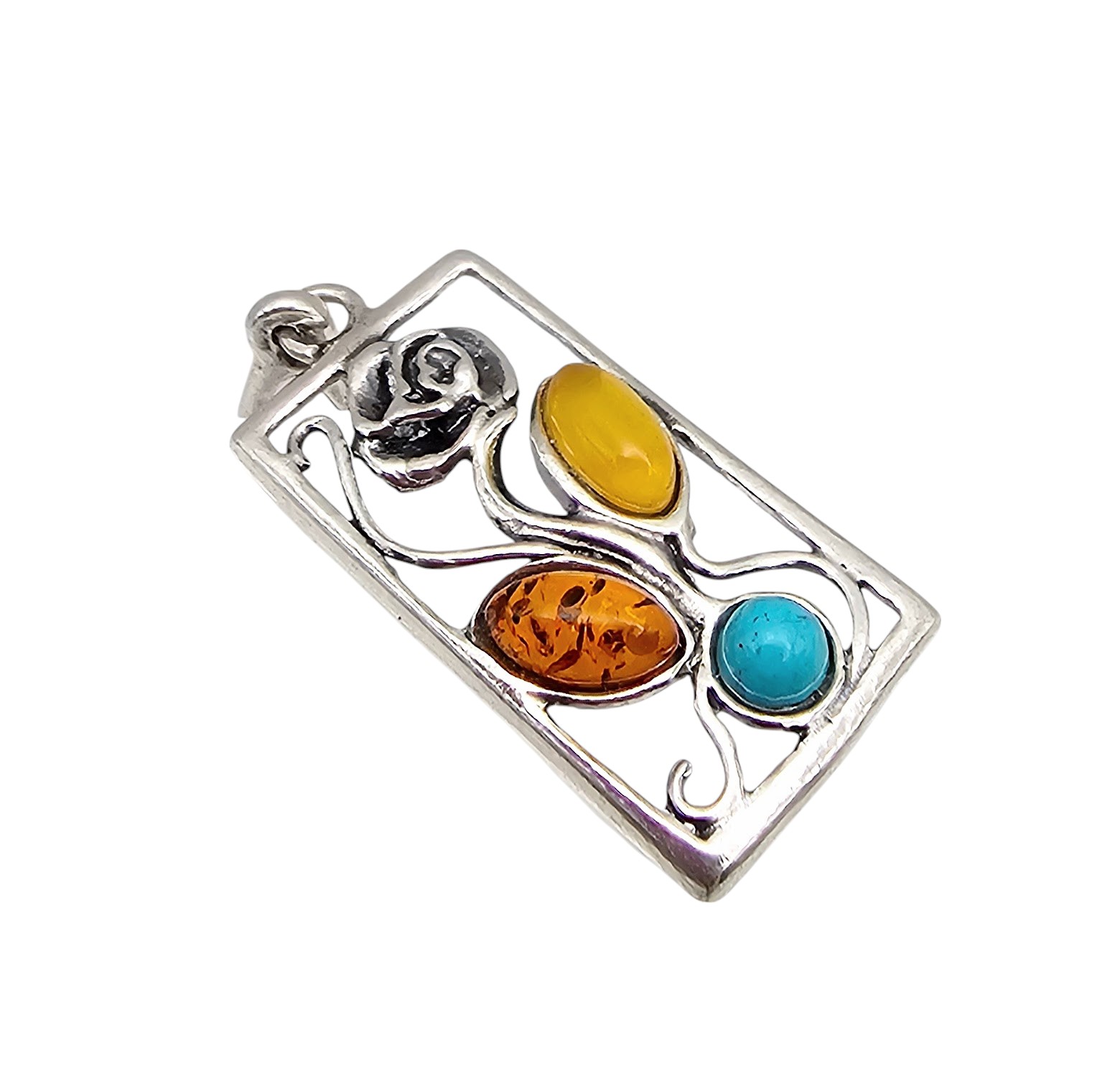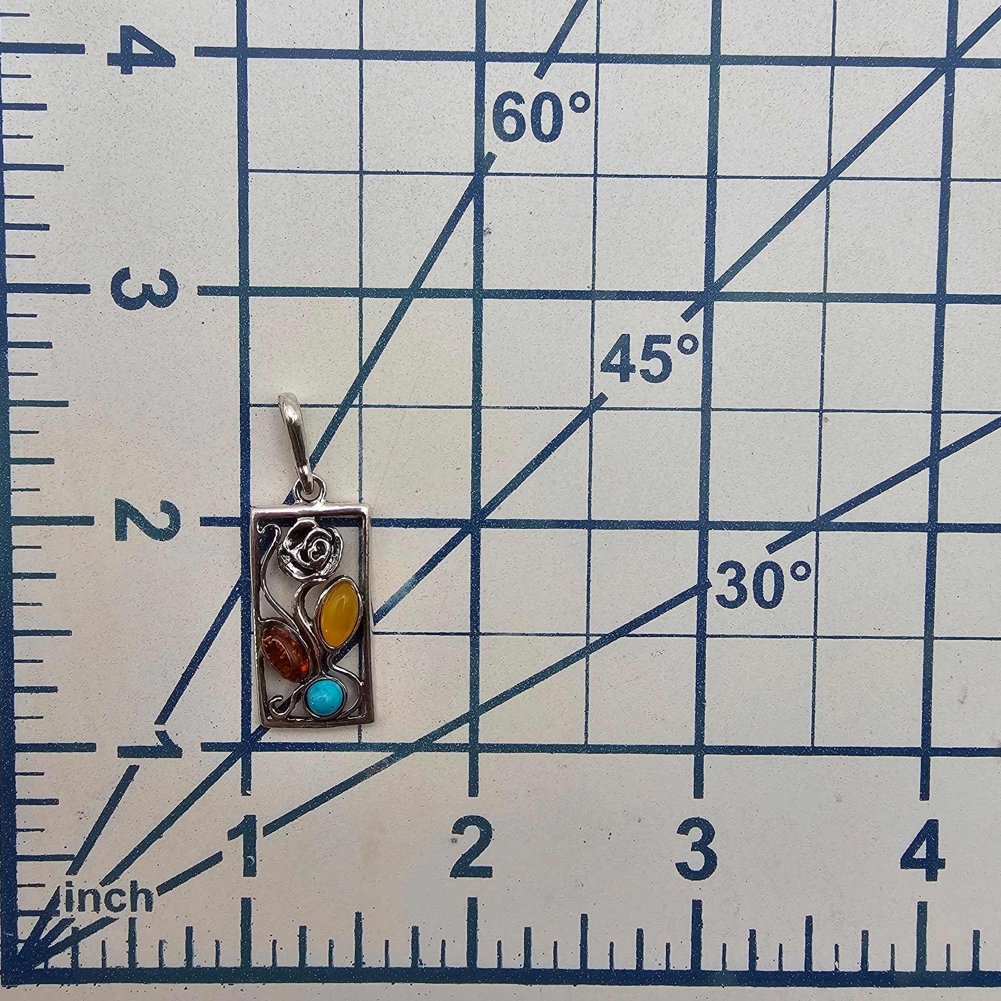 New Turquoise Amber Sterling Silver Pendant 2.7 G