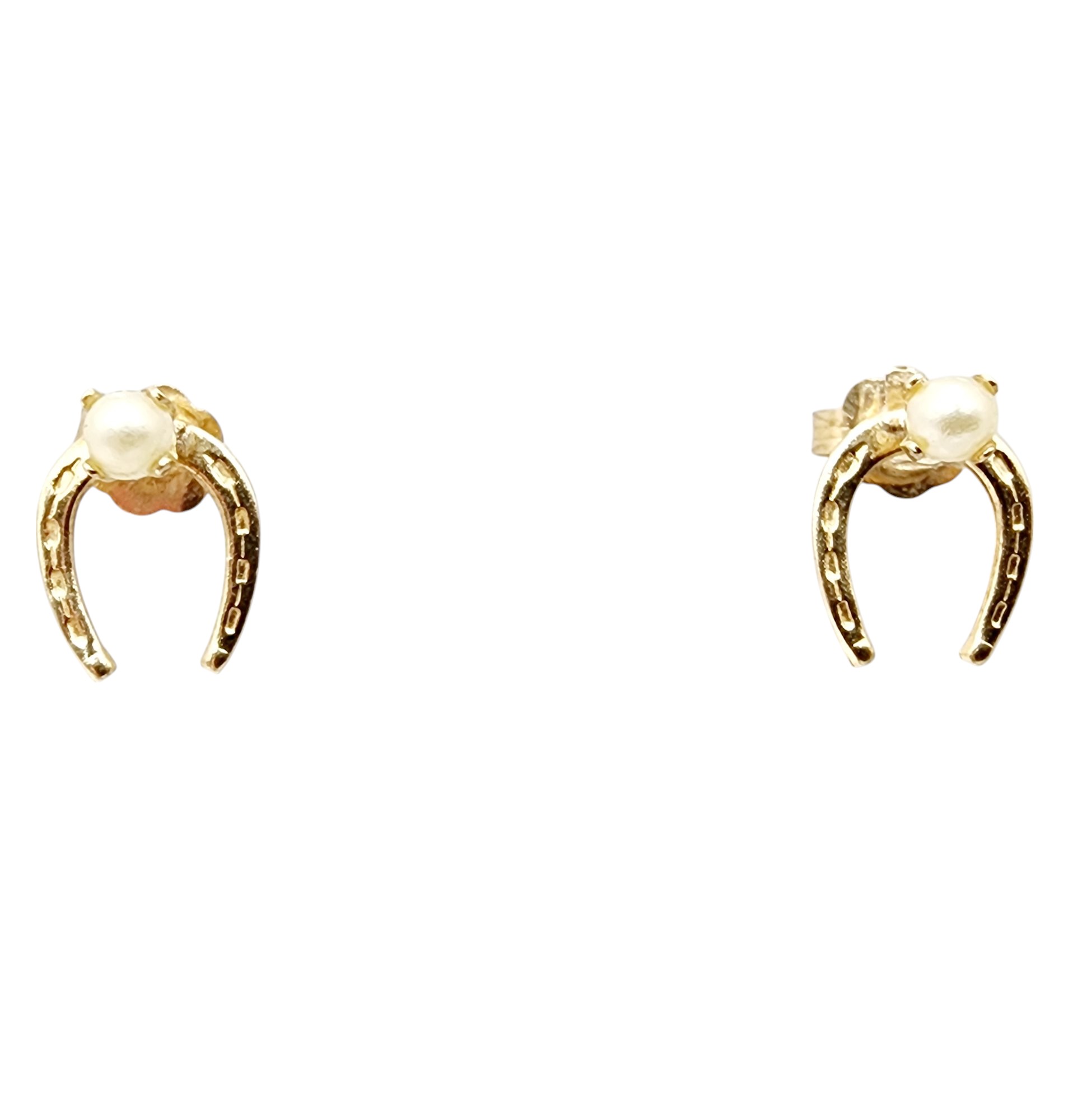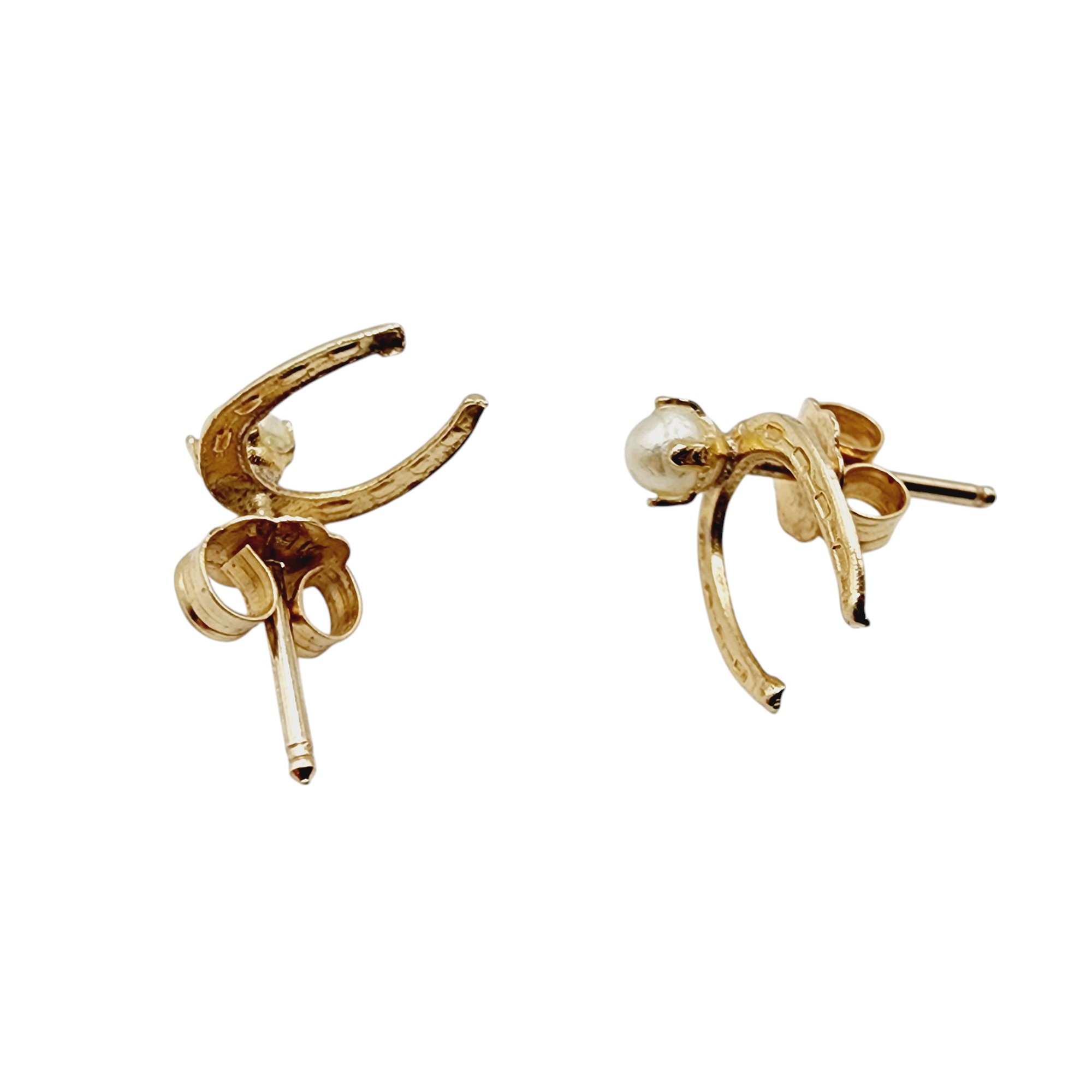 14k Gold Horseshoe Pearl Stud Earrings (w/backs) .5g