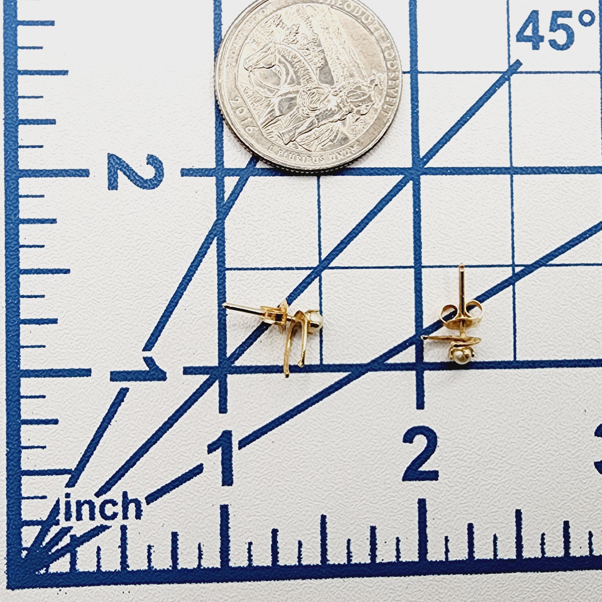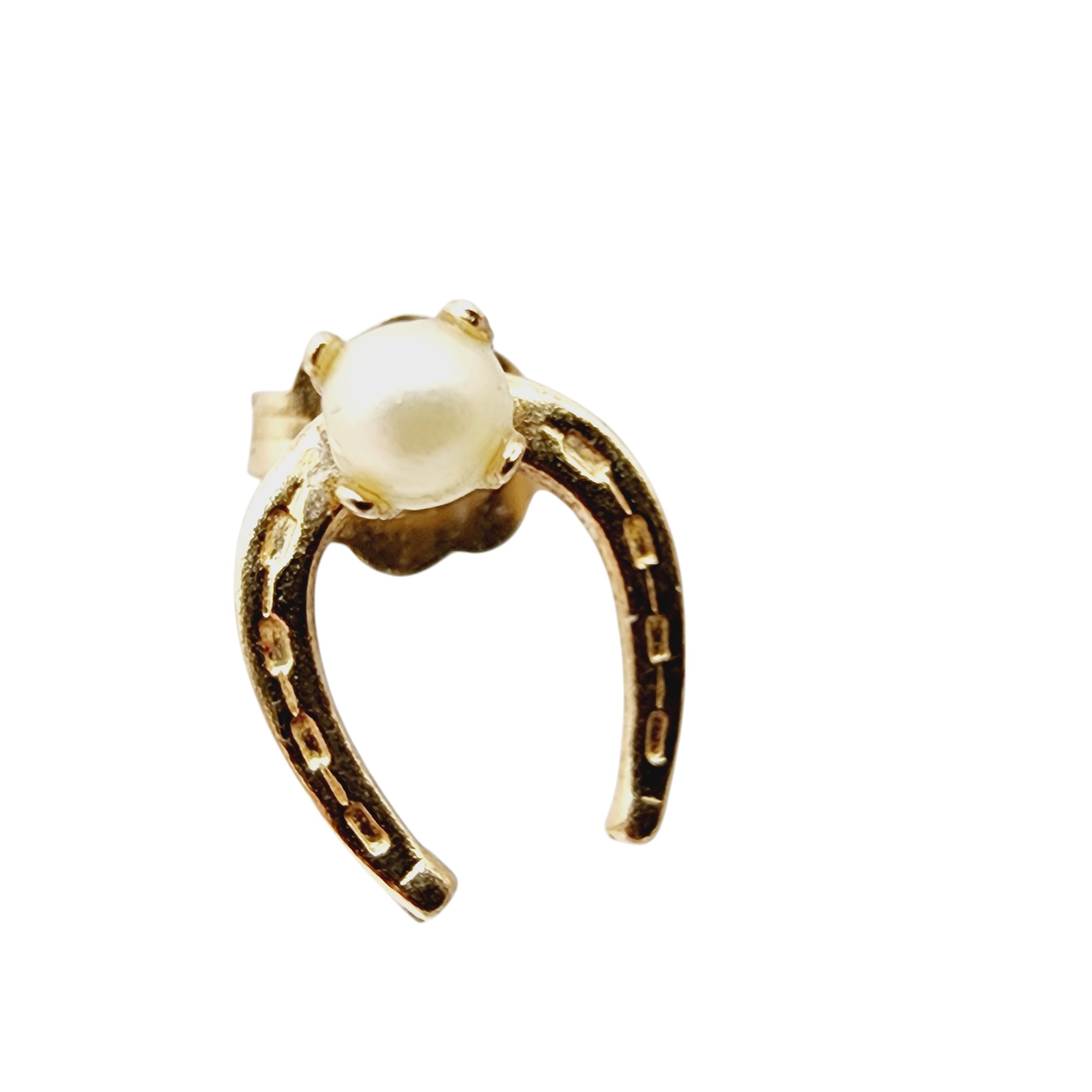14k Gold Horseshoe Pearl Stud Earrings .5g