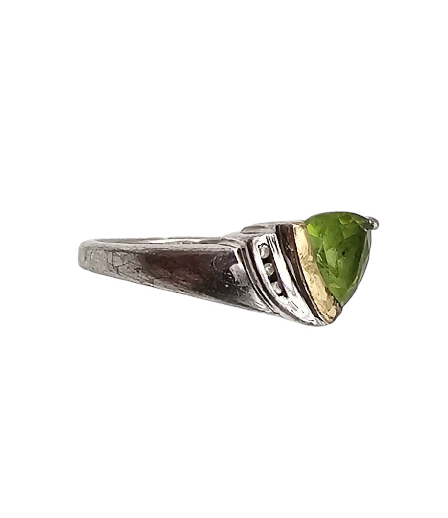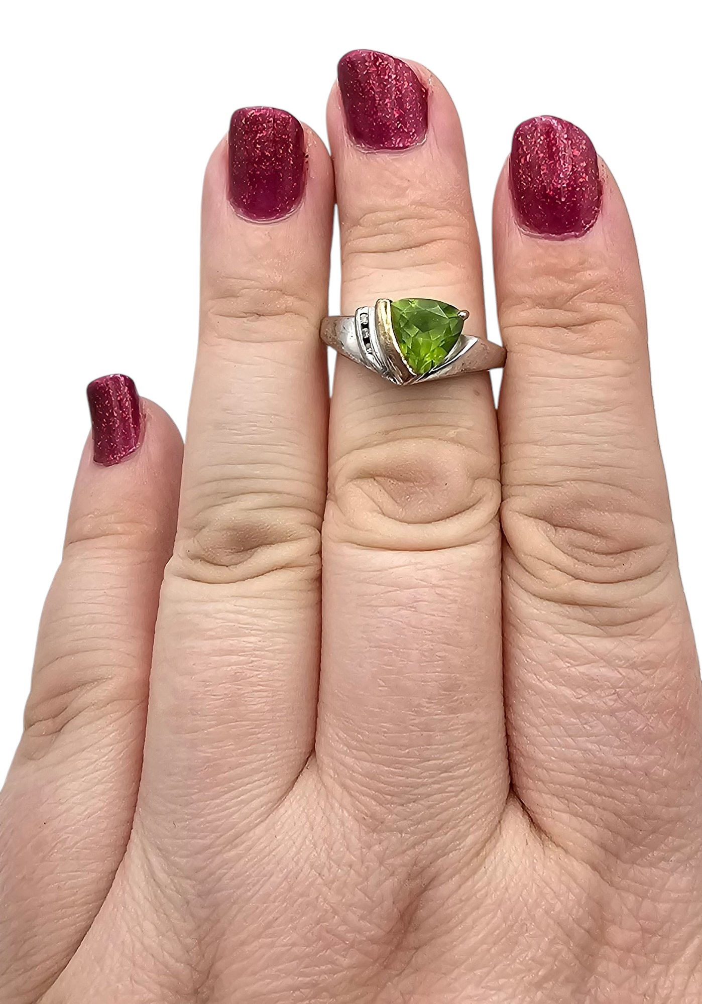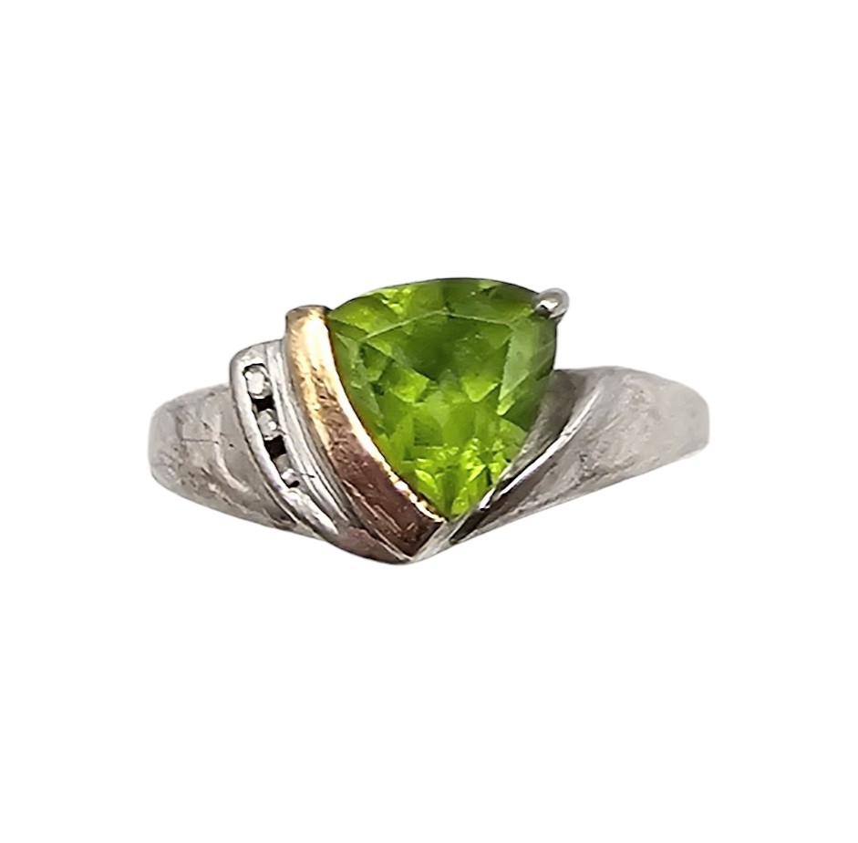 AV Peridot 14K Gold Sterling Silver Cocktail Ring Size 6.75 5.5 G
