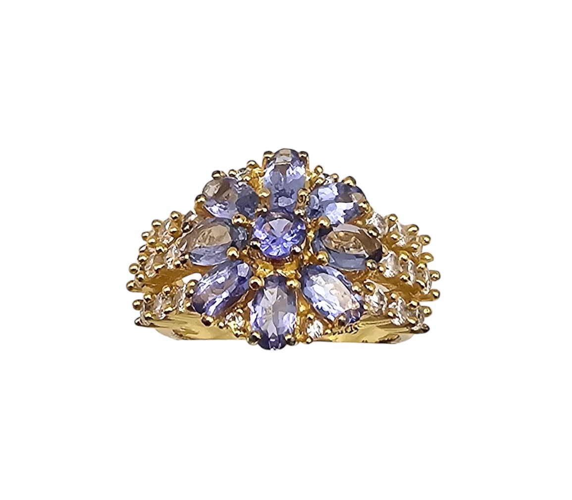 Stauer Rhinestone Gold Over Sterling Silver Cocktail Ring Size 6.75 4.4 G