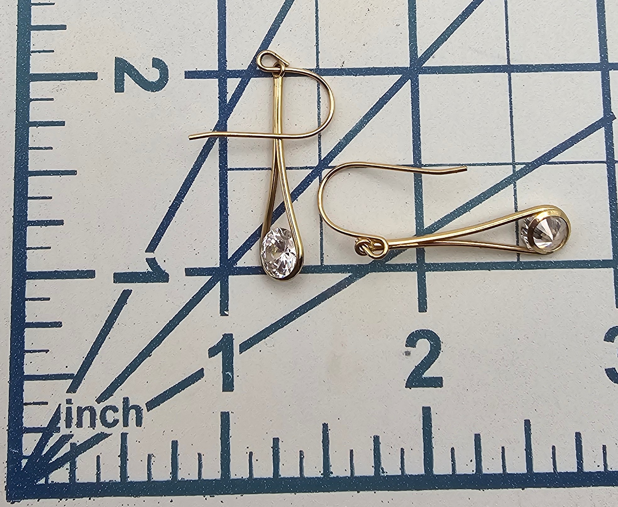 JCM clear stone 14K Gold Drop Dangle Earrings 1.5 g