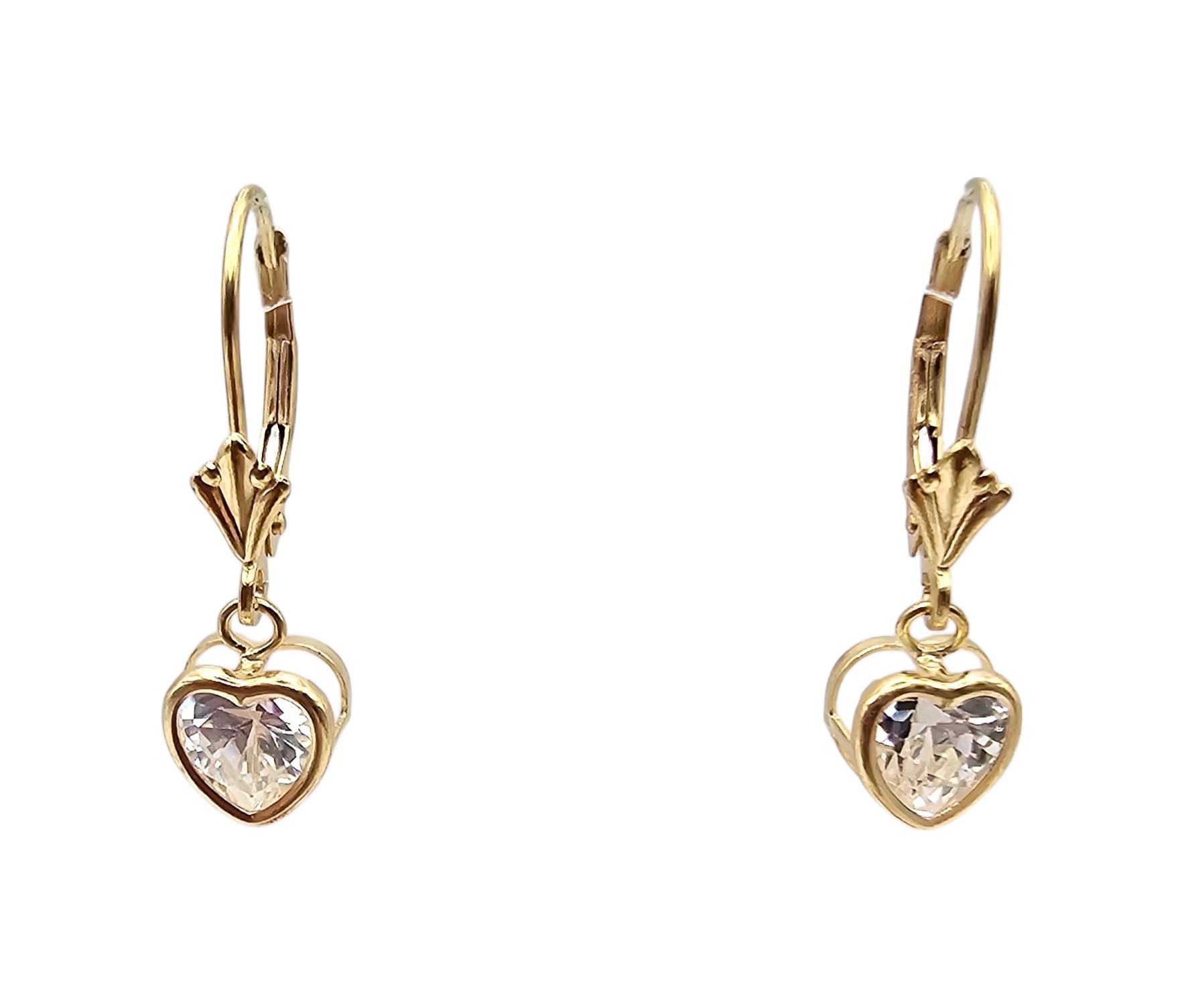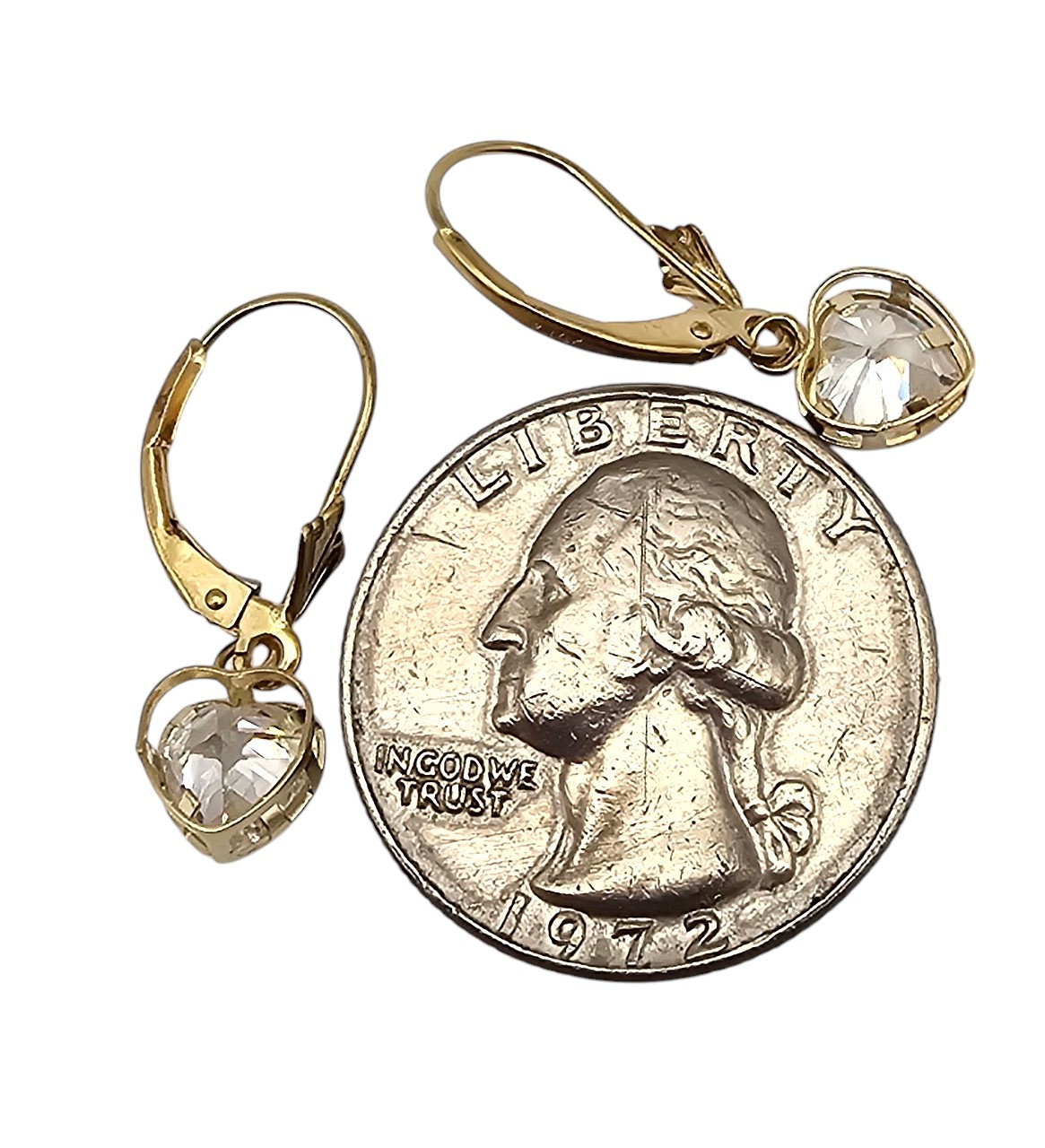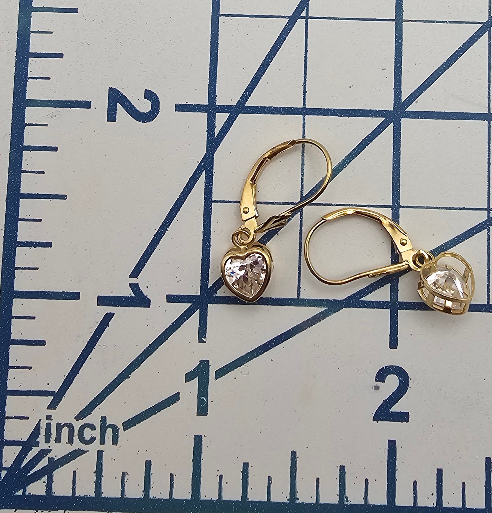 P Clear Stone 14K Gold Drop Dangle Heart Earrings 1.7 g