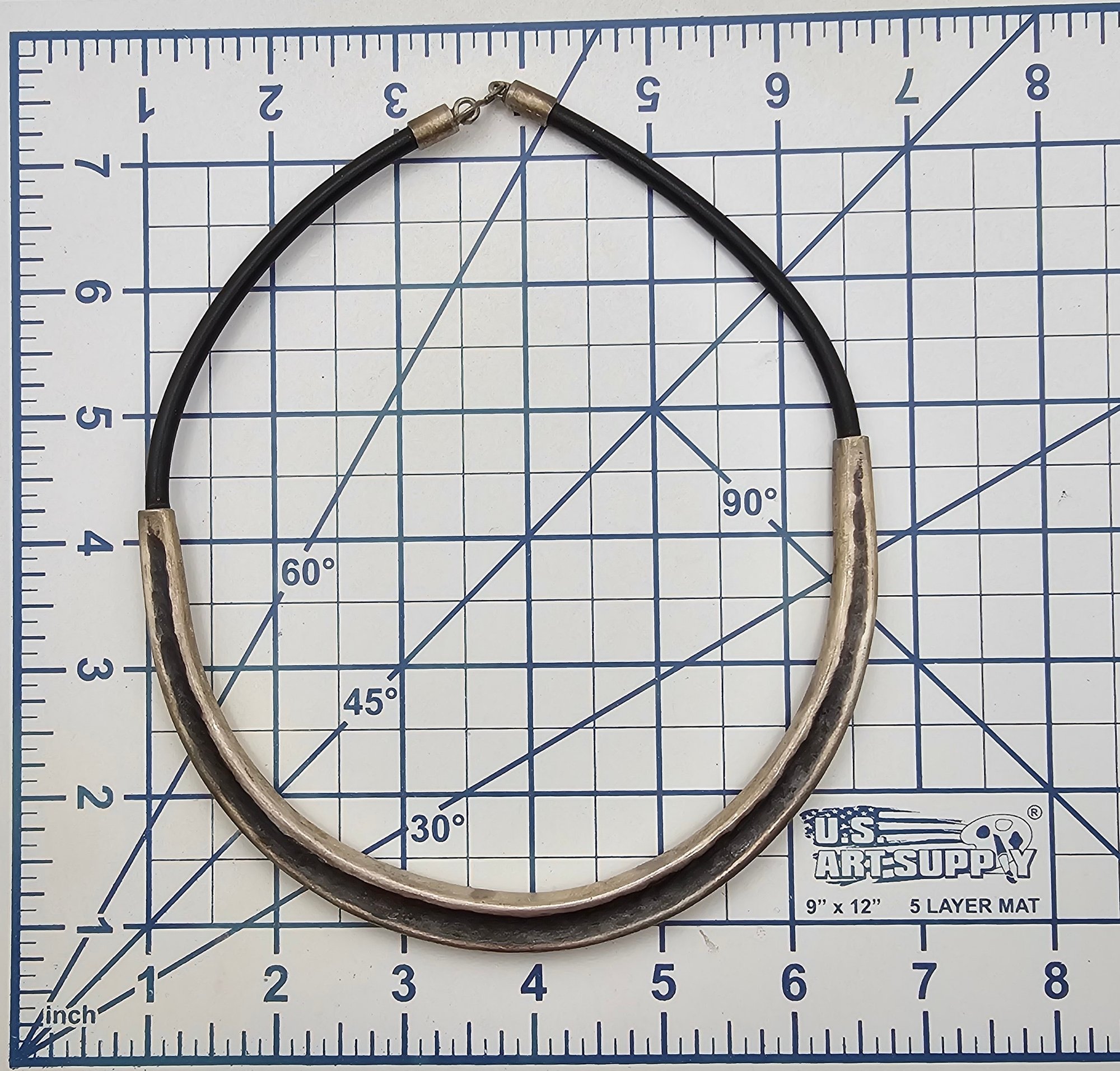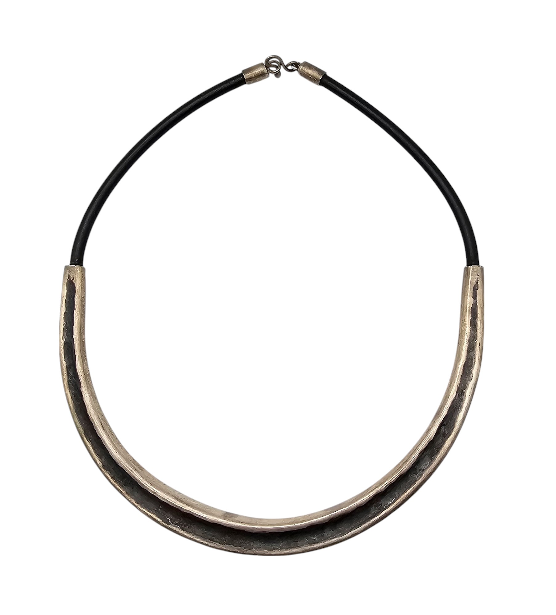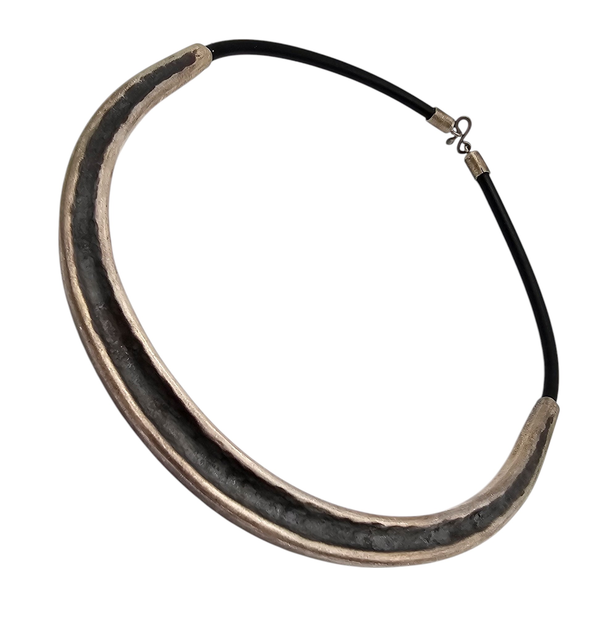 EM Leather Sterling Silver Modernist Necklace 53.8 G