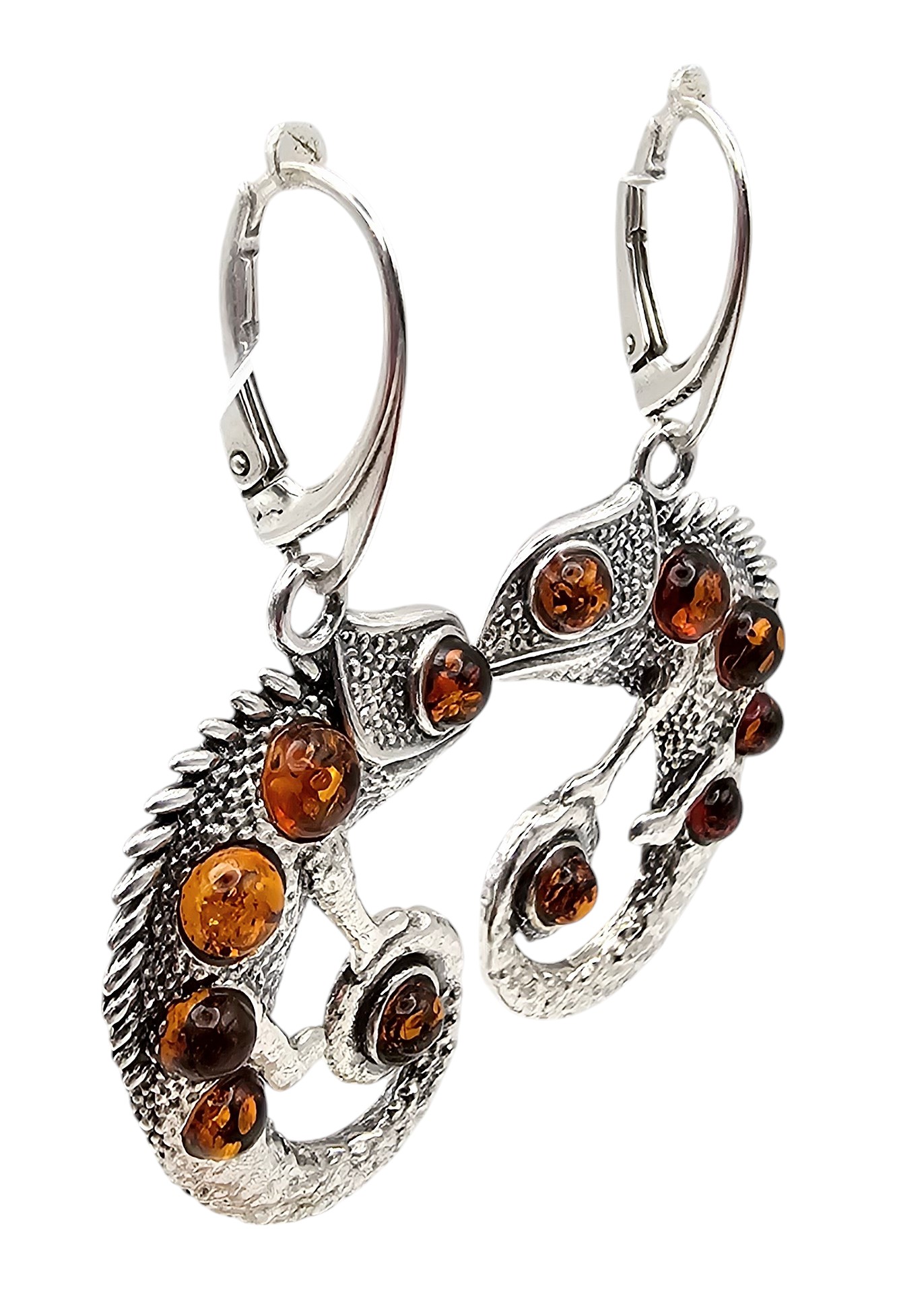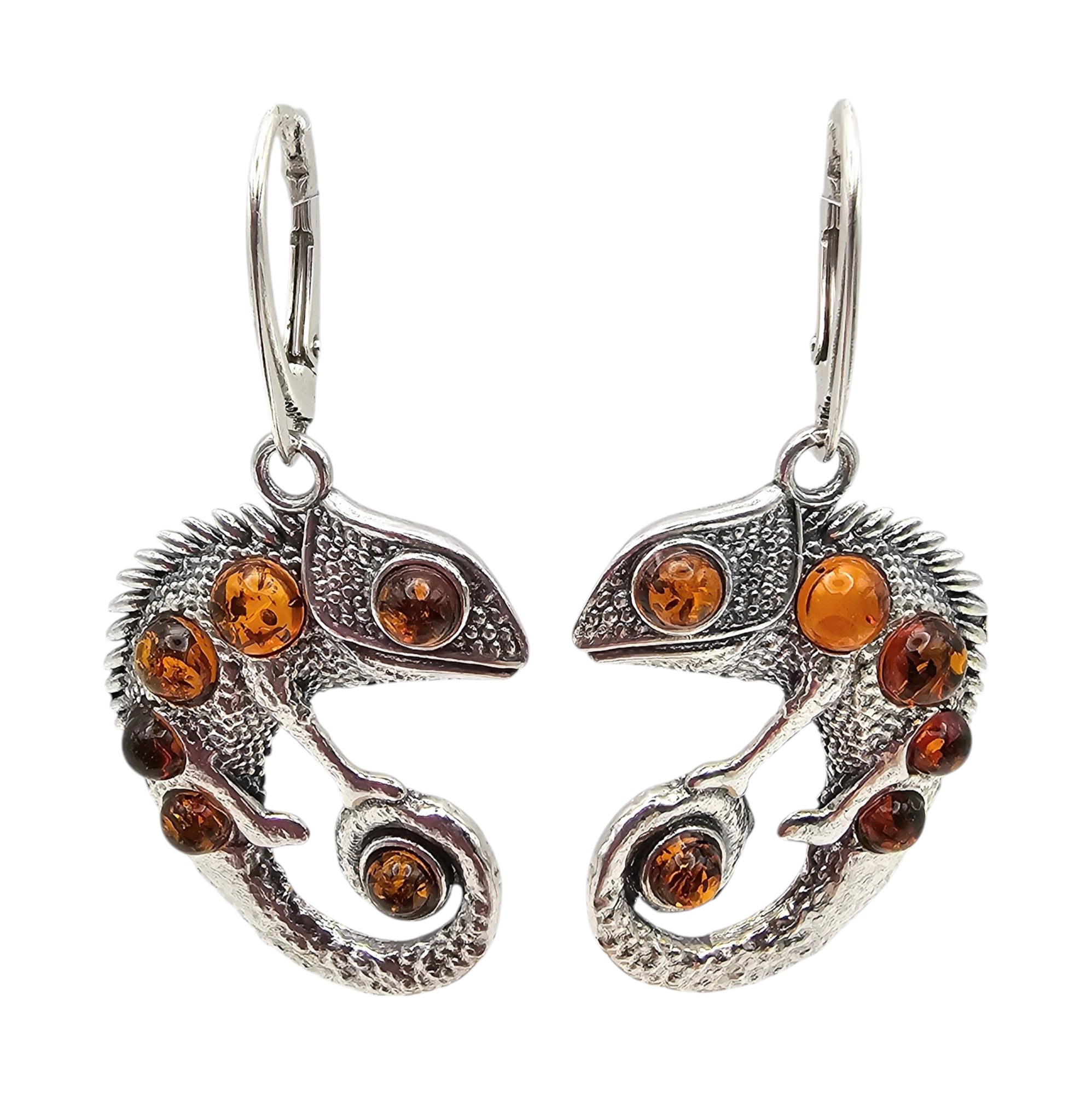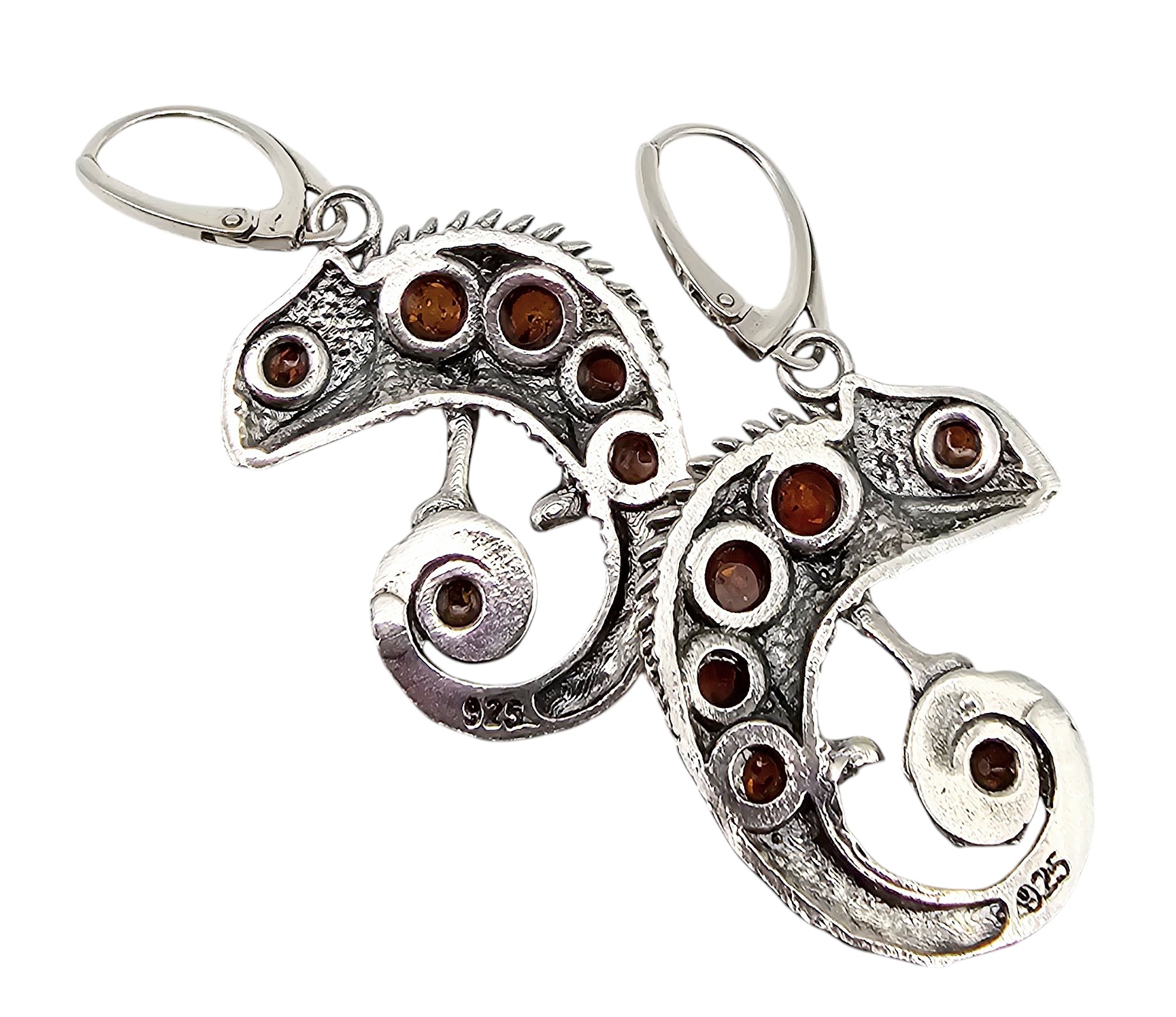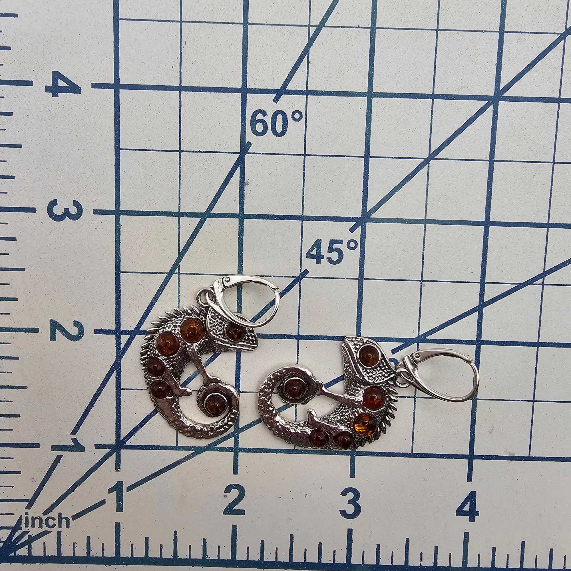 New Amber Sterling Silver Chameleon Drop Dangle Earrings 10.3 G