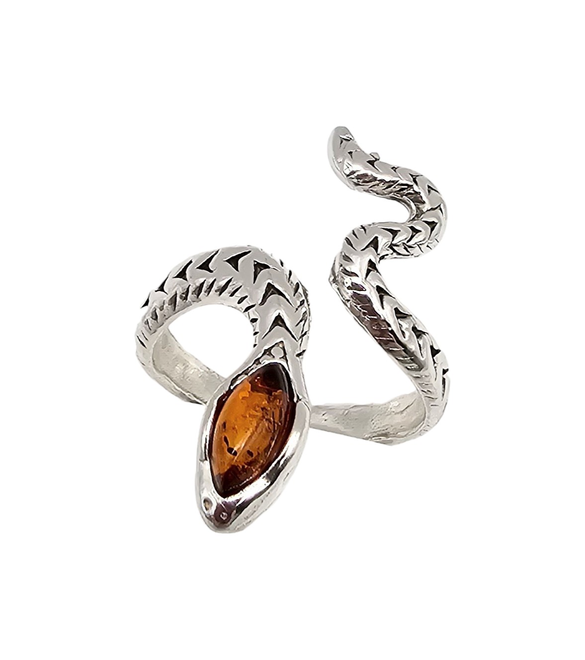 New Amber Sterling Silver Snake open Ring size 7.25 4.2 G