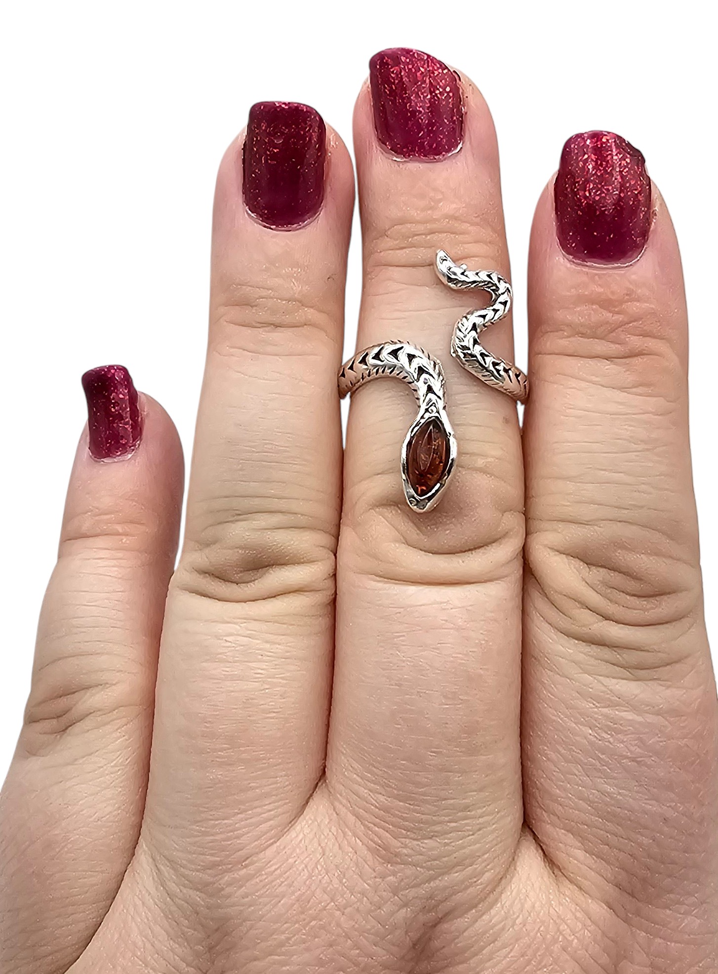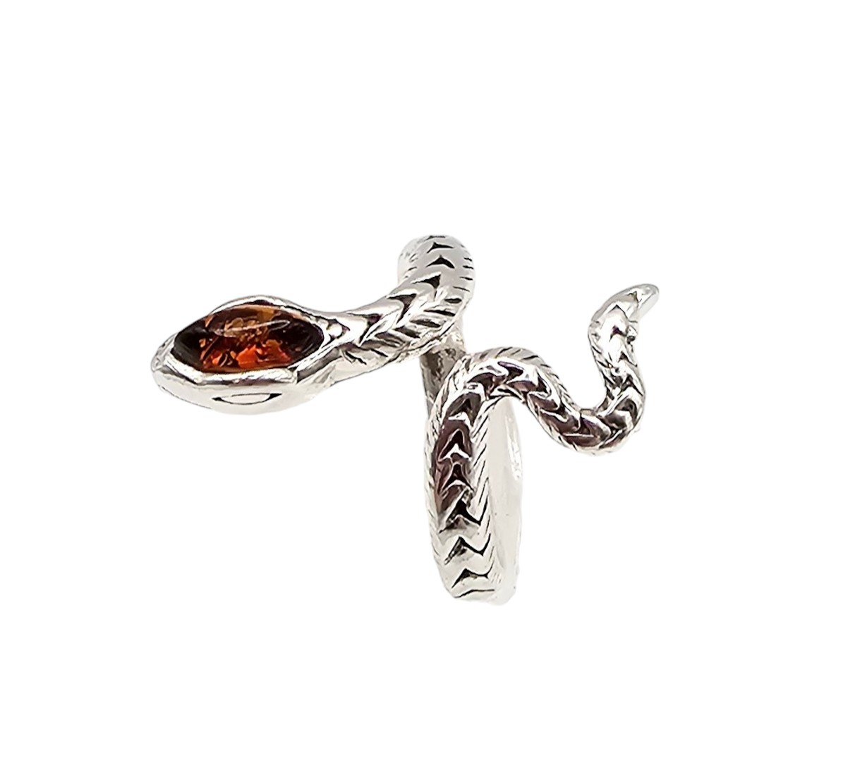 New Amber Sterling Silver Snake Open Ring Size 7.25 4.2 G