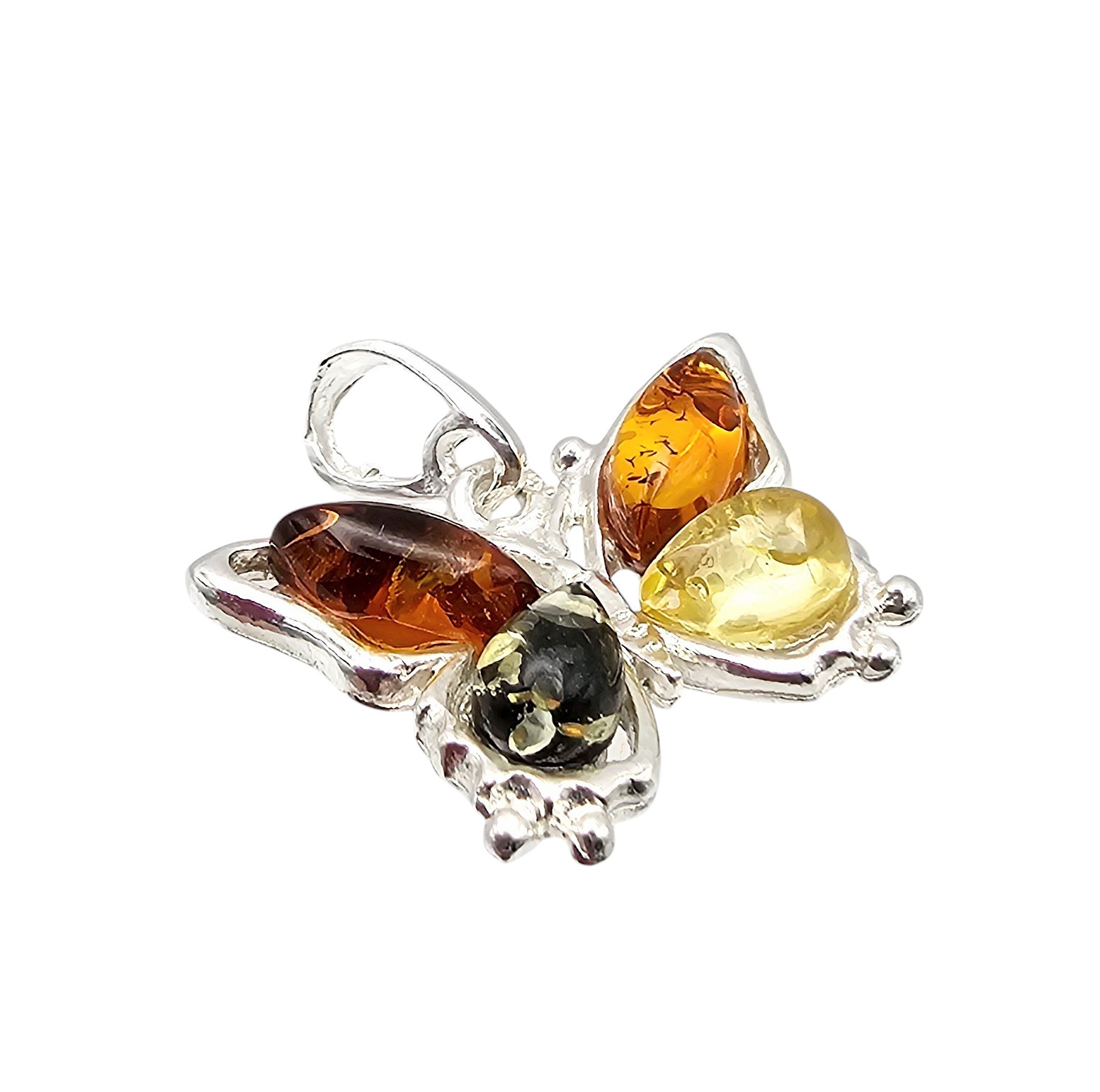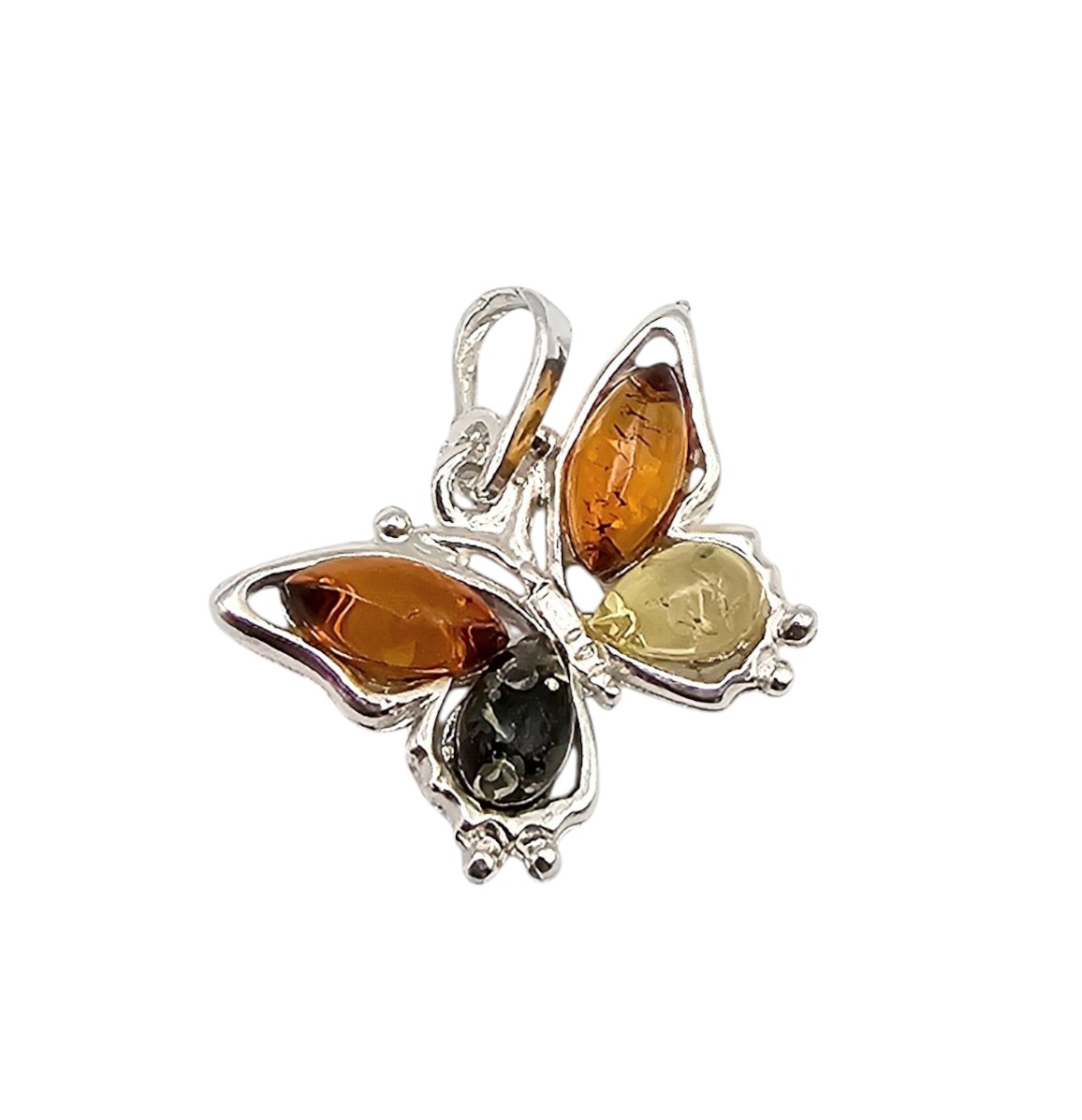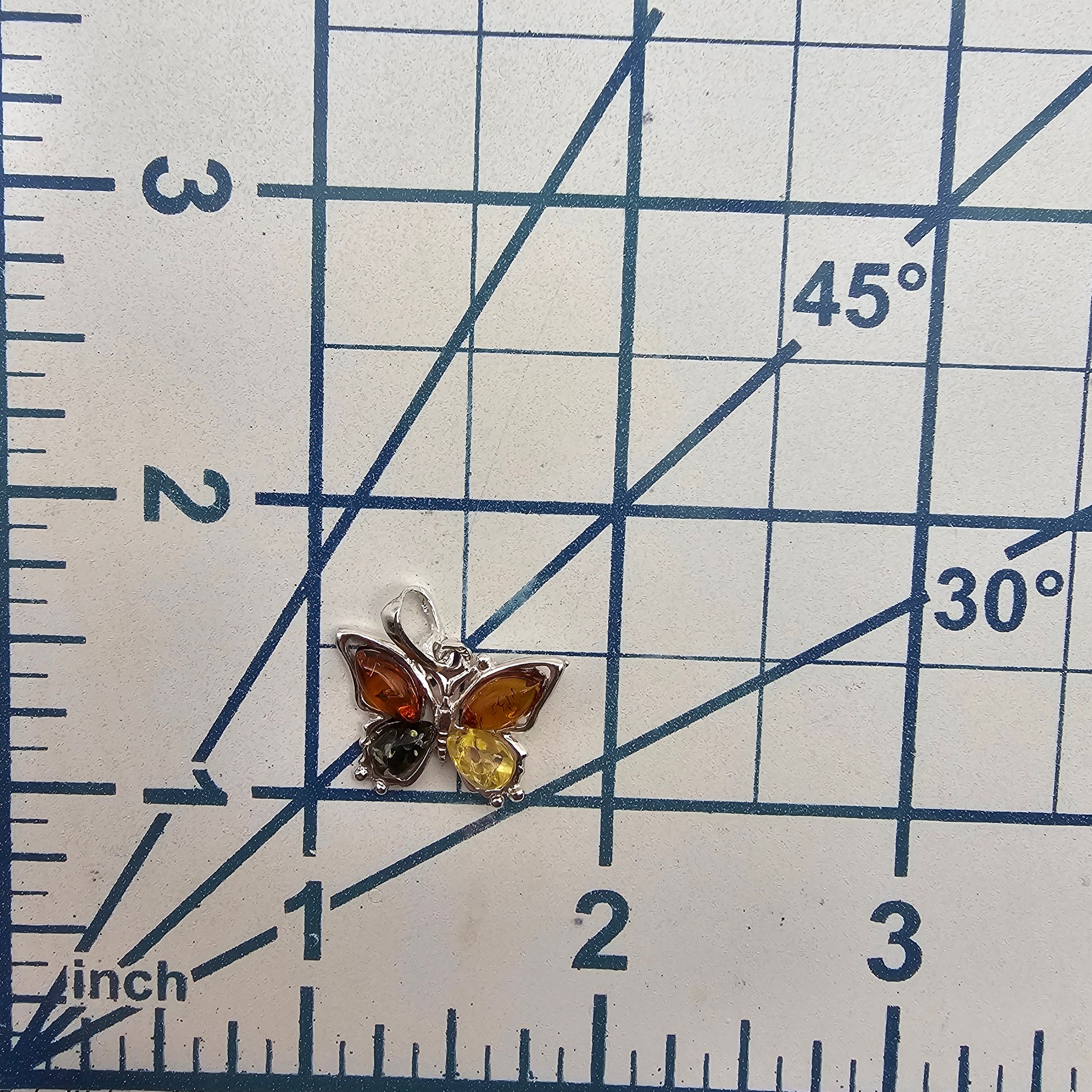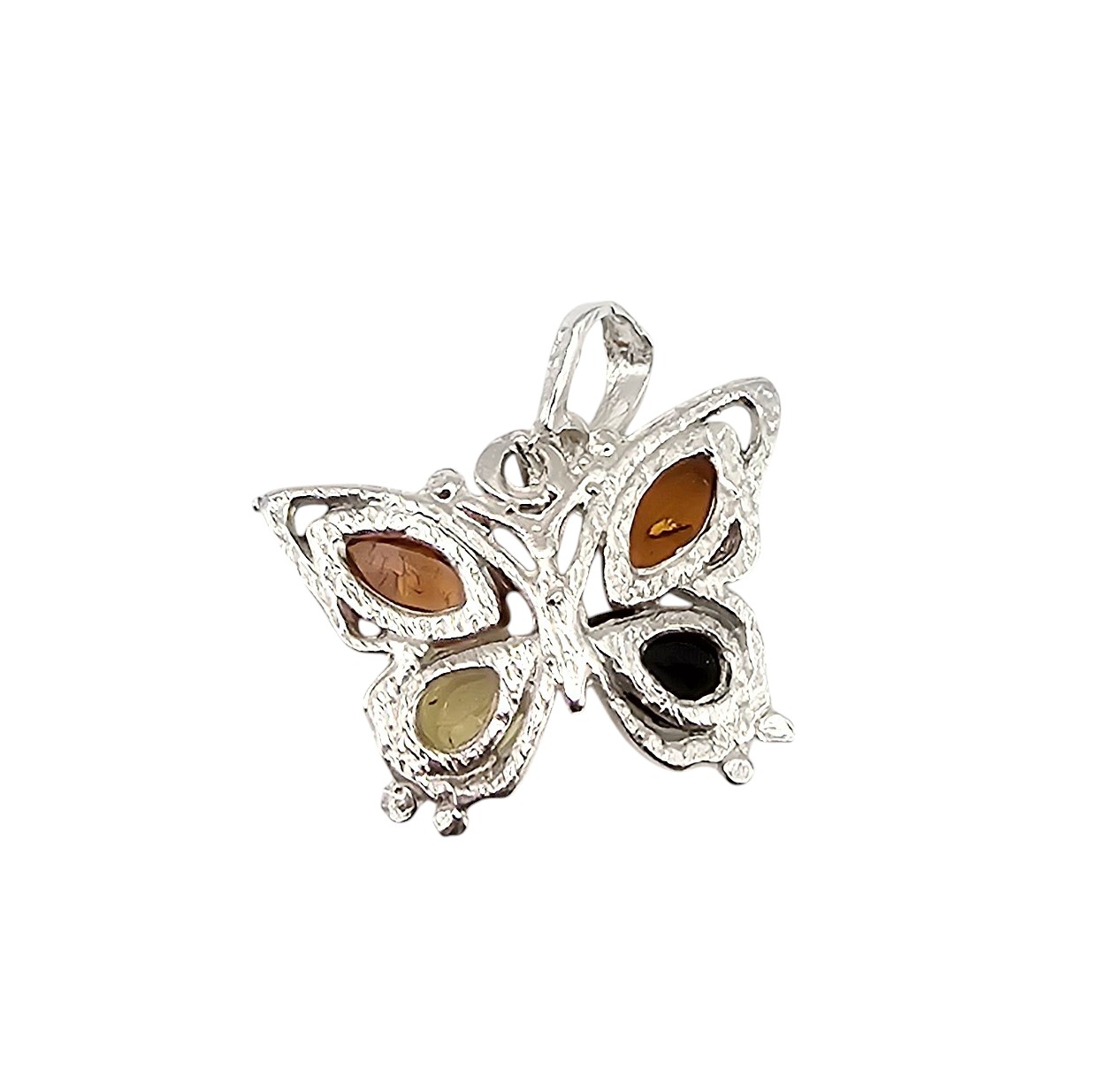 New Amber Sterling Silver Butterfly Pendant 1.6 G