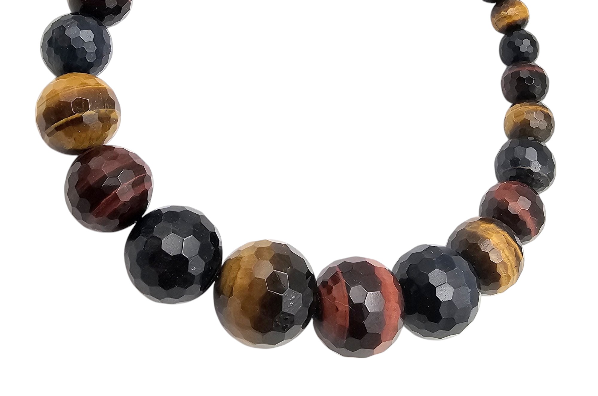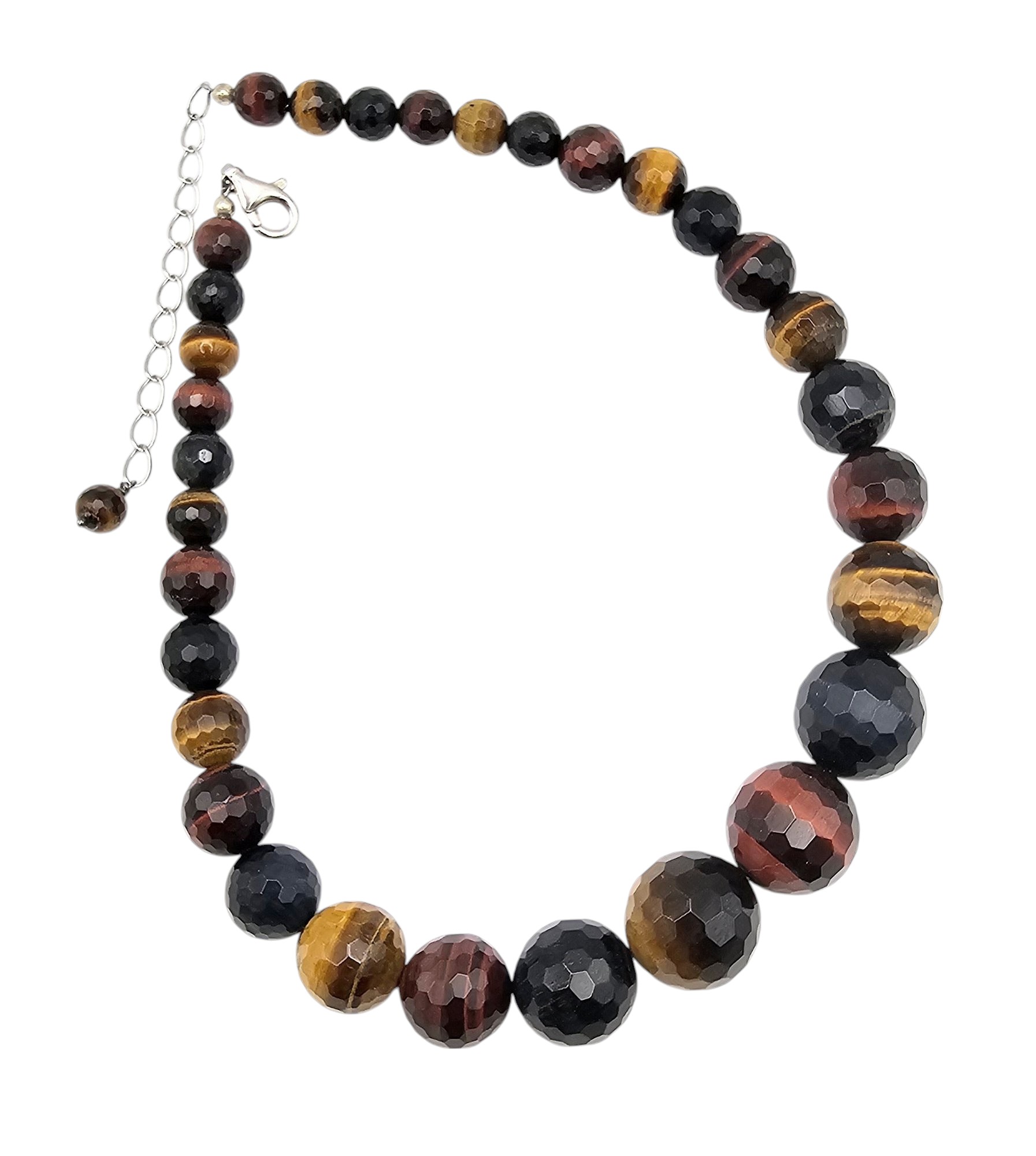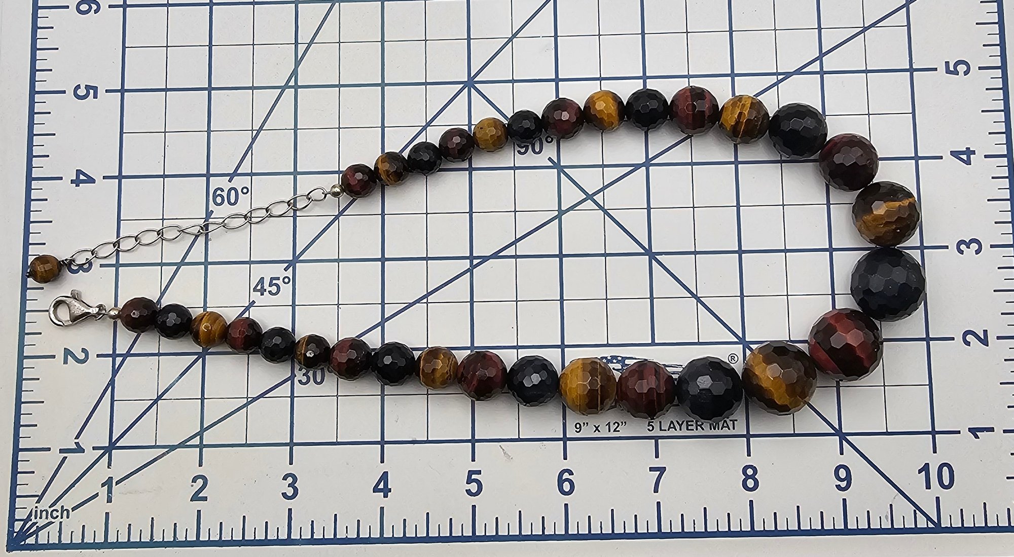 Signed K Red Blue Brown Tiger’s Eye Sterling Silver Necklace 120.7 G