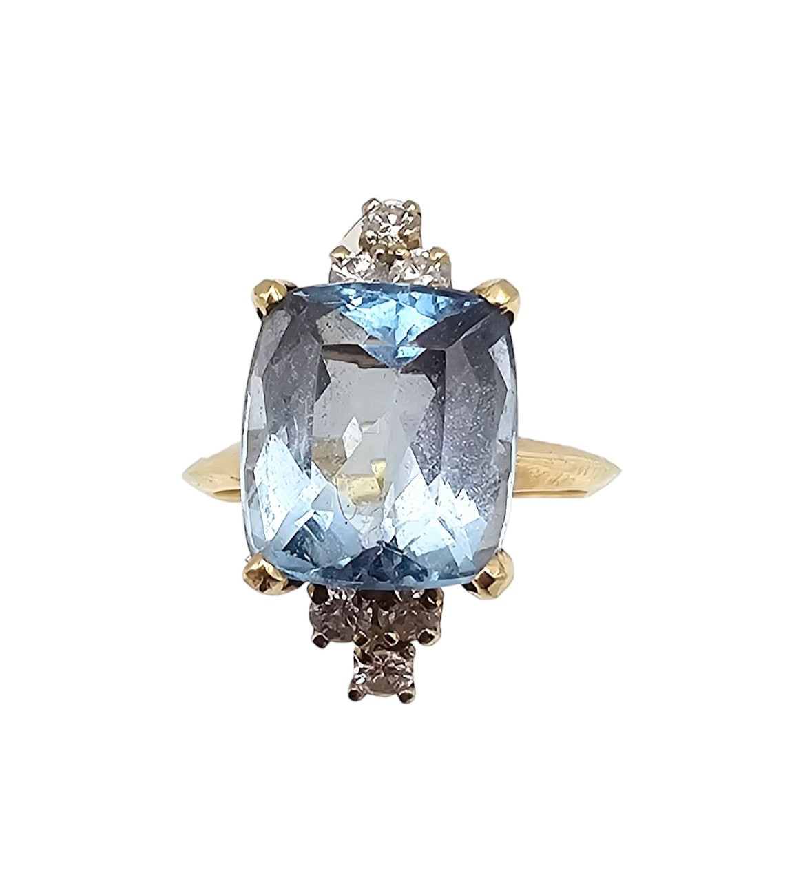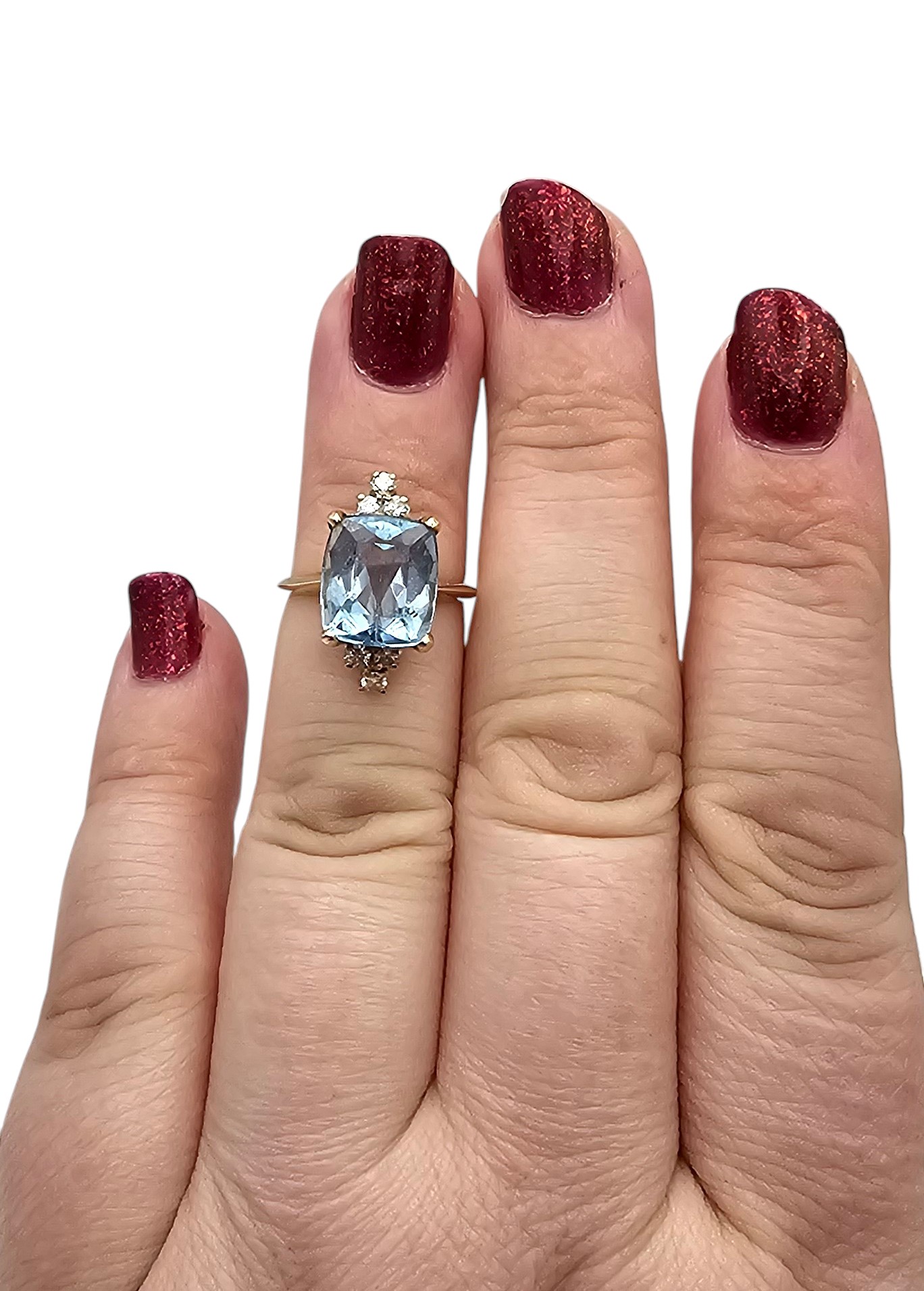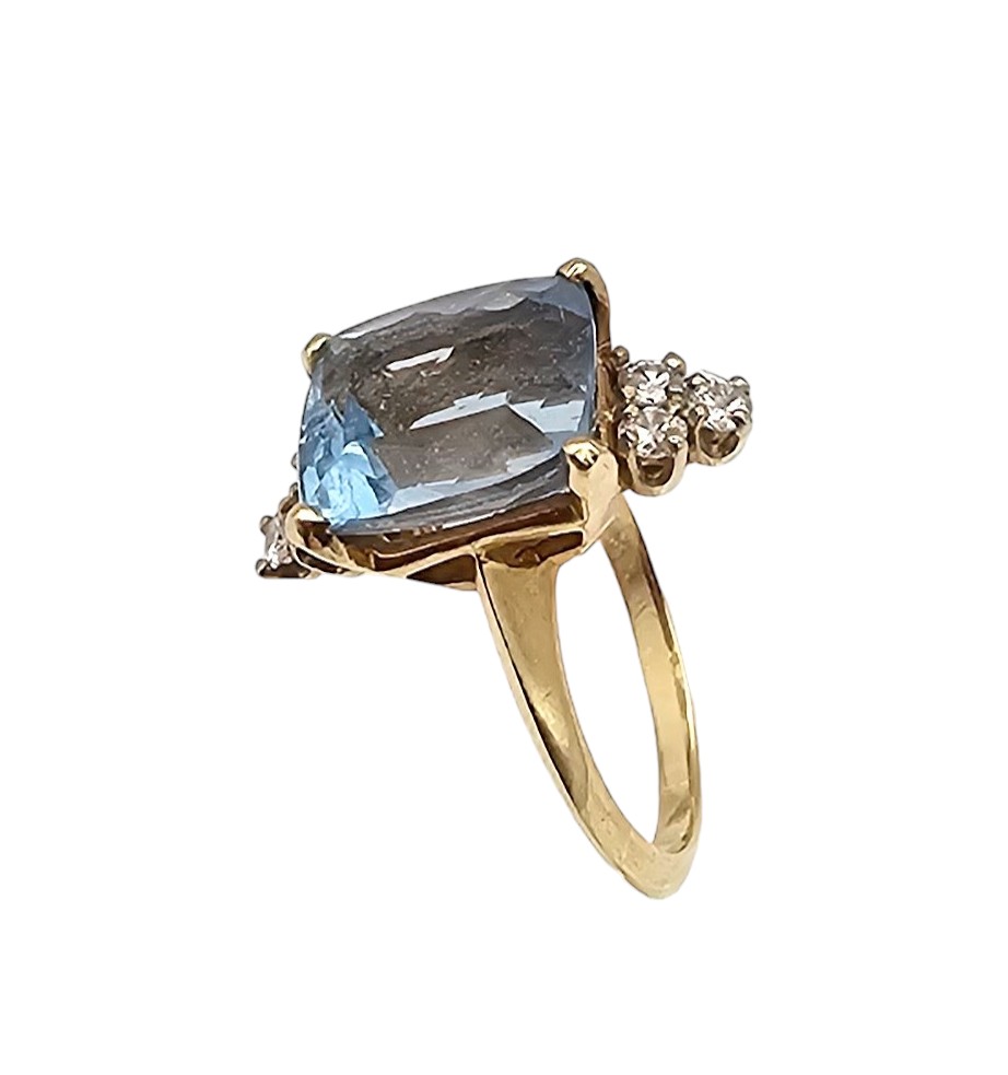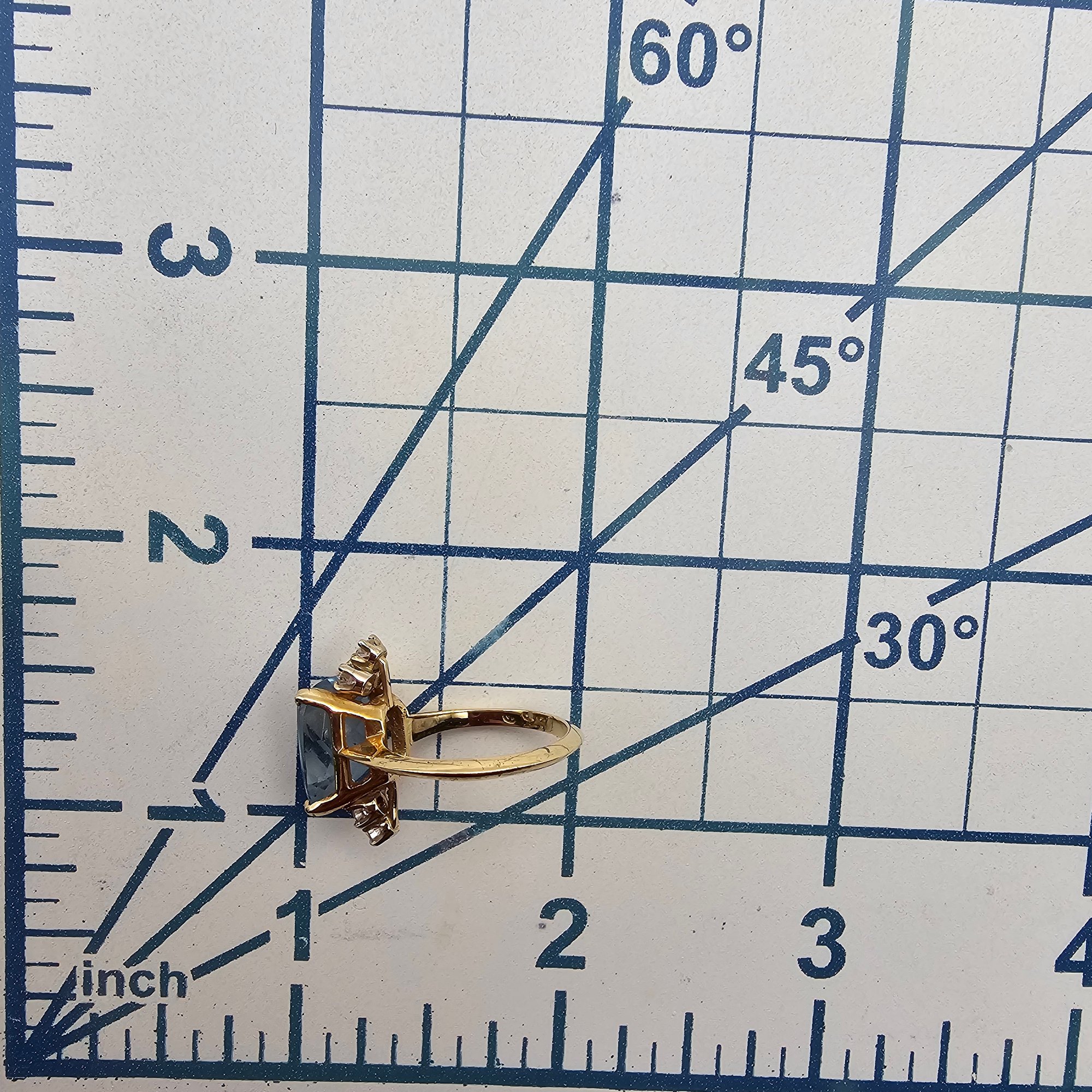 Blue Topaz Diamond 14K Gold Cocktail Ring Size 7 6 G TCW Topaz 11.8 diamond 8 MM