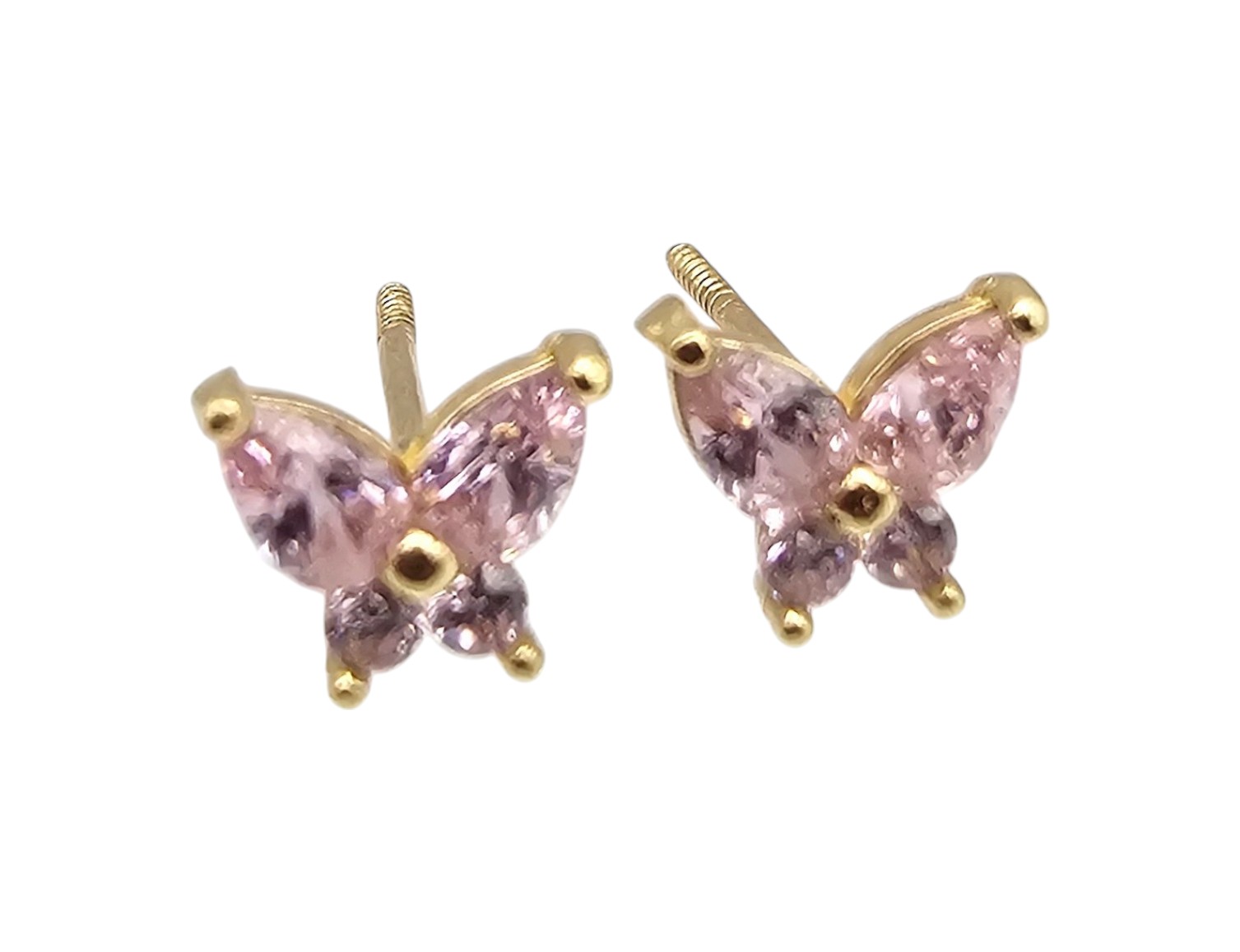 Cubic Zirconia 14K Gold Butterfly Earrings 0.4 G