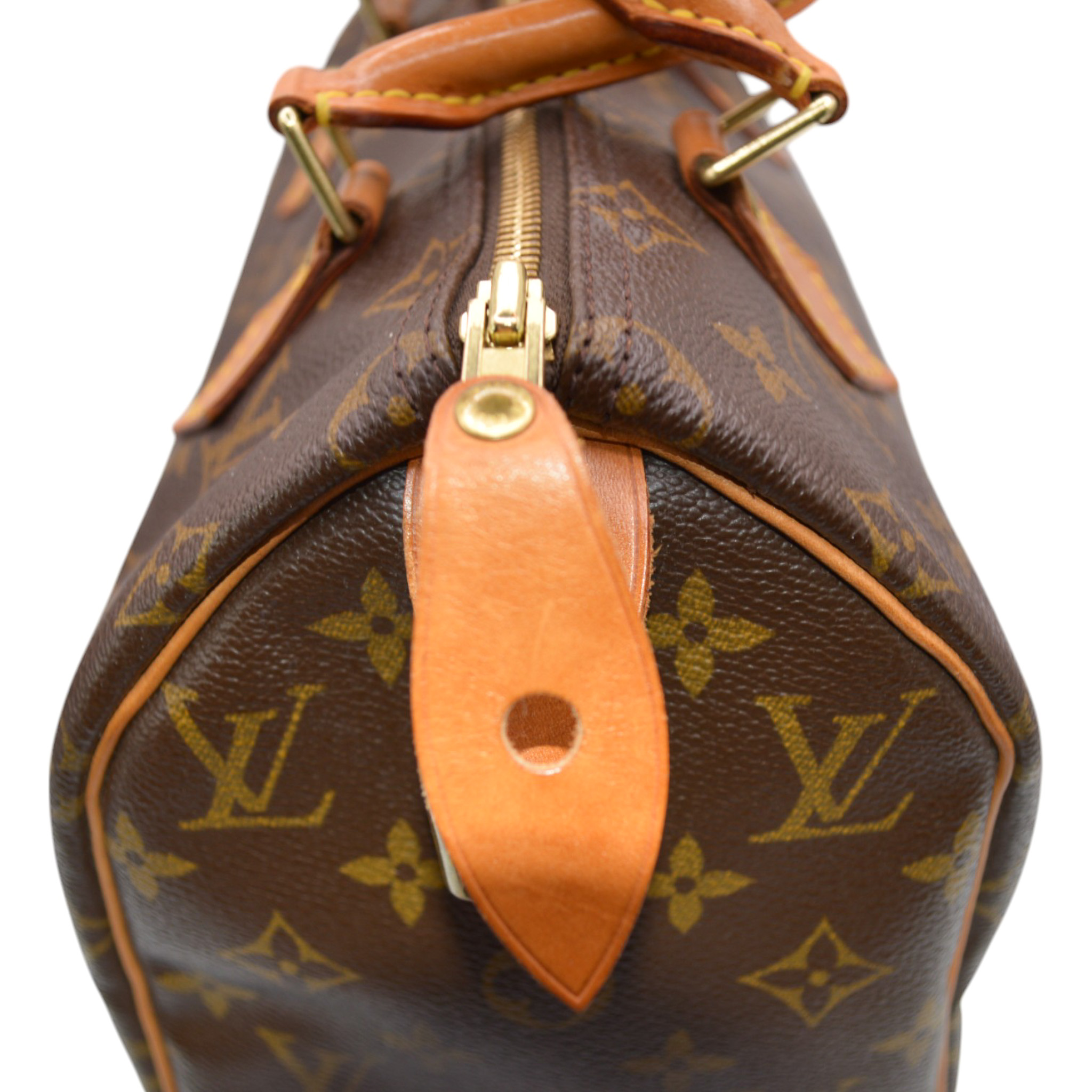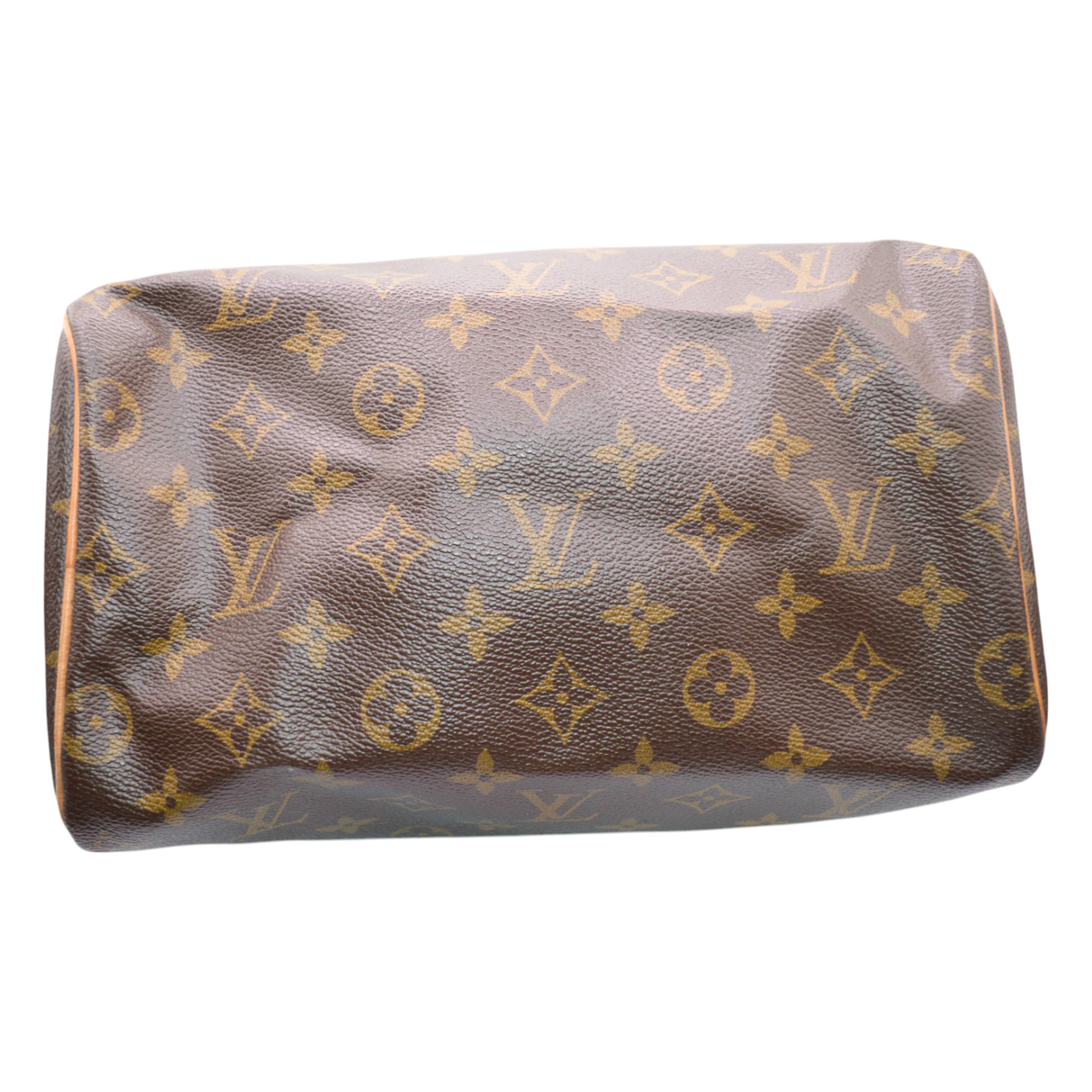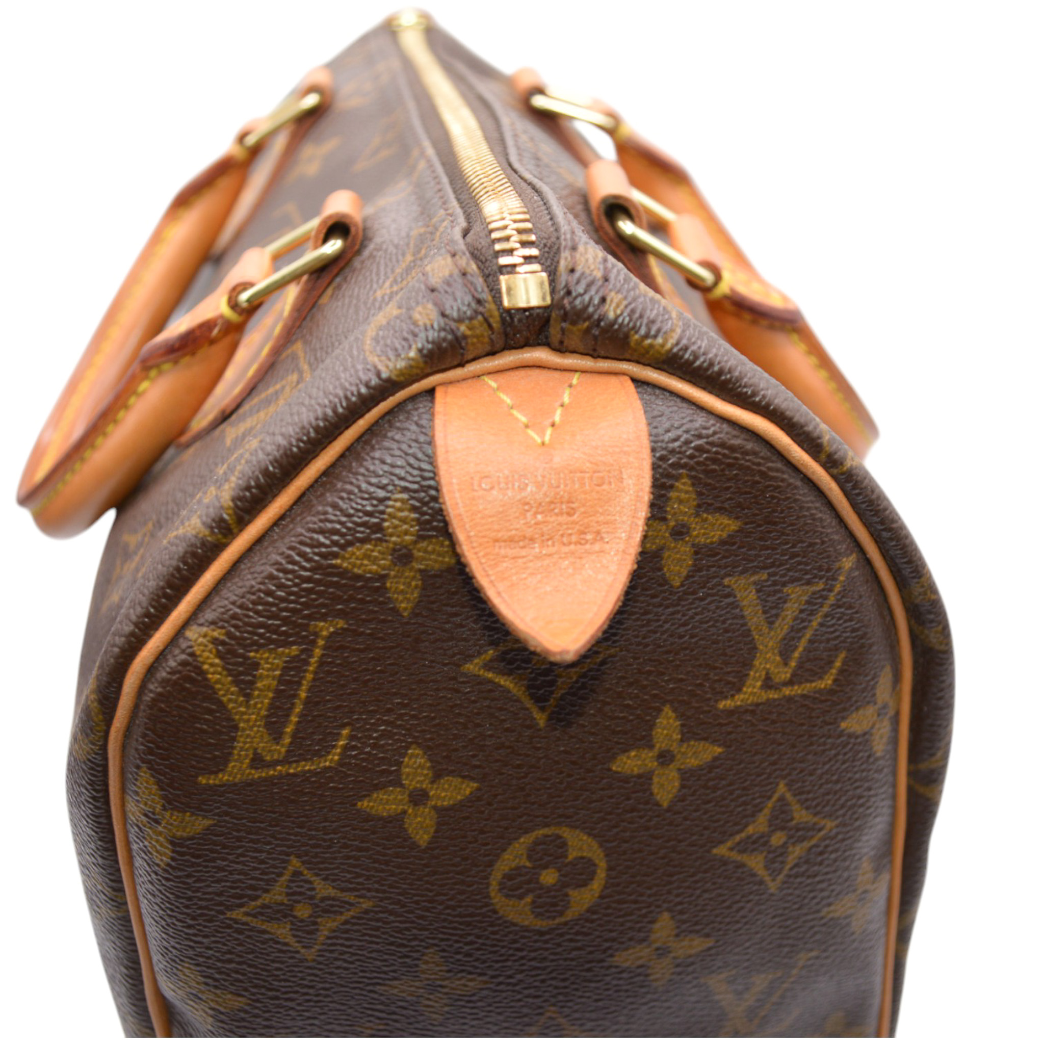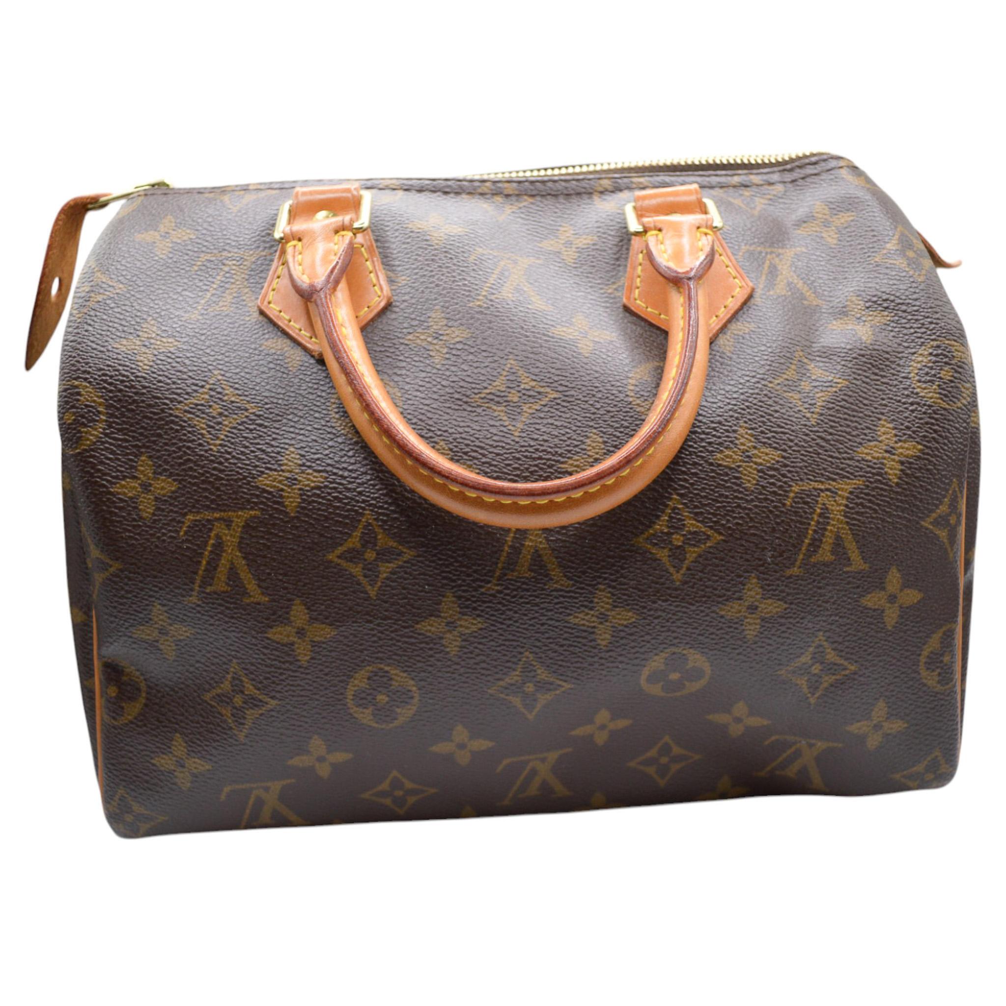 Signature monogram canvas, zipper closure, and an inside slip pocket. Comes with shoulder strap and lock attached to end. Bag is in very good, used condition- please refer to photos for signs of wear. Date code SD0093 (Made in USA Sept 2003). 10″x 8″x 6″. Box included.