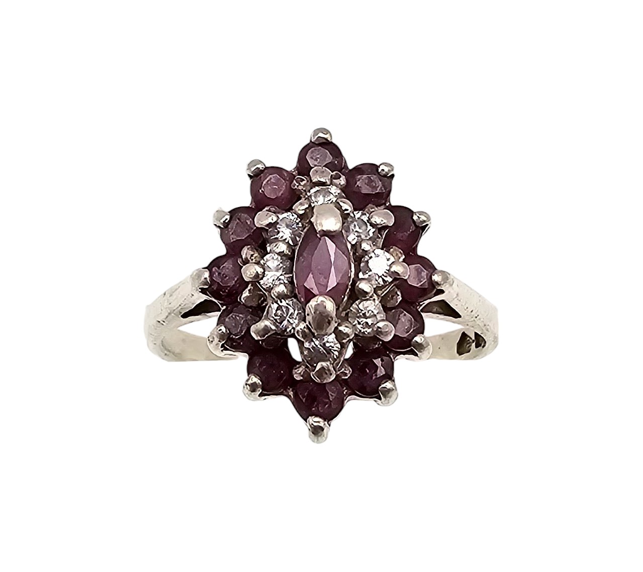 Ruby Sterling Silver Cocktail Ring Size 7.75 3.2 G